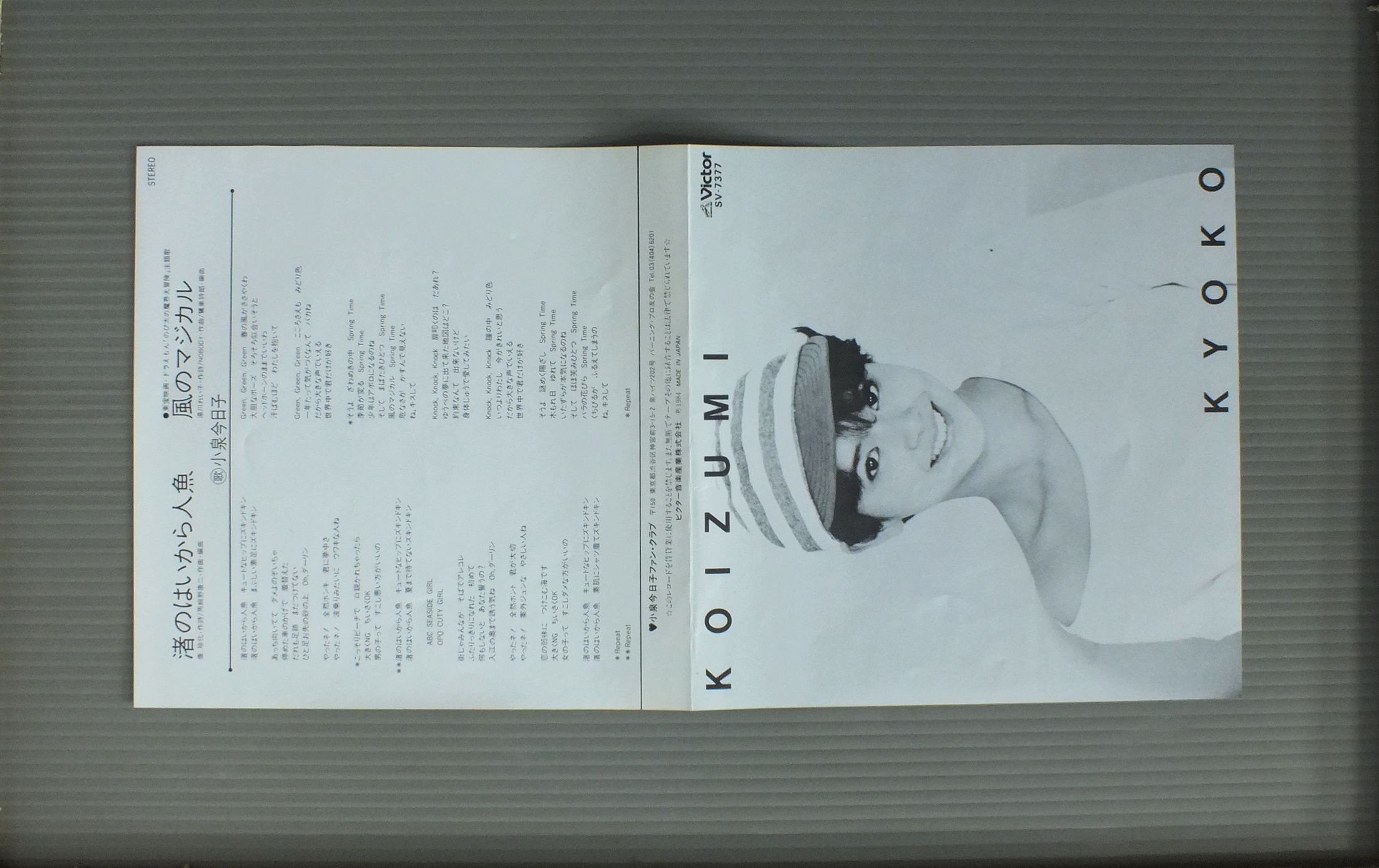 KYOKO KOIZUMI小泉今日子/NAGISA NO HAIKARA MARMAID渚のはいから人魚 SV7377 製造国:日本盤 / Media:7inch外観:EX盤の状態:EX- 価格(税込):¥330 送料 7inch:定形外郵便 360円~LP:定形外郵便 660円~送料は、注文の最終画面で確認頂けます。 > > KYOKO KOIZUMI/NAGISA NO HAIKARA MARMAID 外観 (EX)特記事項:上ヘリにスレ。外観EXの共通説明:ダメージが限定的。中古品としては保存状態がよい方。シミ、ヨゴレ、スレ 少し~軽度。 盤の状態 (EX-)特記事項:長めのスレキズがありますが、音には影響ない感じの薄いスレです。盤EX-の共通説明:盤面のスリキズが多少有り。音に出そうなものは殆ど無いように見える~さほど気にならないぐらいの軽いプチ数カ所程度。 Tweet それぞれの画像をクリックすると、大きい写真が見られます こちらの商品もお勧めです 770円 YOSHIE KASHIWABARA柏原よしえ / SUMMER SENSATIONサマー・センセイション 770円 TSUKASA ITOH伊藤つかさ / TSUKASA IN WONDERLANDふしぎの国のつかさ 1,210円 TSUKASA ITOH伊藤つかさ / SAYONARA KONNICHIWAさよなら、こんにちは 770円 SEIKO MATSUDA松田聖子 / SEIKO TOWN 660円 HIROKO TANIYAMA谷山浩子 / MOUHITORI NO ALICEもうひとりのアリス 770円 NAOKO KAWAI河合奈保子 / TWILIGHT DREAM 880円 MOMOE YAMAGUCHI山口百恵 / 16s THEME16才のテーマ 1,210円 SAORI MINAMI南沙織 / HITOKAKERANO JUNJYOひとかけらの純情