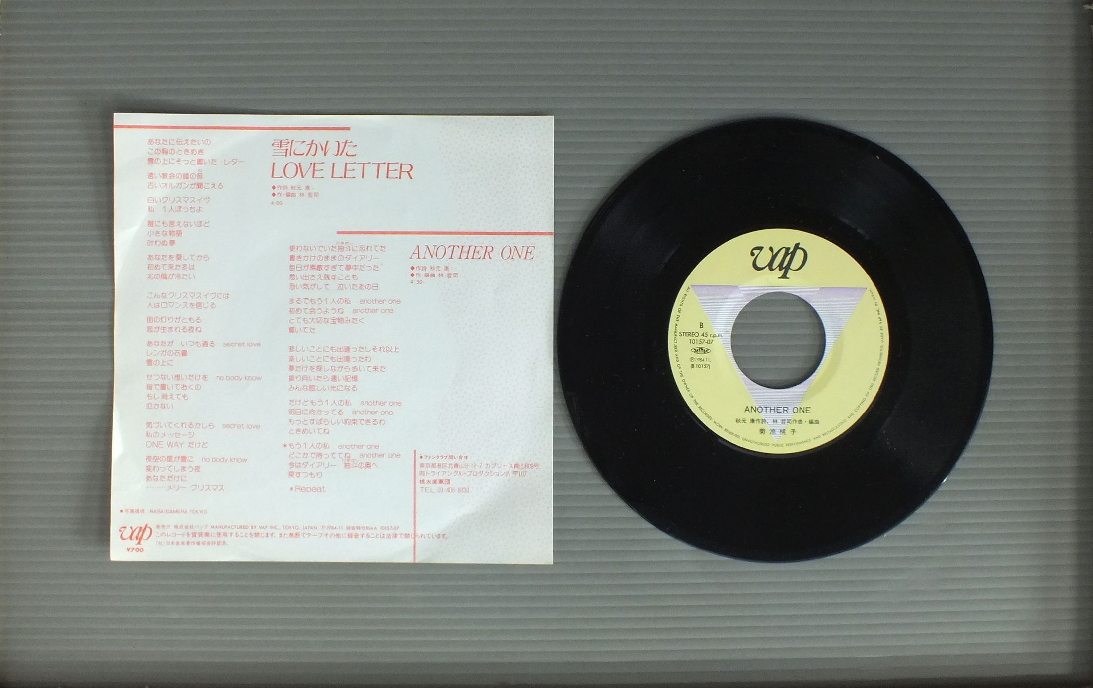 KIKUCHI MOMOKO菊池 桃子/LOVE LETTER WRITTEN ON THE SNOW雪にかいたLOVE LETTER 10157 07 製造国:日本盤 / Media:7inch外観:EX盤の状態:EX 価格(税込):¥440 送料 7inch:定形外郵便 360円~LP:定形外郵便 660円~送料は、注文の最終画面で確認頂けます。 > > KIKUCHI MOMOKO/LOVE LETTER WRITTEN ON THE SNOW 外観 (EX)特記事項:特記なし。外観EXの共通説明:ダメージが限定的。中古品としては保存状態がよい方。シミ、ヨゴレ、スレ 少し~軽度。 盤の状態 (EX)特記事項:薄いスリキズ・スレ軽くある感じ。軽微なものの様子です。盤EXの共通説明:盤面のスリキズが薄いものが少し~軽度 音に出そうなものは無いように見える(軽微なソフトティック音は除く)。 Tweet それぞれの画像をクリックすると、大きい写真が見られます こちらの商品もお勧めです 990円 YOSHIMI IWASAKI岩崎良美 / SAISONS (2nd ALBUM)セゾン(2nd ALBUM) 1,210円 PINK LADYピンク・レディー / AMERICA ! AMERICA ! AMERICA !アメリカ!アメリカ!アメリカ! 1,210円 NAOKO KAWAI河合奈保子 / DIARYダイアリー 660円 YOU HAYAMI早見優 / IMAGEイマージュ 990円 MINAYO WATANABE渡辺美奈代 / ALFALFAアルファルファ 880円 MOMOE YAMAGUCHI山口百恵 / 16s THEME16才のテーマ 1,210円 SONOKO KAWAI河合その子 / SIESTAシエスタ 770円 YOSHIE KASHIWABARA柏原よしえ / SUMMER SENSATIONサマー・センセイション