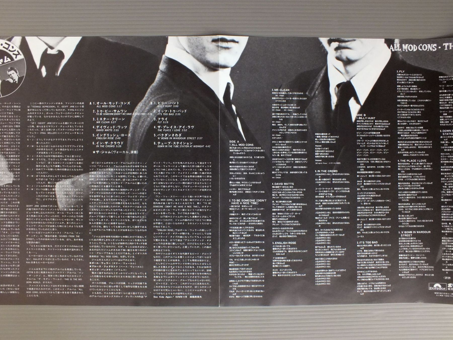 JAMジャム/ALL MOD CONSオール・モッド・コンズ 18MM0543 製造国:日本盤 / Media:LP外観:EX+盤の状態:EX+ 価格(税込):¥1,980(売約済) 送料 7inch:定形外郵便 360円~LP:定形外郵便 660円~送料は、注文の最終画面で確認頂けます。 レコード検索 > OLD J-POP > JAM/ALL MOD CONS 外観 (EX+)特記事項:特記なし。外観EX+の共通説明:中古としては美品、一見してきれいでダメージが軽微。シミ、ヨゴレ、スレ有っても僅か~少し。 盤の状態 (EX+)特記事項:薄いスリキズ・スレ少し。一見してきれいな状態です。盤EX+の共通説明:盤面の極薄いスリキズ、スレ少し程度 音に出そうなものは無いように見える(極軽微なソフトティック音は除く)。 Tweet それぞれの画像をクリックすると、大きい写真が見られます こちらの商品もお勧めです
