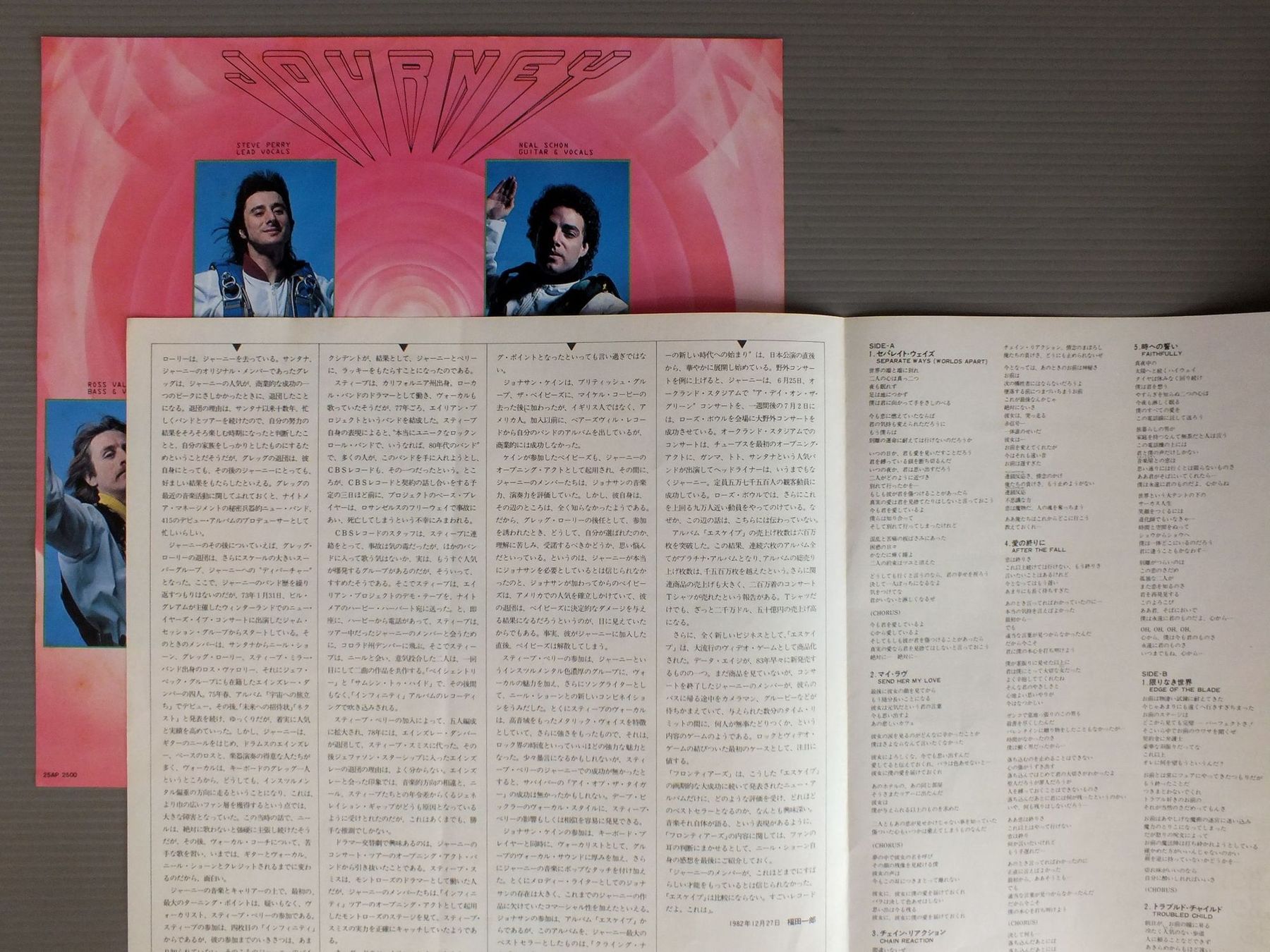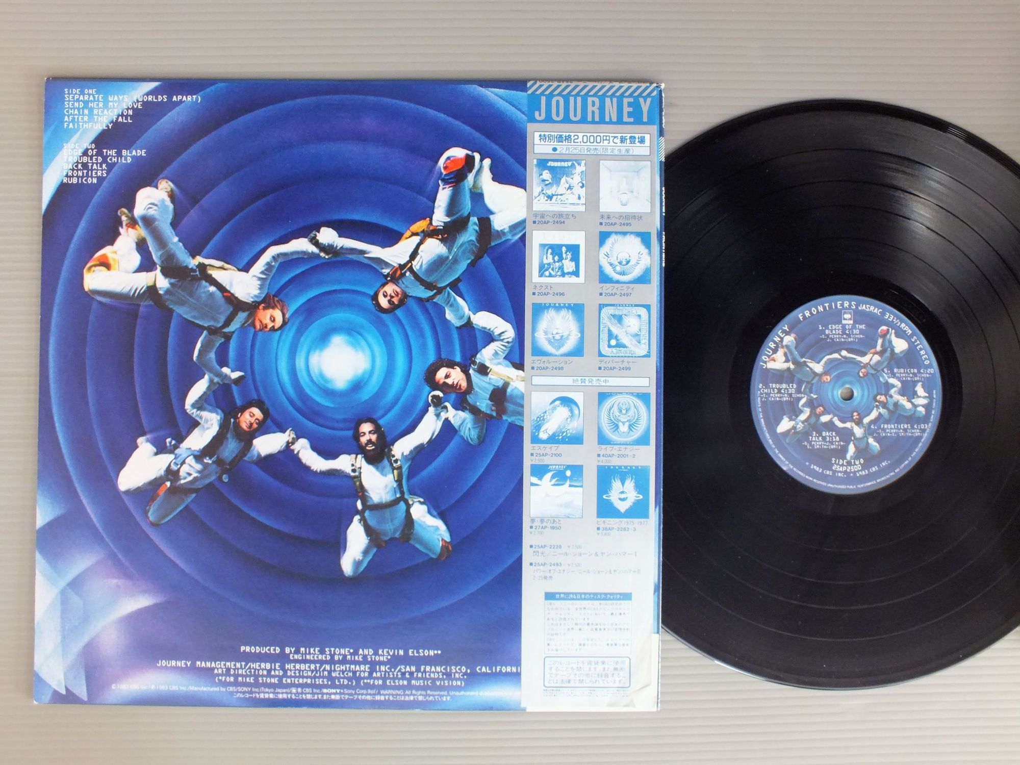 JOURNEYジャーニー/FRONTIERSフロンティアーズ 25AP2500 製造国:日本盤 / Media:LP外観:EX盤の状態:EX帯:EX 価格(税込):¥990(売約済) 送料 7inch:定形外郵便 360円~LP:定形外郵便 660円~送料は、注文の最終画面で確認頂けます。 > > JOURNEY/FRONTIERS 外観 (EX)特記事項:特記なし。外観EXの共通説明:ダメージが限定的。中古品としては保存状態がよい方。シミ、ヨゴレ、スレ 少し~軽度。 盤の状態 (EX)特記事項:薄いスリキズ・スレ軽くある感じ。軽微なものの様子です。盤EXの共通説明:盤面のスリキズが薄いものが少し~軽度 音に出そうなものは無いように見える(軽微なソフトティック音は除く)。 帯の状態 (EX):特記なし。 Tweet それぞれの画像をクリックすると、大きい写真が見られます こちらの商品もお勧めです 660円 SUZI QUATROスージー・クアトロ / QUATRO陶酔のアイドル/クアトロ 1,210円 EAGLESイーグルス / LONG RUNザ・ロング・ラン 1,650円 LIGHT HOUSEライトハウス / SUNNY DAYSサニー・デイズ 550円 CHICAGOシカゴ / GREAT CHICAGO栄光のシカゴ 1,320円 TUXEDO JUNCTIONタキシード・ジャンクション / CHATTANOOGA CHOO CHOOチャタヌガ・チュー・チュー 990円 SANTANAサンタナ / AMIGOSアミーゴ !(同胞) 1,320円 ABC / BEAUTY STABビューティ・スタッブ 1,650円 HASSLESハッスルズ / HOUR OF THE WOLF孤狼の時