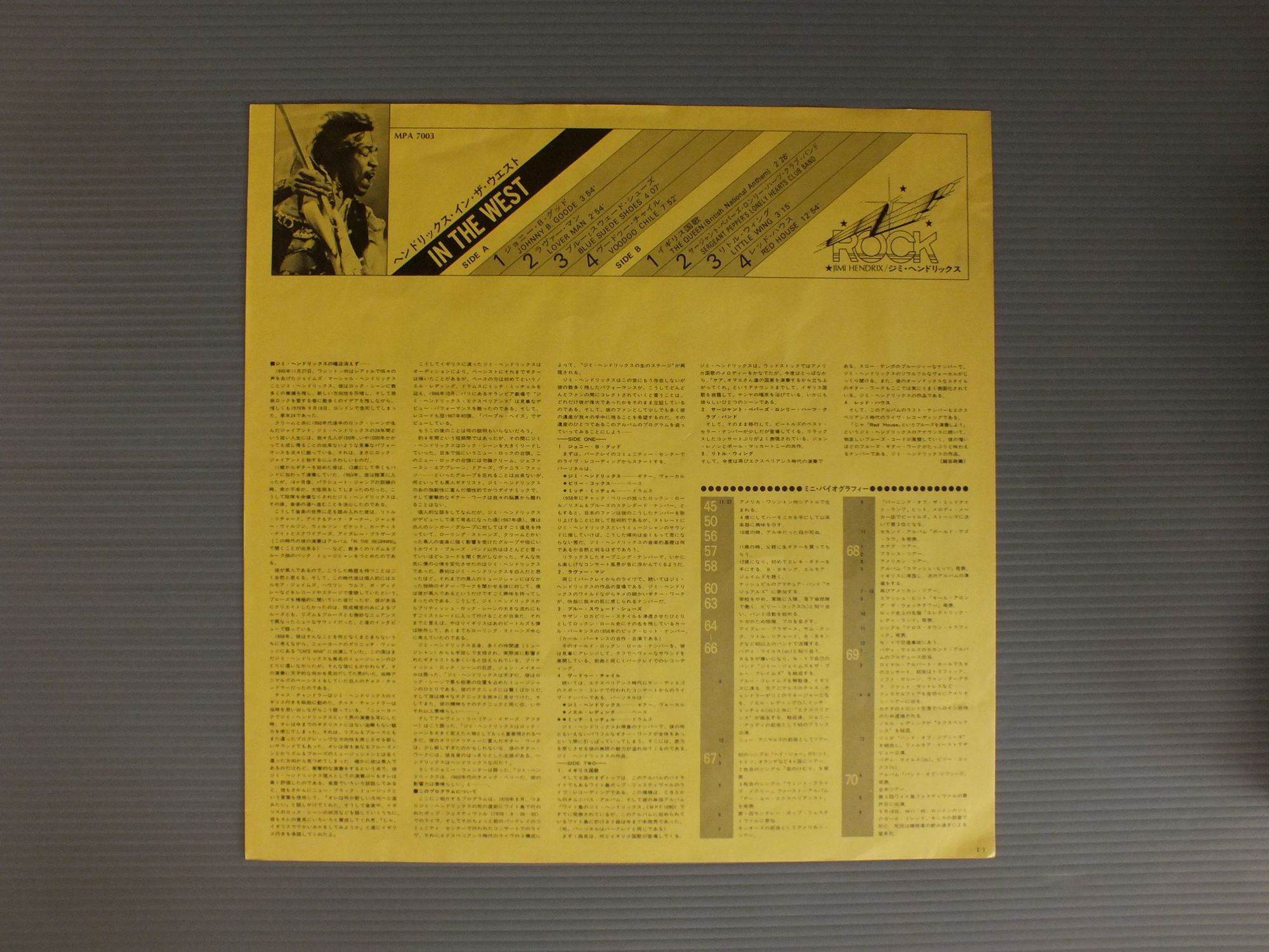JIMI HENDRIXジミ・ヘンドリックス/IN THE WESTヘンドリックス・イン・ザ・ウエスト MPA7003 製造国:日本盤 / Media:LP外観:EX盤の状態:EX 価格(税込):¥1,155(売約済) 送料 7inch:定形外郵便 360円~LP:定形外郵便 660円~送料は、注文の最終画面で確認頂けます。 > > JIMI HENDRIX/IN THE WEST 外観 (EX)特記事項:ヘリスレ外観EXの共通説明:ダメージが限定的。中古品としては保存状態がよい方。シミ、ヨゴレ、スレ 少し~軽度。 盤の状態 (EX)特記事項:薄いスリキズ・スレ軽くある感じ。軽微なものの様子です。盤EXの共通説明:盤面のスリキズが薄いものが少し~軽度 音に出そうなものは無いように見える(軽微なソフトティック音は除く)。 Tweet それぞれの画像をクリックすると、大きい写真が見られます こちらの商品もお勧めです