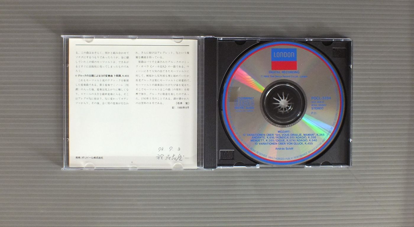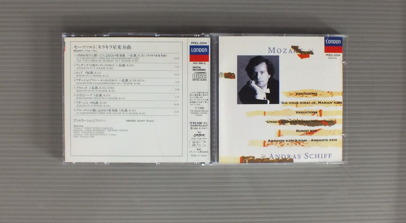 ANDRAS SCHIFFアンドラーシュ・シフ/MOZART-YARIATIONS etcモーツァルト-キラキラ星変奏曲 他 POCL3254 製造国:日本盤 / Media:CD外観:EX-盤の状態:EX 価格(税込):¥880 送料 7inch:定形外郵便 360円~LP:定形外郵便 660円~送料は、注文の最終画面で確認頂けます。 > > ANDRAS SCHIFF/MOZART-YARIATIONS etc 外観 (EX-)特記事項:表側カードに書込み有り。外観EX-の共通説明:ダメージ軽度~多少。 中古品としては普通の状態。シミ、ヨゴレ、スレなど軽く~多少。 盤の状態 (EX)特記事項:あまりスリキズ無くきれいな状態。盤EXの共通説明:盤面のスリキズが薄いものが少し~軽度 音に出そうなものは無いように見える(軽微なソフトティック音は除く)。 Tweet それぞれの画像をクリックすると、大きい写真が見られます こちらの商品もお勧めです 990円 ASHKENAZYアシュケナージ / BEETHOVEN - PIANO SONATA NO.1ベートーヴェン - ピアノソナタ第1番 990円 CZIFFRAシフラ / LISZT RECITALリスト リサイタル 990円 KARL RICHTERカール・リヒター / BACH - TOCCATA AND FUGUEバッハ - トッカータとフーガ 990円 MENUHIN - BATH FESTIVAL CEMBER ORCHESTRAメニューイン - バース音楽祭管弦楽団 / BACH - SUITE NO2&3バッハ - 管弦楽組曲第2番第3番 1,760円 KAZUNE SHIMIZU清水和音 / CHOPIN - 4 BALLADESショパン - バラード 990円 BARENBOIM - ENGLISH CHAMBER ORCHESTRAバレンボイム - イギリス室内管弦楽団 / MOZART - PIANO CONCERTOS NOS.20&26モーツァルト - ピアノ協奏曲第20番26番 1,100円 ASHKENAZYアシュケナージ / CHOPIN - PIANO WORKSショパン - 夜想曲 990円 GARRICK OHLSSONギャリック・オールソン / CHOPIN - POLONAISESショパン - ポロネーズ