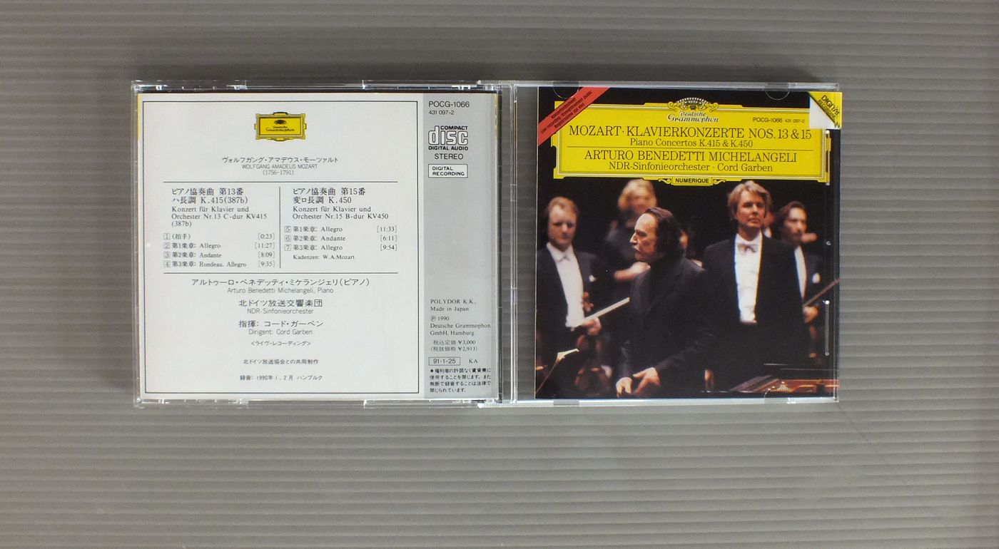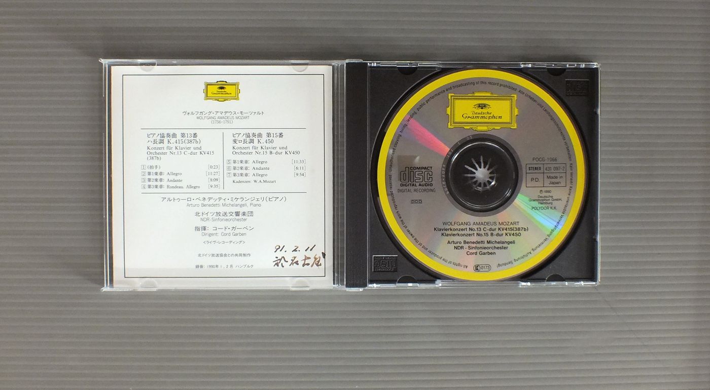 ARTURO BENEDETTI MICHEL ANGELI-CORD GARBENアルトゥーロ・ベネッティ・ミケランジェリ-コード・ガーベン/MOZART-KLAVIERKONZERTE NR 13 & 15モーツァルト-ピアノ協奏曲第13&15番 POCG1066 製造国:日本盤 / Media:CD外観:EX-盤の状態:EX 価格(税込):¥880 送料 7inch:定形外郵便 360円~LP:定形外郵便 660円~送料は、注文の最終画面で確認頂けます。 > > ARTURO BENEDETTI MICHEL ANGELI-CORD GARBEN/MOZART-KLAVIERKONZERTE NR 13 & 15 外観 (EX-)特記事項:表側カードに書込み有り。外観EX-の共通説明:ダメージ軽度~多少。 中古品としては普通の状態。シミ、ヨゴレ、スレなど軽く~多少。 盤の状態 (EX)特記事項:あまりスリキズ無くきれいな状態。盤EXの共通説明:盤面のスリキズが薄いものが少し~軽度 音に出そうなものは無いように見える(軽微なソフトティック音は除く)。 Tweet それぞれの画像をクリックすると、大きい写真が見られます こちらの商品もお勧めです 1,760円 RICHTER - KARAJAN - WIENNA PHILHARMONICリヒター - カラヤン - ウィーン・フィル / TCHAIKOVSKY - CONCERT NO1 FOR PIANO AND ORCHESTRAチャイコフスキー - ピアノとオーケストラのための協奏曲第1番 990円 DURUFLE - PRETRE - LA SOCIETE DES CONCERTS DU CONSERVATOIREデュリュフレ - プレートル - パリ音楽院管弦楽団 / SAINT SAENS - SYMPHONY NO.3サン・サーンス - 交響曲第3番 1,760円 KARAJAN - BERLINER PHILHARMONIKERカラヤン - ベルリン・フィル / HAYDN - THE CREATION 2LP BOXハイドン - 天地創造 2枚組 990円 STOKOVSKI - RCA SYMPHONY ORCHESTRAストコフスキー - RCA交響楽団 / LISZT - HUNGARIAN RHAPSODYリスト - ハンガリー狂詩曲 1,760円 BOHM - WIENER PHILHARMONIKERボーム - ウィーン・フィル / BEETHOVEN - SYMPHONY NO9 2LP BOXベートーヴェン交響曲第9番 2枚組 2,200円 SOLTI + CHICAGO SYMPHONY / BEETHOVEN NINE SYMPHONIES 9LP BOX 990円 KARAJAN - BERLINER PHILHARMONIKERカラヤン - ベルリン・フィル / MOZART - EINE KLEINE NACHTMUSIKモーツアルト - アイネ・クライネ・ナハトムジーク 1,540円 LAWRENCE FOSTER - HOUSTON SYMPHONY ORCHESTRAローレンス・フォスター - ヒューストン交響楽団 / PAUL CHIHARA - SYMPHONY IN CELEBRATIONポール・チハラ - SYMPHONY IN CELEBRATION