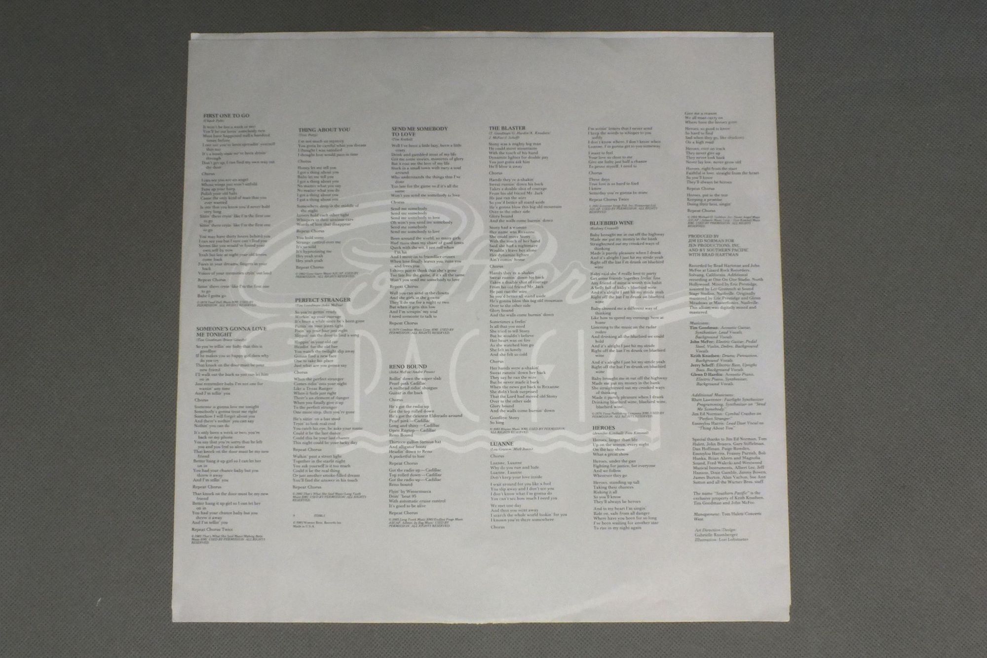 SOUTHERN PACIFIC/SOUTHERN PACIFIC 25206 1 製造国:米国盤 / Media:LP外観:EX+盤の状態:EX 価格(税込):¥770 送料 7inch:定形外郵便 360円~LP:定形外郵便 660円~送料は、注文の最終画面で確認頂けます。 > > SOUTHERN PACIFIC/SOUTHERN PACIFIC 外観 (EX+)特記事項:特記なし。外観EX+の共通説明:中古としては美品、一見してきれいでダメージが軽微。シミ、ヨゴレ、スレ有っても僅か~少し。 盤の状態 (EX)特記事項:薄いスリキズ・スレ軽くある感じ。軽微なものの様子です。盤EXの共通説明:盤面のスリキズが薄いものが少し~軽度 音に出そうなものは無いように見える(軽微なソフトティック音は除く)。 Tweet それぞれの画像をクリックすると、大きい写真が見られます こちらの商品もお勧めです 770円 KAREN STALEY / WILDEST DREAMS 880円 STONEWALL JACKSON / LONESOME IN ME 770円 LACY J DALTON / HIGHWAY DINER 1,386円 HANK WILLIAMS JR / FIVE-O 770円 MARTY ROBBINS / SOME MEMORIES JUST WON`T DIE 770円 MERLE HAGGARD / SALUTES THE GREATS 1,155円 HANK THOMPSON / 20 GOLDEN PIECES OF HANK THOMPSON 1,155円 HANK SNOW / SONGS OF TRAGEDY