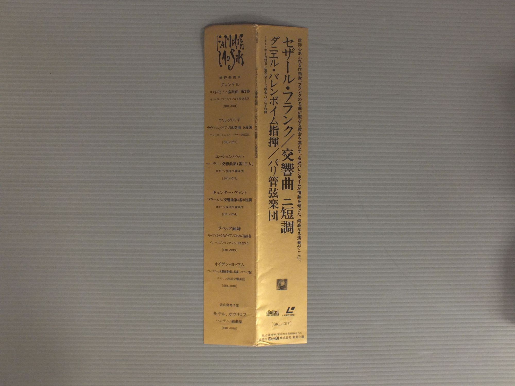 BARENBOIM-ORCHESTRE DE PARISバレンボイム-パリ管弦楽団/CESAR FRANCK-SYMPHONY IN D-MINORセザール・フランク-交響曲 SKL1017 製造国:日本盤 / Media:LD外観:EX-盤の状態:EX帯:EX- 価格(税込):¥550 送料 7inch:定形外郵便 360円~LP:定形外郵便 660円~送料は、注文の最終画面で確認頂けます。 > > BARENBOIM-ORCHESTRE DE PARIS/CESAR FRANCK-SYMPHONY IN D-MINOR 外観 (EX-)特記事項:裏ジャケにシミ有り。外観EX-の共通説明:ダメージ軽度~多少。 中古品としては普通の状態。シミ、ヨゴレ、スレなど軽く~多少。 盤の状態 (EX)特記事項:薄いスリキズ・スレ軽くある感じ。軽微なものの様子です。盤EXの共通説明:盤面のスリキズが薄いものが少し~軽度 音に出そうなものは無いように見える(軽微なソフトティック音は除く)。 帯の状態 (EX-):ヨレ有り。 Tweet それぞれの画像をクリックすると、大きい写真が見られます こちらの商品もお勧めです 1,760円 KARAJAN - BERLINER PHILHARMONIKERカラヤン - ベルリン・フィル / HAYDN - THE CREATION 2LP BOXハイドン - 天地創造 2枚組 1,540円 BLASERVERINGUNG DER WIENER PHILHARMONIKERウィーンフィル吹奏楽団 / MOZART - SERENADENモーツアルト・セレナーデ集 1,540円 ENTREMONT - ORMANDY - PHILADELPHIA ORCHESTRAアントルモン - オーマンディ - フィラデルフィア交響楽団 / LISZT - CONCERTO NO1リスト - ピアノ協奏曲第1番 1,540円 BARNSTEIN - ISLAEL PHILHARMONIC ORCHESTRAバーンスタイン - イスラエル・フィル / TSCHAIKOWSKY - ROMEO UND JULIAチャイコフスキー - ロメオとジュリエット 1,760円 BOHM - WIENER PHILHARMONIKERボーム - ウィーン・フィル / BEETHOVEN - SYMPHONY NO9 2LP BOXベートーヴェン交響曲第9番 2枚組 990円 STERN - ORMANDY - THE PHILADERPHIA ORCH.スターン - オーマンディ - フィラデルフィア管弦楽団 / BRAHMS - VIOLIN CONCERTOブラームス - ヴァイオリン協奏曲 1,540円 1CLAUDIO SCIMONE - I SOLISTI VENETIクラウディオ シモーネ - イ・ソリスティ・ヴェネティ / PROMO ONLY特別試聴盤 (見本盤) 2,420円 HIROYUKI IWAKI - THE NHK SYMPHONY ORCHESTRA岩城宏之 - NHK交響楽団 / TOSHIRO MAYUZUMI - BUGAKU黛 敏郎 - バレエ音楽`舞楽`