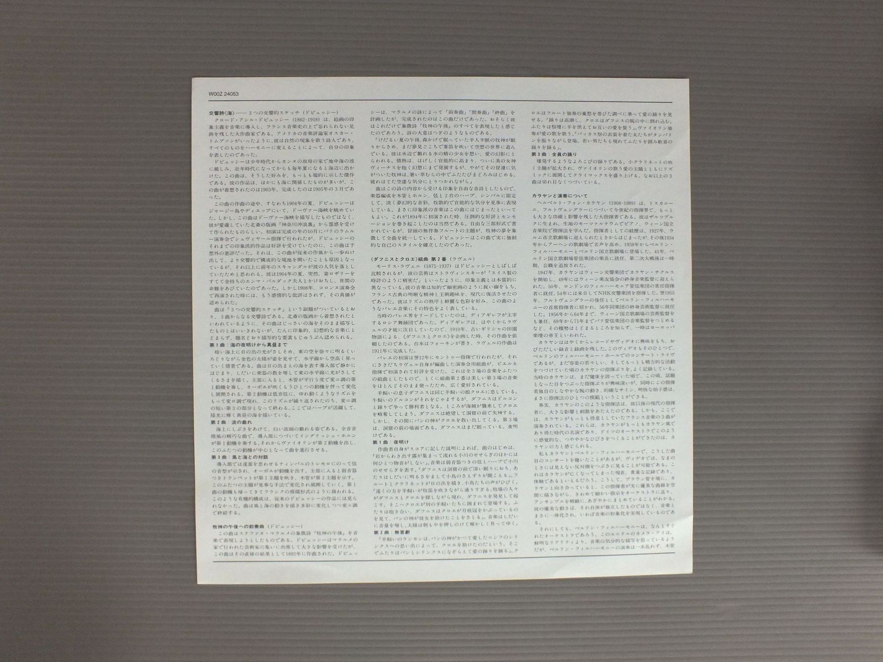 KARAJAN-BERLINER PHIL.カラヤン-ベルリン・フィルハーモニー管弦楽団/DEBUSSY-LA MERフランス管弦楽作品集 ドビュッシー-交響詩 海-牧神の午後への前奏曲-ラヴェル-ダフニスとクロエ 組曲第2番 W00Z24053 製造国:日本盤 / Media:LD外観:EX+盤の状態:EX帯:EX 価格(税込):¥770 送料 7inch:定形外郵便 360円~LP:定形外郵便 660円~送料は、注文の最終画面で確認頂けます。 > > KARAJAN-BERLINER PHIL./DEBUSSY-LA MER 外観 (EX+)特記事項:特記なし。外観EX+の共通説明:中古としては美品、一見してきれいでダメージが軽微。シミ、ヨゴレ、スレ有っても僅か~少し。 盤の状態 (EX)特記事項:薄いスリキズ・スレ軽くある感じ。軽微なものの様子です。盤EXの共通説明:盤面のスリキズが薄いものが少し~軽度 音に出そうなものは無いように見える(軽微なソフトティック音は除く)。 帯の状態 (EX):特記なし。 Tweet それぞれの画像をクリックすると、大きい写真が見られます こちらの商品もお勧めです 990円 KARAJAN - BERLINER PHILHARMONIKERカラヤン - ベルリン・フィル / MOZART - EINE KLEINE NACHTMUSIKモーツアルト - アイネ・クライネ・ナハトムジーク 1,540円 BEECHAM - ROYAL PHILHARMONIC ORCHESTAビーチャム - ロイヤル・フィルハーモニー管弦楽団 / MOZART - SYMPHONY NO41 JUPITERモーツアルト交響曲第41番ジュピター 1,760円 FLAMIG - DRESDNER PHILHARMONIEフレーミッヒ - ドレスデン・フィルハーモニー / BACH - MESSEN バッハ - ミサ曲 2,420円 HIROYUKI IWAKI - THE NHK SYMPHONY ORCHESTRA岩城宏之 - NHK交響楽団 / TOSHIRO MAYUZUMI - BUGAKU黛 敏郎 - バレエ音楽`舞楽` 990円 BRENDEL - MARRTNER - ACADEMY OF ST.MARTIN IN THE FIELDSブレンデル - マリナー - アカデミー室内管弦楽団 / MOZRT - PIANO CONCERTOS NO19 NO23モーツァルト - ピアノ協奏曲第19番23番 990円 WIENNA PHILHARMONIC WIND GROUPウィーン・フィルハーモニー管弦楽団グループ / MOZART - DIVERTOMENTO モーツァルト - 喜遊曲 1,760円 RICHTER - KARAJAN - WIENNA PHILHARMONICリヒター - カラヤン - ウィーン・フィル / TCHAIKOVSKY - CONCERT NO1 FOR PIANO AND ORCHESTRAチャイコフスキー - ピアノとオーケストラのための協奏曲第1番 990円 KARAJAN - VIENNA PHILHARMONIC ORCHESTRAカラヤン - ウィーン・フィルハーモニー管弦楽団 / HOLST - THE PLANETSホルスト - 組曲惑星