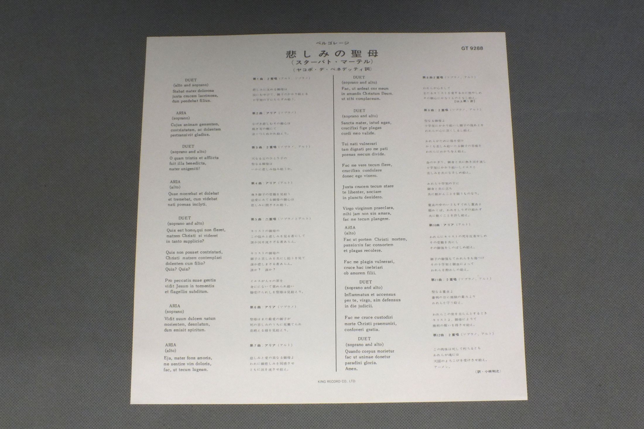 RASKIN - LEHANE - CARACCIOLOカラッチオーロ - ナポリ・ロッシーニ管弦楽団 - ラスキン - レハーン/PERGOLESI -STABAT MATERペルゴレージ -スターバト・マーテル GT9288 製造国:日本盤 / Media:LP外観:EX盤の状態:EX+ 価格(税込):¥990 送料 7inch:定形外郵便 360円~LP:定形外郵便 660円~送料は、注文の最終画面で確認頂けます。 > > RASKIN - LEHANE - CARACCIOLO/PERGOLESI -STABAT MATER 外観 (EX)特記事項:ジャケ表面にシミやよごれ有り。外観EXの共通説明:ダメージが限定的。中古品としては保存状態がよい方。シミ、ヨゴレ、スレ 少し~軽度。 盤の状態 (EX+)特記事項:薄いスリキズ・スレ少し。一見してきれいな状態です。盤EX+の共通説明:盤面の極薄いスリキズ、スレ少し程度 音に出そうなものは無いように見える(極軽微なソフトティック音は除く)。 Tweet それぞれの画像をクリックすると、大きい写真が見られます こちらの商品もお勧めです 1,430円 BRUNO TURNER - PRO CANTIONE ANTIQUAブルーノ・ターナー - プロ・カンツィーオーネ・アンティカ / ORLANDO DI LASSO - MUSICA DEI DONUMラッソ - モントウス 音楽は神の贈り物 990円 FRICSAYフリッチャイ / MOZART GROSSE MESSEモーツァルト 大ミサ曲 K427 990円 MUTI - NEW PHIL. ORCH.ムーティ - ニュー・フィルハーモニア管弦楽団 / CHERUBINI - REQUIEMケルビーニ - レクリエム 1,210円 CALLAS - SERAFIN - PHILHARMONIAカラス - セラフィン - フィルハーモニア管弦楽団 / DONIZETTI - LUCIA DI LAMMERMOOR 1958 2LP SETドニゼッティ - ランメルムーアのルチア全曲 1959 2枚組 1,320円 BOHM - BAYREUTHER FESTSPIELE 1966 / WAGNER - TRISAN UND ISOLDE 5LP SET 990円 SCHWARZKOPFシュワルツコップ / BEST OF SCHWARZKOPFシュワルツコップの魅力-珠玉の名歌集 1,320円 FICHER DIESKAUディースカウ / VERDI OPERATIC ARIASヴェルディ・アリア集 1,210円 TOKUSHIMA BOYS & GIRLS CHORUS上田収穂 - 徳島少年少女合唱団 / CHORUS FANTASY OKAME SENKEN etc合唱ファンタジー お亀千軒他