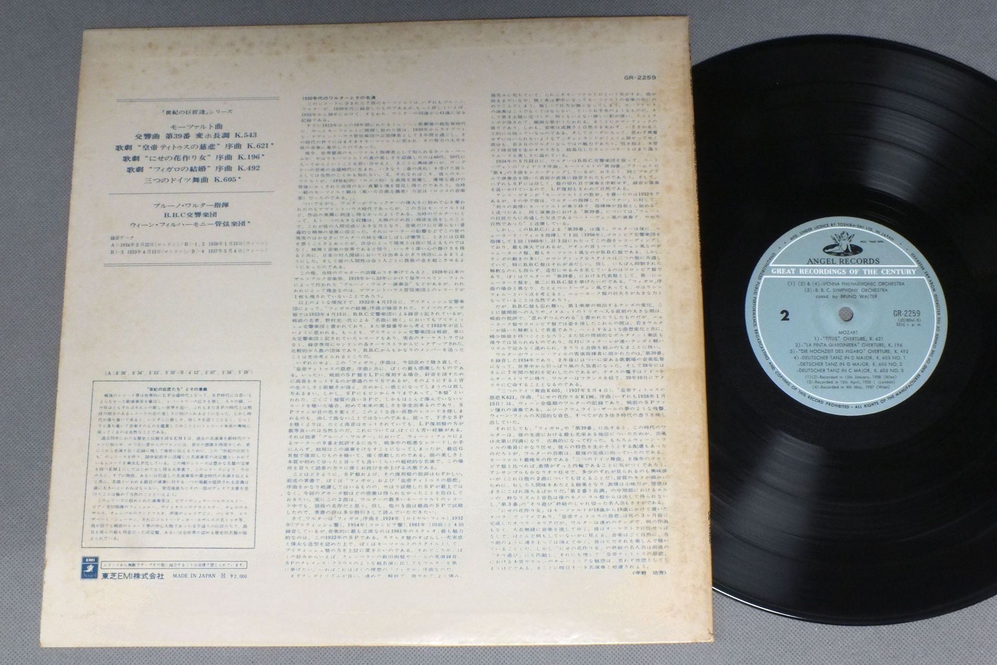 WALTER - BBC SYMPHONY ORCESTRAワルター - BBC交響楽団/MOZART - SYMPHONY NO39モーツァルト - 交響曲 第39番 GR2259 製造国:日本盤 / Media:LP外観:VG+盤の状態:EX 価格(税込):¥990 送料 7inch:定形外郵便 360円~LP:定形外郵便 660円~送料は、注文の最終画面で確認頂けます。 > > WALTER - BBC SYMPHONY ORCESTRA/MOZART - SYMPHONY NO39 外観 (VG+)特記事項:ジャケ表面にシミやよごれ有り。外観VG+の共通説明:ダメージやや有り。シミ、ヨゴレ、スレなど多少~やや多め。 盤の状態 (EX)特記事項:薄いスリキズ・スレ軽くある感じ。軽微なものの様子です。盤EXの共通説明:盤面のスリキズが薄いものが少し~軽度 音に出そうなものは無いように見える(軽微なソフトティック音は除く)。 Tweet それぞれの画像をクリックすると、大きい写真が見られます こちらの商品もお勧めです 1,870円 KARAJAN - BERLIN PHILHARMONIC ORCHESTRAカラヤン - ベルリンフィルハーモニー管弦楽団 / BIZET - CARMENビゼー - カルメン・アルルの女 1,430円 ORMANDY - PHILADELPHIA ORCH.オーマンディ - フィラデルフィア管弦楽団 / TCHAIKOVSKY - HIGHLIGHTS FROM THE THREE GRANDEST BALLETSチャイコフスキー3大バレエ音楽集 990円 SZELL - CLEVELAND ORCH.セル - クリーヴランド管弦楽団 / BEETHOVEN - FAORITE OVERTURESベートーヴェン序曲集 990円 RUBINSTEIN - SKAROWACZEWSKY - NEW SYMPHONY ORCHESTRA OF LONDONスクロヴァチェフスキー - ロンドン新交響楽団 / CHOPIN - PIANO CONCERTOショパン - ピアノ協奏曲 990円 SZELLセル / HAYDN SYM.S NOS97 & 98ハイドン 交響曲第97番-第98番 1,320円 DINU LIPATTIリッパティ / CHOPIN - PIANO CONCERTO NO1 & 3ショパン - ピアノ協奏曲第1番 1,320円 ARTUR RUBINSTEIN - WALLENSTEIN - RCA VICTOR SYMPHONY ORCH.ルービンシュタイン・ウォーレンシュタイン・RCAビクター交響楽団 / GRIEG - LISZT - PIANO CONCERTOアルケ・クラシック名選集・グリーグ・リスト・ピアノ協奏曲 990円 WALTER - VIENNA PHILHAMONIC ORCH.ワルター - ウィーン・フィルハーモニー管弦楽団 / MOZART - CONCERTO IN D MIN K466モーツァルト - ピアノ協奏曲第20番