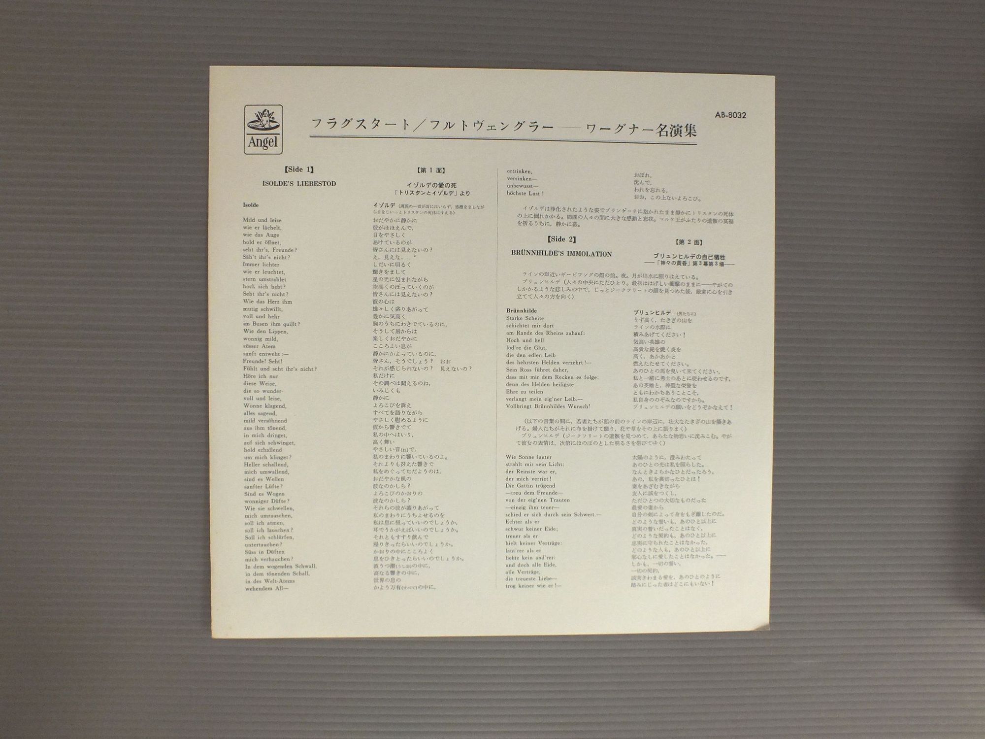 FURTWANGLER - VIENNA PHILHARMONIC ORCH - FLAGSTADフラグスタッド - フルトヴェングラー - フィルハーモニア管弦楽団/WAGNER - TRISTAN UND IISOLDEワーグナー名演集 AB8032 製造国:日本盤 / Media:LP外観:EX-盤の状態:EX 価格(税込):¥880(売約済) 送料 7inch:定形外郵便 360円~LP:定形外郵便 660円~送料は、注文の最終画面で確認頂けます。 > > FURTWANGLER - VIENNA PHILHARMONIC ORCH - FLAGSTAD/WAGNER - TRISTAN UND IISOLDE 外観 (EX-)特記事項:よごれや日焼け感有り。外観EX-の共通説明:ダメージ軽度~多少。 中古品としては普通の状態。シミ、ヨゴレ、スレなど軽く~多少。 盤の状態 (EX)特記事項:薄いスリキズ・スレ軽くある感じ。プチ出そうなところは少しだけで、ほとんどが軽微なものの様子です。盤EXの共通説明:盤面のスリキズが薄いものが少し~軽度 音に出そうなものは無いように見える(軽微なソフトティック音は除く)。 Tweet それぞれの画像をクリックすると、大きい写真が見られます こちらの商品もお勧めです 990円 BACKHAUS - ISSERSTEDT - VIENNA PHILHARMONICバックハウス - イッセルシュテット - ウィーン・フィル / BEETHOVEN - PIANO CONCERTO NO3 & 4ベートーヴェン - ピアノ協奏曲第3番4番 990円 KLEIBER - CONCERT GEBOUW ORCH OF AMSTERDAMクライバー - アムステルダム・コンセルトヘボー管弦楽団 / BEETHOVEN - SYM. NO6 PASTORALベートーヴェン - 交響曲第6番田園 990円 PERAHIA-MARRINER-ACADEMY OF ST.MARTIN-IN-THE-FIELDペライア-マリナー-アカデミー室内管弦楽団 / MENDELSSOHN-PIANO CONC. メンデルスゾーン-ピアノ協奏曲第1番&第2番 990円 REINER - CHICAGO SYMPHONY ORCHESTRAライナー - シカゴ交響楽団 / BARTOK - MUSIC FOR STRINGS PERCUSSION AND CELESTAバルトーク - 弦と打楽器とチェレスタのための協奏曲 770円 WALTERワルター / MOZART/EINE KLEINE NACHTMUSIK etcモーツァルト/アイネ・クライネ・ナハトムジーク 他 990円 TOSCANINIアルトゥロ・トスカニーニ / KODALY-HARY JANOS-SUITEムソルグスキー-ラヴェル編-組曲 展覧会の絵-コダーイ-組曲 ハーリ・ヤーノシュ 1,320円 VERGENI MRAVINSKYエフゲニー・ムラヴィンスキー / TCHAIKOVSKY - PIANO CONCERTO NO1チャイコフスキー - ピアノ協奏曲 第1番 990円 POLLINI - BOHM - VIENNA PHIL.ポリーニ - ベーム - ウィーン・フィル / BEETHOVEN - PIANO CONC. NO4ベートーヴェン - ピアノ協奏曲第4番