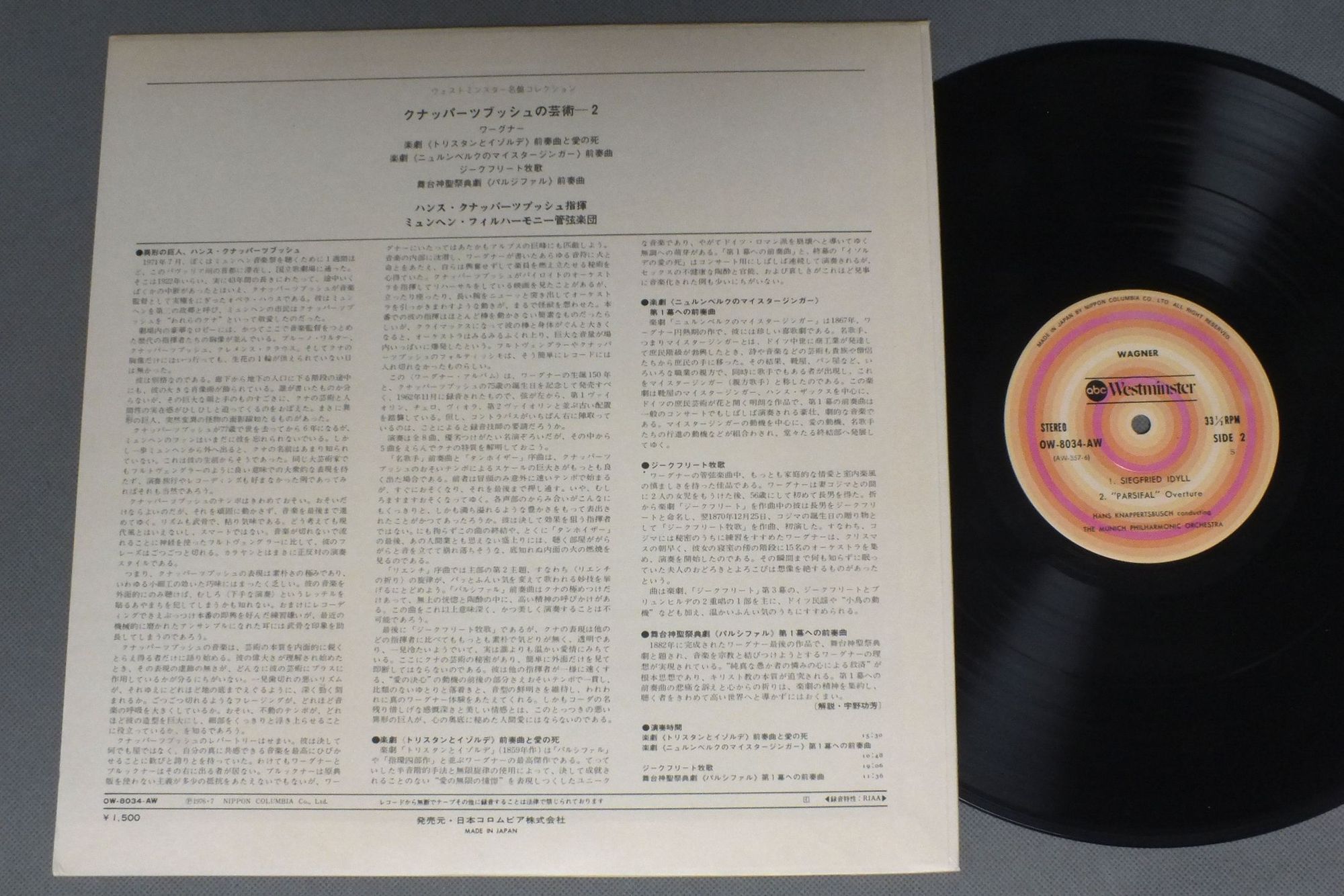 KNAPPERTSBUSCH - MUNICH PHILHARMONIC ORCHクナッパーツブッシュ - ミュンヘン・フィルハーモニー管弦楽団/KNAPPERTSBUSCH CONDUCTS WAGNERワーグナー - トリスタンとイゾルデ他 OW8034AW 製造国:日本盤 / Media:LP外観:EX盤の状態:EX 価格(税込):¥1,760(売約済) 送料 7inch:定形外郵便 360円~LP:定形外郵便 660円~送料は、注文の最終画面で確認頂けます。 > > KNAPPERTSBUSCH - MUNICH PHILHARMONIC ORCH/KNAPPERTSBUSCH CONDUCTS WAGNER 外観 (EX)特記事項:特記なし。外観EXの共通説明:ダメージが限定的。中古品としては保存状態がよい方。シミ、ヨゴレ、スレ 少し~軽度。 盤の状態 (EX)特記事項:薄いスリキズ・スレ軽くある感じ。軽微なものの様子です。盤EXの共通説明:盤面のスリキズが薄いものが少し~軽度 音に出そうなものは無いように見える(軽微なソフトティック音は除く)。 Tweet それぞれの画像をクリックすると、大きい写真が見られます こちらの商品もお勧めです 990円 BOHMベーム / BRUCKNER-SYM. NO4 ROMANTICブルックナー-交響曲第4番 ロマンティック 1,320円 KARL BOHM - VIENNA PHILHARMONICカール・ベーム - ウィーン・フィル / MOZART - SYMPHONIEN NR.40-NR.41 JUPITERモーツァルト - 交響曲 第40番、第41番 1,430円 KARAJAN - BERLIN PHILHARMONIC ORCHESTRAカラヤン - ベルリン・フィル / TCHAIKOVSKY - OVERTURE 1812チャイコフスキー - 大序曲1812年 990円 FJELDSTAD - LONDON SYM. ORCH.フィエルスタード - ロンドン交響楽団 / GRIEG - PEER GYNTグリーグ - ペール・ギュント 1,430円 KLEMPERERクレンペラー / MOZART SYM. NO40 NO41`JUPITER`モーツァルト 交響曲第41番`ジュピター`-交響曲第40番 1,320円 POLLINI - ABBADO - CHICAGO SYMPHONY ORCHESTRAポリーニ - アバド - シカゴ交響楽団 / BARTOK - CONCERTO FOR PIANO AND ORCHESTRAバルトーク - ピアノ協奏曲 770円 WALTERワルター / MOZART/SYM.S NOS36 LINZ & 39モーツァルト/交響曲 36番リンツ 1,320円 SOLTI - LARROCHA - LONDON PHIL.ソルティ - ラローチャ - ロンドン・フィル / MOZART - PIANO CONCERTO NO27&NO25モーツァルト - ピアノ協奏曲 第27番25番