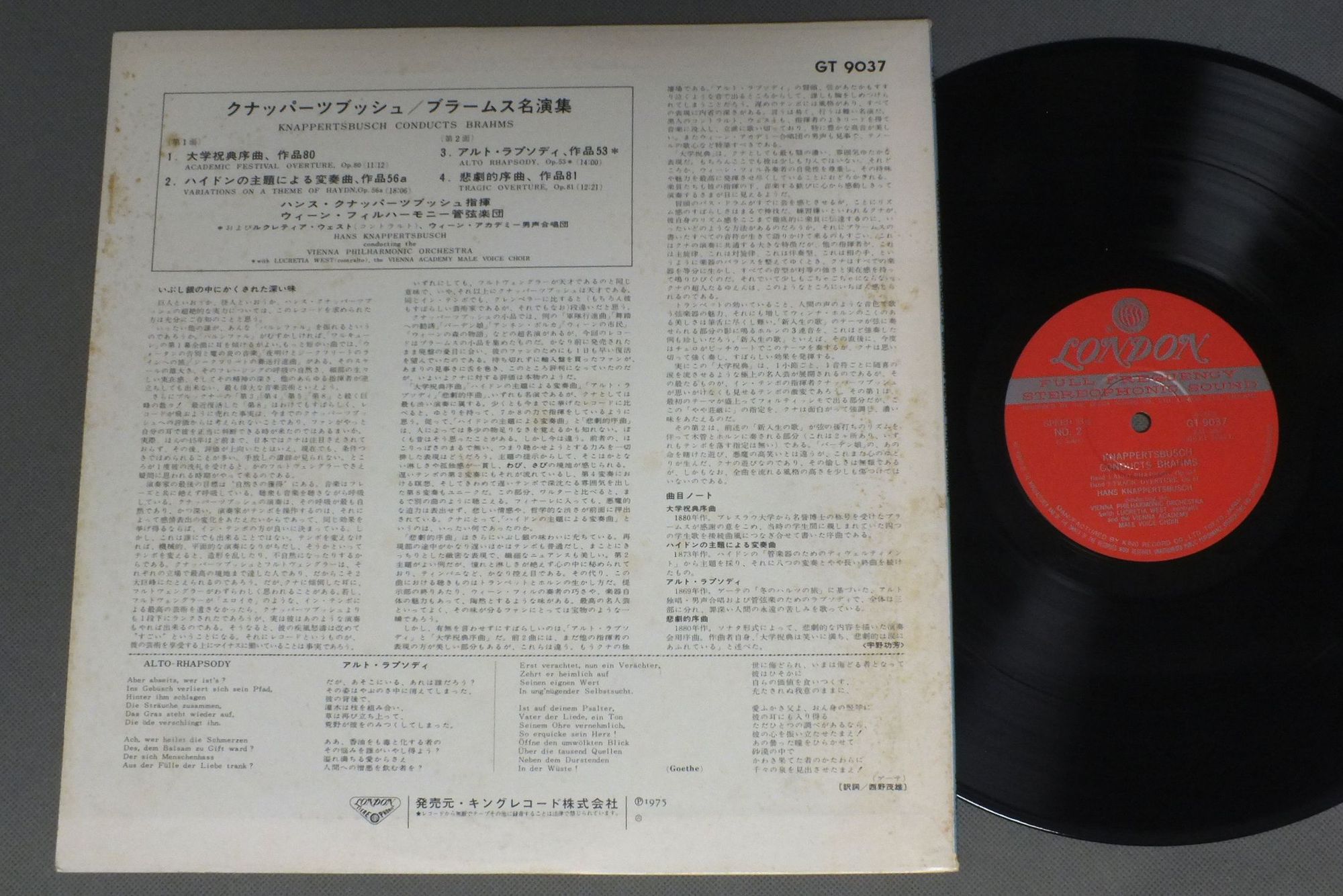 KNAPPERTSBUSCH - VIENNA PHILHARMONIC ORCHクナッパーツブッシュ - ウィーン・フィル/KNAPPERTSBUSCH CONDUCTS BRAHMSブラームス名演集 GT9037 製造国:日本盤 / Media:LP外観:VG+盤の状態:EX 価格(税込):¥990 送料 7inch:定形外郵便 360円~LP:定形外郵便 660円~送料は、注文の最終画面で確認頂けます。 > > KNAPPERTSBUSCH - VIENNA PHILHARMONIC ORCH/KNAPPERTSBUSCH CONDUCTS BRAHMS 外観 (VG+)特記事項:ジャケ表面にシミやよごれ有り。外観VG+の共通説明:ダメージやや有り。シミ、ヨゴレ、スレなど多少~やや多め。 盤の状態 (EX)特記事項:薄いスリキズ・スレ軽くある感じ。軽微なものの様子です。盤EXの共通説明:盤面のスリキズが薄いものが少し~軽度 音に出そうなものは無いように見える(軽微なソフトティック音は除く)。 Tweet それぞれの画像をクリックすると、大きい写真が見られます こちらの商品もお勧めです 990円 BERNSTEINバーンステイン / PICTURES AT AN EXHIBITIONムソルグスキー-展覧会の絵-ラヴェル-ボレロ 990円 MUNCHミュンシュ / DUTILLEUX-METABOLESデュティーユ-メタボール-オネゲル-交響曲 第4番 バジリアの喜び 1,320円 KNAPPERTSBUSH - VIENNA PHILHARMONIC ORCHESTRAクナッパーツブッシュ - ウィーンフィルハーモニー管弦楽団 / KNAPPERTSBUSCH WAGNER ALBUM VOL.1クナッパーツブッシュ・ワーグナー・アルバム 第1集 880円 COBOS/ANDREコボス/アンドレ / HAYDN/TRUMPET CONC.Sハイドン/トランペット協奏曲 1,320円 KARAJAN - BERLIN PHILHARMONIC ORCHESTRAカラヤン - ベルリン・フィルハーモニー管弦楽団 / R.STRAUSS - 2 SYMPHONIC POEMSR.シュトラウス - 2大交響詩集 1,320円 ANSERMET - L`ORCHESTRE DE LA SUISSE ROMANDEアンセルメ - スイス・ロマンド管弦楽団 / MA MER L`OYEマ・メール・ロワ 990円 KEMPFFケンプ / BEETHOVEN - VARIATIONS FOR PIANOベートーヴェン変奏曲集 1,320円 SLATKIN - HOLLYWOOD BOWL SYMPHONY ORCHERSRAスラットキン - ハリウッド・ボール交響楽団 / GERSHWIN - GROFEガーシュイン - グローフェ