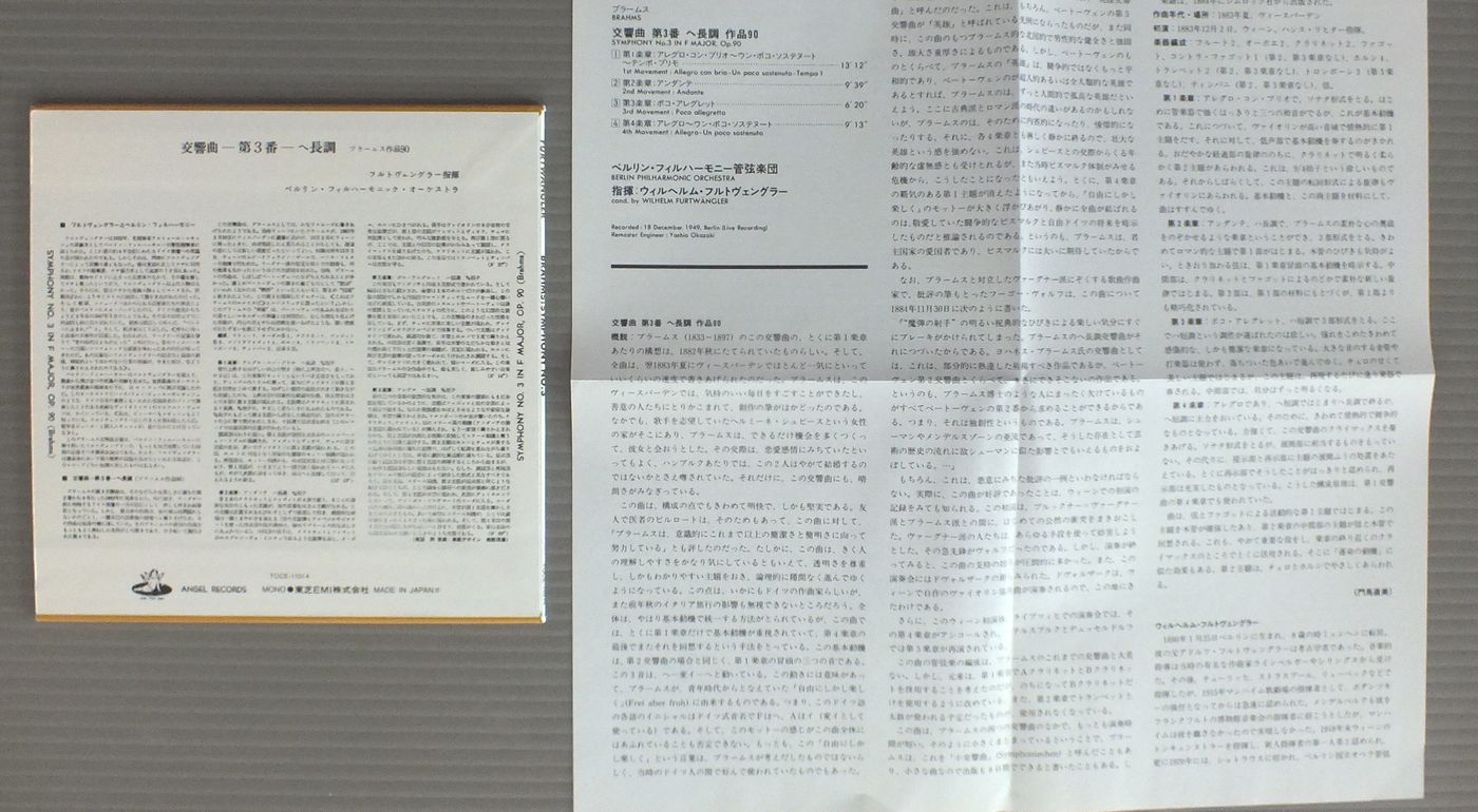 FURTWANGLER - BERLIN PHILHARMONIC ORCHESTRAフルトヴェングラー - ベルリン・フィル/BRAHMS - SYM. NO3ブラームス - 交響曲第3番 ( 紙ジャケ ) TOCE11014 製造国:日本盤 / Media:CD外観:EX+盤の状態:EX+ 価格(税込):¥935 送料 7inch:定形外郵便 360円~LP:定形外郵便 660円~送料は、注文の最終画面で確認頂けます。 > > FURTWANGLER - BERLIN PHILHARMONIC ORCHESTRA/BRAHMS - SYM. NO3 外観 (EX+)特記事項:特記無し。外観EX+の共通説明:中古としては美品、一見してきれいでダメージが軽微。シミ、ヨゴレ、スレ有っても僅か~少し。 盤の状態 (EX+)特記事項:あまりスリキズの無いきれいな状態。盤EX+の共通説明:盤面の極薄いスリキズ、スレ少し程度 音に出そうなものは無いように見える(極軽微なソフトティック音は除く)。 Tweet それぞれの画像をクリックすると、大きい写真が見られます こちらの商品もお勧めです 990円 SCHURICHT - VIENNA PHILHARMONIC ORCHESTRAシューリヒト - ウィーン・フィルハーモニー管弦楽団 / BRUCKNER - SYMPHONY NO9ブルックナー - 交響曲第9番 1,540円 BOHM - BERLINER PHILHARMONIKERベーム - ベルリン・フィル / MOZART - SINFONIE CONCERTANTI KV364&297モーツアルト協奏交響曲KV364&297 1,540円 HAGER - MOZAARTEUM ORCHESTER SALZBURGレオポルト・ハーガー - ザルツブルク・モーツァルテウム管弦楽団 / MOZART - THAMOS KING OF EGYPT 2,420円 HIROYUKI IWAKI - THE NHK SYMPHONY ORCHESTRA岩城宏之 - NHK交響楽団 / TOSHIRO MAYUZUMI - BUGAKU黛 敏郎 - バレエ音楽`舞楽` 1,540円 BLASERVERINGUNG DER WIENER PHILHARMONIKERウィーンフィル吹奏楽団 / MOZART - SERENADENモーツアルト・セレナーデ集 2,200円 SOLTI + CHICAGO SYMPHONY / BEETHOVEN NINE SYMPHONIES 9LP BOX 2,200円 BOULT + LONDON PHILHARMONIC ORCHESTRA / VAUGHAN WILLIAMS - THE NINE SYMPHONIES 9 LP BOX 990円 KLENPERER - PHILHARMONIA ORCH.クレンペラー - フィラデルフィア管弦楽団 / KLEMPERER CONDUCTS MORE WARGNERクレンペラー ワーグナー名曲集