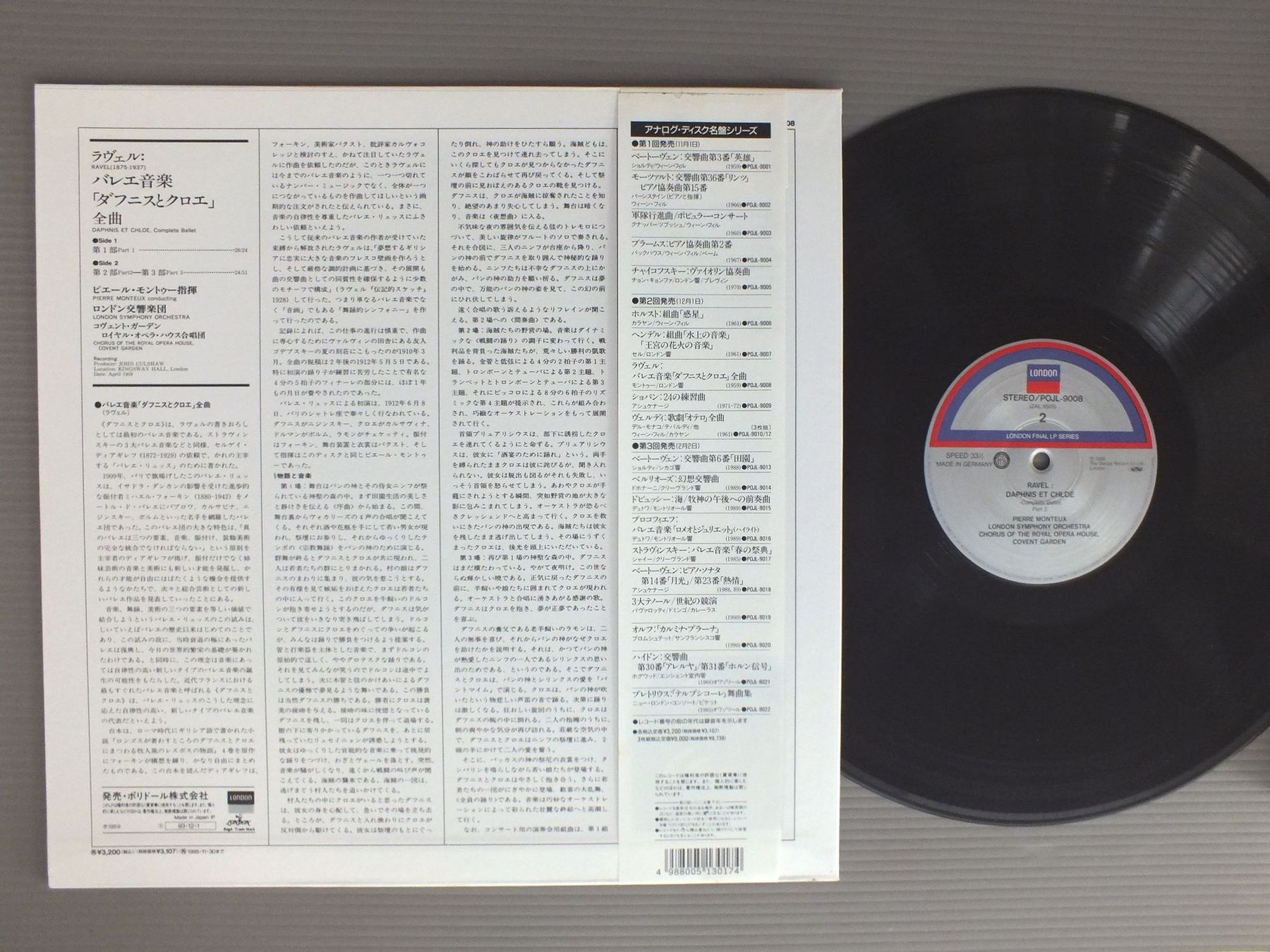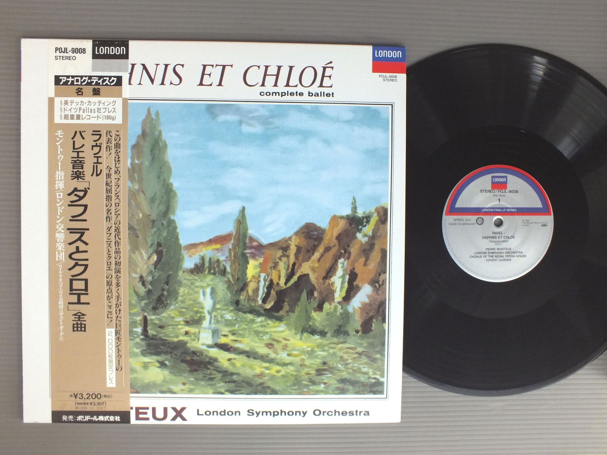 MONTEUX - LONDON SYMPHONY ORCHモントゥー - ロンドン交響楽団/RAVEL - DAPHNIS ET CHLOE REISSUE HEAVY RECORDラヴェル - バレエ音楽 ダフニスとクロエ 全曲 再発超重量盤 POJL9008 製造国:日本盤 / Media:LP外観:EX+盤の状態:EX帯:EX 価格(税込):¥1,925(売約済) 送料 7inch:定形外郵便 360円~LP:定形外郵便 660円~送料は、注文の最終画面で確認頂けます。 > > MONTEUX - LONDON SYMPHONY ORCH/RAVEL - DAPHNIS ET CHLOE REISSUE HEAVY RECORD 外観 (EX+)特記事項:特記なし。外観EX+の共通説明:中古としては美品、一見してきれいでダメージが軽微。シミ、ヨゴレ、スレ有っても僅か~少し。 盤の状態 (EX)特記事項:薄いスリキズ・スレ軽くある感じ。軽微なものの様子です。盤EXの共通説明:盤面のスリキズが薄いものが少し~軽度 音に出そうなものは無いように見える(軽微なソフトティック音は除く)。 帯の状態 (EX):特記なし。 Tweet それぞれの画像をクリックすると、大きい写真が見られます こちらの商品もお勧めです 1,320円 C.KRAUSS - VIENNA PHIL.クラウス - ウィーンフィル / STRAUSS FAMILY CONCERT VOL.2シュトラウス集 VOL.2 1,320円 ASHKENAZYアシュケナージ / MUSSORGSKY - PICTURES AT AN EXHIBITIONムソルグスキー - 展覧会の絵 990円 CONLONコンロン / BERLIOZ SYM. FANTASTIQUEベルリオーズ 幻想交響曲 990円 ORMANDYユージン・オーマンディ / HOLST-PLANETSホルスト-組曲 惑星 990円 KARAJANカラヤン / ROSSINI-OVERTURESウィリアム・テル-ロッシーニ-序曲集 990円 BERNSTEIN -VIENNA PHILHARMONIC ORCHバーン・スタイン - ウィーン・フィル - キング - ディースカウ / MAHLER - LIED VON DER ERDEマーラー - 大地の歌 990円 NEUMANNノイマン / BRAHMS-UNGARISCHE TANZE etcブラームス-ハンガリー舞曲 ほか 990円 FRANZJOSEF MAIERフランツヨーゼフ・マイアー / MOZART SYM.N G-MOLL KV550 B-DUR KV319モーツァルト-交響曲第40番・第33番