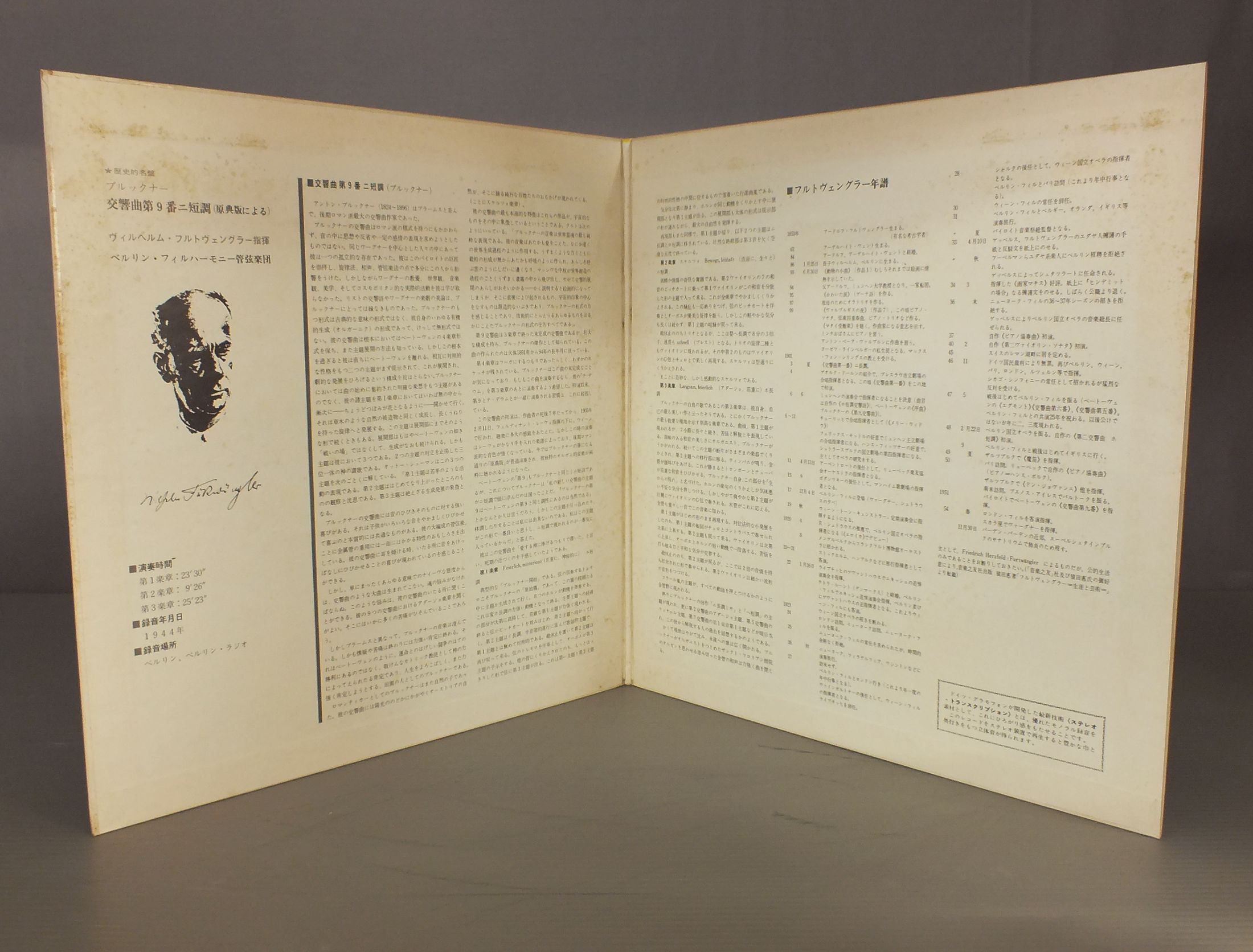 FURTWANGLER - BERLIN PHIL.フルトヴェングラー - ベルリン・フィル/BRUCKNER - SYM NO9(ORIGINAL VERSION)ブルックナー交響曲第9番(原典版) MG1450 製造国:日本盤 / Media:LP外観:VG+盤の状態:EX 価格(税込):¥1,155(売約済) 送料 7inch:定形外郵便 360円~LP:定形外郵便 660円~送料は、注文の最終画面で確認頂けます。 > > FURTWANGLER - BERLIN PHIL./BRUCKNER - SYM NO9(ORIGINAL VERSION) 外観 (VG+)特記事項:見開きも含めてジャケ表面によごれやシミ有り。外観VG+の共通説明:ダメージやや有り。シミ、ヨゴレ、スレなど多少~やや多め。 盤の状態 (EX)特記事項:薄いスリキズ・スレ軽くある感じ。軽微なものの様子です。盤EXの共通説明:盤面のスリキズが薄いものが少し~軽度 音に出そうなものは無いように見える(軽微なソフトティック音は除く)。 Tweet それぞれの画像をクリックすると、大きい写真が見られます こちらの商品もお勧めです 990円 MAAZEL - CLEVELAND ORCH.マゼール - クリーブランド管弦楽団 / BERLIOZ - SYM. FANTASTIQUEベルリオーズ幻想交響曲 770円 MAAZEL - RADIO SYM. ORCHESTER BERLINマーゼル - ベルリン放送交響楽団 / HAYDN - SYM. NO92 & 103ハイドン交響曲第92番103番 1,320円 ASHKENAZYアシュケナージ / MUSSORGSKY - PICTURES AT AN EXHIBITIONムソルグスキー - 展覧会の絵 990円 MEHTAメータ / BEETHOVEN-SYM. NO7-EGMONT OVERTUREベートーヴェン-交響曲 第7番-エグモント 序曲 1,870円 BERNSTEIN - LOS ANGELES PHILHARMONICバーンスタイン - ロサンゼルス・フィル / GERSHWIN - RAPSODY IN BLUEガーシュウィン - ラプソティ・イン・ブルー 1,320円 MAAZEL - L`ORCHESTRE NATIONAL DE FRANCEマゼール - フランス国立管弦楽団 / HOLST - THE PLANETS MASTER SOUND PRESSINGホルスト - 惑星 MASTERSOUND盤 440円 GRAFFMAN-MUNCHグラフマン-ミュンシュ / CHOPIN PIANO CONC. NO1ショパン ピアノ協奏曲 第1番 メンデルスゾーン 華麗なる奇想曲 770円 KARAJAN - BERLIN PHIL.カラヤン ベルリン・フィル / R. STRAUSS - SYNFONIA DOMESTICAリヒャルト・シュトラウス - 家庭交響曲