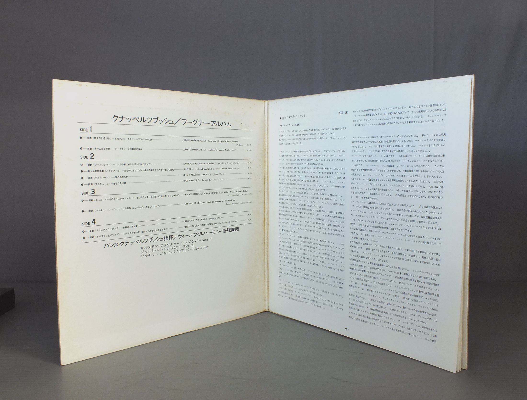 KNAPPERTSBUSCH - VIENNA PHIL.クナッペルツブッシュ - ウィーン・フィル/WAGNER ALBUMワーグナー・アルバム SL5023-4 製造国:日本盤 / Media:LP外観:EX-盤の状態:EX 価格(税込):¥1,155(売約済) 送料 7inch:定形外郵便 360円~LP:定形外郵便 660円~送料は、注文の最終画面で確認頂けます。 > > KNAPPERTSBUSCH - VIENNA PHIL./WAGNER ALBUM 外観 (EX-)特記事項:ジャケ表面にスレ有り。見開きにシミ有り。外観EX-の共通説明:ダメージ軽度~多少。 中古品としては普通の状態。シミ、ヨゴレ、スレなど軽く~多少。 盤の状態 (EX)特記事項:薄いスリキズ・スレ軽くある感じ。軽微なものの様子です。盤EXの共通説明:盤面のスリキズが薄いものが少し~軽度 音に出そうなものは無いように見える(軽微なソフトティック音は除く)。 Tweet それぞれの画像をクリックすると、大きい写真が見られます こちらの商品もお勧めです 990円 GUIDO CANTELLIカンテルリ / MENDELSSOHN-SYM. NO4メンデルスゾーン-交響曲第4番 イタリア 他 990円 MUTIムーティ / MENDELSSOHN SYM. NO3 `SCOTCH` ETCメンデルスゾーン 交響曲 第3番 `スコッチ` 990円 KARAJANカラヤン / VERDI ALLE OUVERTUREN UND VORSPIELEヴェルディ 序曲・前奏曲全集 990円 BERNSTEINバーンスタイン / MAHLER-DAS LIED VON DER ERDEマーラー-交響曲 大地の歌 990円 KARAJAN - VIENNA PHILHARMONIC ORCHカラヤン - ウィーン・フィル / BRAHMS - SYM. NO1ブラームス交響曲第1番 990円 TOSCANINIトスカニーニ / ROSSINI OVERTURESロッシーニ 序曲集 990円 ORMANDYオーマンディ / BIZET-L`ARLESIENNE SUITESビゼー-アルルの女 & カルメン-グリーク-ペール・ギュント 第1組曲 990円 KARAJAN - BERLINER PHILHARMONIKERカラヤン - ベルリン・フィル / BERLIOZ - SYMPHONIE FANTASTIQUEベルリオーズ - 幻想交響曲