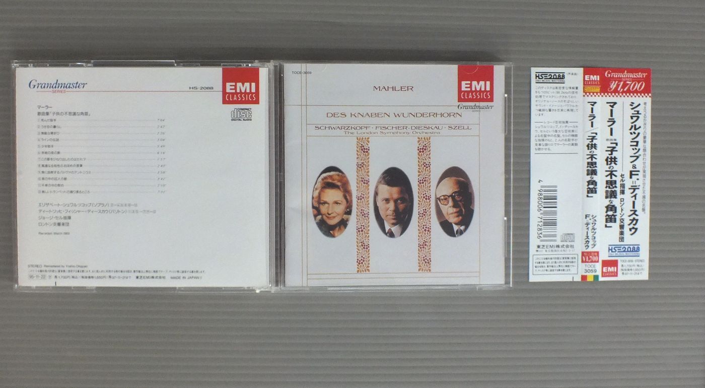 SCHWARZKOPF - DIESKAU - SZELL - LONDON SYMPHONY ORCHシュワルツコップ - F=ディースカウ & セル/MAHLER - DES KNABEN WUNDERHORNマーラー歌曲集 子供の不思議な角笛 TOCE3059 製造国:日本盤 / Media:CD外観:EX+盤の状態:EX+帯:EX+ 価格(税込):¥1,100 送料 7inch:定形外郵便 360円~LP:定形外郵便 660円~送料は、注文の最終画面で確認頂けます。 > > SCHWARZKOPF - DIESKAU - SZELL - LONDON SYMPHONY ORCH/MAHLER - DES KNABEN WUNDERHORN 外観 (EX+)特記事項:特記無し。外観EX+の共通説明:中古としては美品、一見してきれいでダメージが軽微。シミ、ヨゴレ、スレ有っても僅か~少し。 盤の状態 (EX+)特記事項:あまりスリキズの無いきれいな状態。盤EX+の共通説明:盤面の極薄いスリキズ、スレ少し程度 音に出そうなものは無いように見える(極軽微なソフトティック音は除く)。 帯の状態 (EX+):特記無し。 Tweet それぞれの画像をクリックすると、大きい写真が見られます こちらの商品もお勧めです 1,320円 SCHWARZKOPF - LUDWIG - SYMPHONY ORCH. OF RADIO BERLINシュワルツコフ - ベルリン放送交響楽団 / WEBER - ABU HASSANウェーバー歌劇アブ・ハッサン 1,540円 PETER SCHREIER (TENOR) - WALTER OLBERTZ (PIANO) / SCHUBERT - SWAN SONGシューベルト - 白鳥の歌 990円 GERSHWINガーシュイン / PORGY & BESSS HISTORIC RECORDINGSポギーとベス 歴史的録音 990円 YELENA OBRAZTSOVA - KHAIKIN - BOLISHOI THEATRE ORCH.エレーナ・オブラスツォワ - ハイキン - ボリショイ歌劇場管弦楽団 / OPERA ARIASオペラ・アリア集 1,540円 JANET BATER - MENUHIN - BACH FESTIVAL ORCHESTRAジャネット・ベイカー - メニューイン - バッハ祝祭管弦楽団 / BACH - CANTATA NO.82バッハ・カンタータ第82番169番 1,650円 KARAJAN + CALLAS / LUCIA LAMMERMOOR SEPT22 1955 3LP BOX 1,540円 VISHNEVSKAYA - ROSTROPOVICHガリーナ・ヴィシネフスカヤ - ロストロポーヴィチ / LIEDER SONGS CHANTS 2,090円 BOHM - WIENER PHILHARMONIKERボーム - ウィーン・フィル / MOZART - COSI FAN TUTTE 3LP BOXモーツアルト - コジ・ファン・トゥッテ 3枚組
