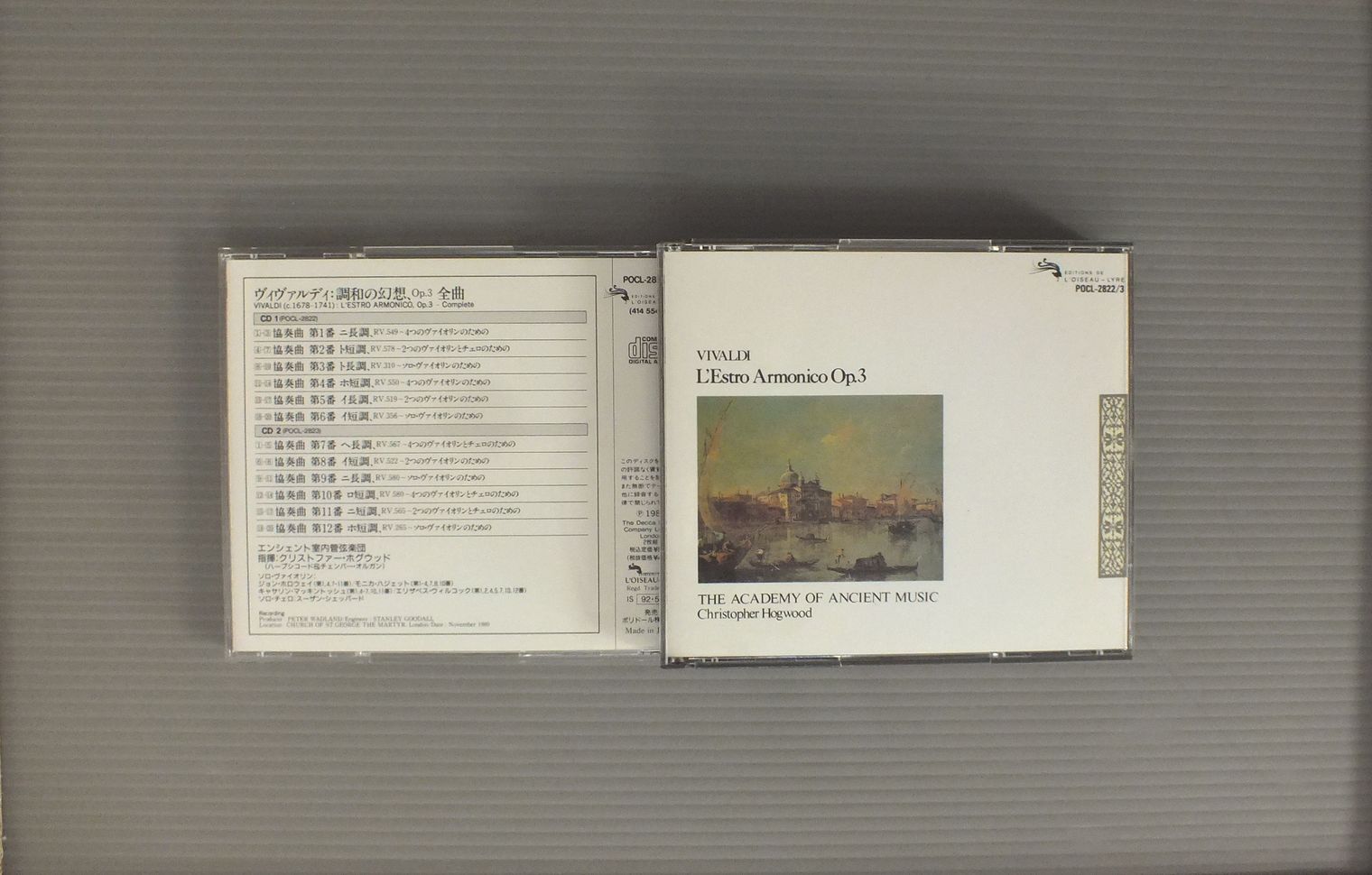HOGWOOD - ACADEMY OF ANCIENT MUSICホグウッド - エンシェント室内管弦楽団/VIVALDI - L`ESTRO ARMONICO OP3 COMPLETE 2 CD SETヴィヴァルディ - 調和の幻想 POCL2822-3 製造国:日本盤 / Media:CD外観:EX盤の状態:EX 価格(税込):¥2,200 送料 7inch:定形外郵便 360円~LP:定形外郵便 660円~送料は、注文の最終画面で確認頂けます。 > > HOGWOOD - ACADEMY OF ANCIENT MUSIC/VIVALDI - L`ESTRO ARMONICO OP3 COMPLETE 2 CD SET 外観 (EX)特記事項:ケースにスリキズ有り。外観EXの共通説明:ダメージが限定的。中古品としては保存状態がよい方。シミ、ヨゴレ、スレ 少し~軽度。 盤の状態 (EX)特記事項:あまりスリキズの無いきれいな状態。盤EXの共通説明:盤面のスリキズが薄いものが少し~軽度 音に出そうなものは無いように見える(軽微なソフトティック音は除く)。 その他:2枚組 Tweet それぞれの画像をクリックすると、大きい写真が見られます こちらの商品もお勧めです 990円 KLENPERER - PHILHARMONIA ORCH.クレンペラー - フィラデルフィア管弦楽団 / KLEMPERER CONDUCTS MORE WARGNERクレンペラー ワーグナー名曲集 990円 JOCHUM - CONCERTGEBOUW ORCHESTRAヨッフム - アムステルダム・コンセルトヘボウ管弦楽団 / BEETHOVEN - SYMPHONY NO5ベートーヴェン - 交響曲第5番 運命 2,200円 SOLTI + CHICAGO SYMPHONY / BEETHOVEN NINE SYMPHONIES 9LP BOX 2,420円 HIROYUKI IWAKI - THE NHK SYMPHONY ORCHESTRA岩城宏之 - NHK交響楽団 / TOSHIRO MAYUZUMI - BUGAKU黛 敏郎 - バレエ音楽`舞楽` 2,860円 JOCHUM - CHOR UND ORCHESTER DES BAYERISCHEN RUNDFUNKSヨッフム - バイエルン放送交響楽団 / HAYDN - MISSA SANCTAE CAECILIAEハイドン - チェチリアのミサ 990円 KARAJAN - VIENNA PHILHARMONIC ORCHESTRAカラヤン - ウィーン・フィルハーモニー管弦楽団 / HOLST - THE PLANETSホルスト - 組曲惑星 990円 WEISSSENBERG - GIULINI - WIENER SYMPHONYワイセンベルク - ジュリーニ - ウィーン交響楽団 / MOZART - PIANO CINCERTO NO.9モーツァルト - ピアノ協奏曲第9番 990円 KENPE - BERLIN PHILHARMONIC ORCHESTRAケンペ - ベルリン・フィルハーモニー管弦楽団 / DVORAK - SYMPHONY NO.9ドヴォルザーク - 交響曲第9番 新世界より