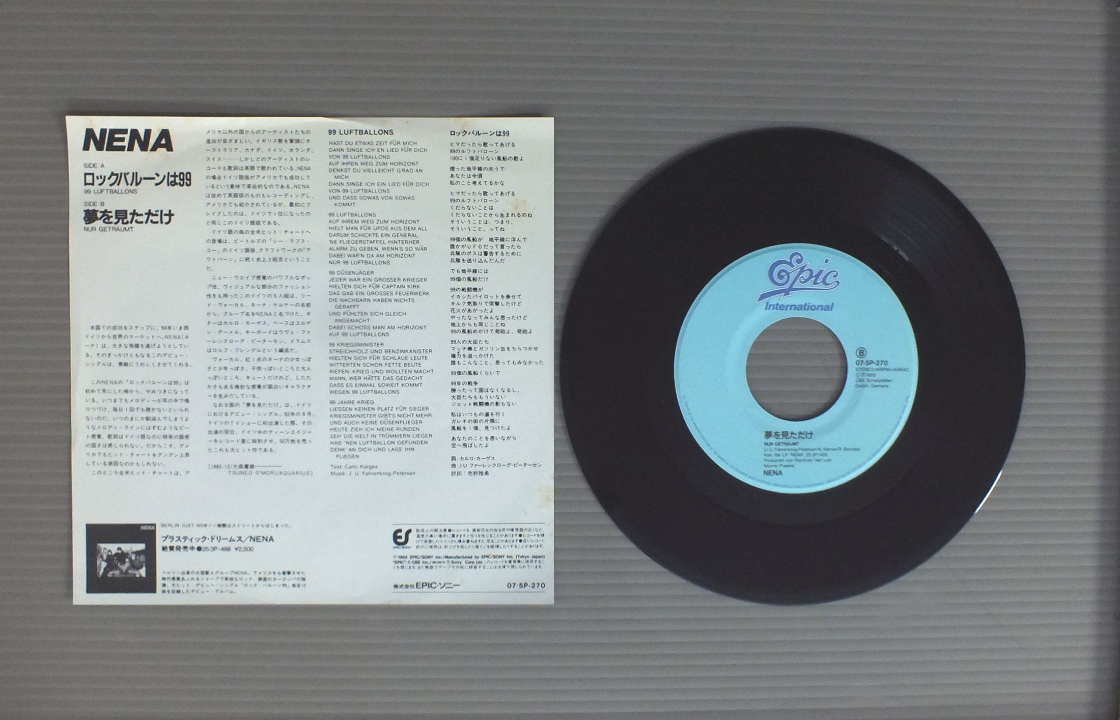 NENAネーナ/99 LUFTBALLONSロックバルーンは99 07 5P270 製造国:日本盤 / Media:7inch外観:EX盤の状態:EX 価格(税込):¥550 送料 7inch:定形外郵便 360円~LP:定形外郵便 660円~送料は、注文の最終画面で確認頂けます。 > > NENA/99 LUFTBALLONS 外観 (EX)特記事項:ヨレ有り。裏側にシミ。外観EXの共通説明:ダメージが限定的。中古品としては保存状態がよい方。シミ、ヨゴレ、スレ 少し~軽度。 盤の状態 (EX)特記事項:薄いスリキズ・スレ軽くある感じ。軽微なものの様子です。盤EXの共通説明:盤面のスリキズが薄いものが少し~軽度 音に出そうなものは無いように見える(軽微なソフトティック音は除く)。 Tweet それぞれの画像をクリックすると、大きい写真が見られます こちらの商品もお勧めです 770円 CULTUTE CLUB / HOUSE ON FIRE 770円 CULTURE CLUBカルチャー・クラブ / WAR SONG戦争のうた 1,320円 NENAネーナ / NENAロックバルーンは99 770円 CHEAP TRICKチープ・トリック / HEAVEN TONIGHT天国の罠(トリック) 1,320円 CLASSIX NOUVEAUXクラシックス・ヌヴォー / NIGHT PEOPLE夜行人間 770円 MEN AT WORKメン・アット・ワーク / BUSINESS AS USUALワーク・ソングズ 440円 SCREAMING BLUE MESSIAHSスクリーミング・ブルー・メサイアズ / BIKINI REDビキニ・レッド 660円 CULTURE CLUBカルチャー・クラブ / KISSING TO BE CLEVER
