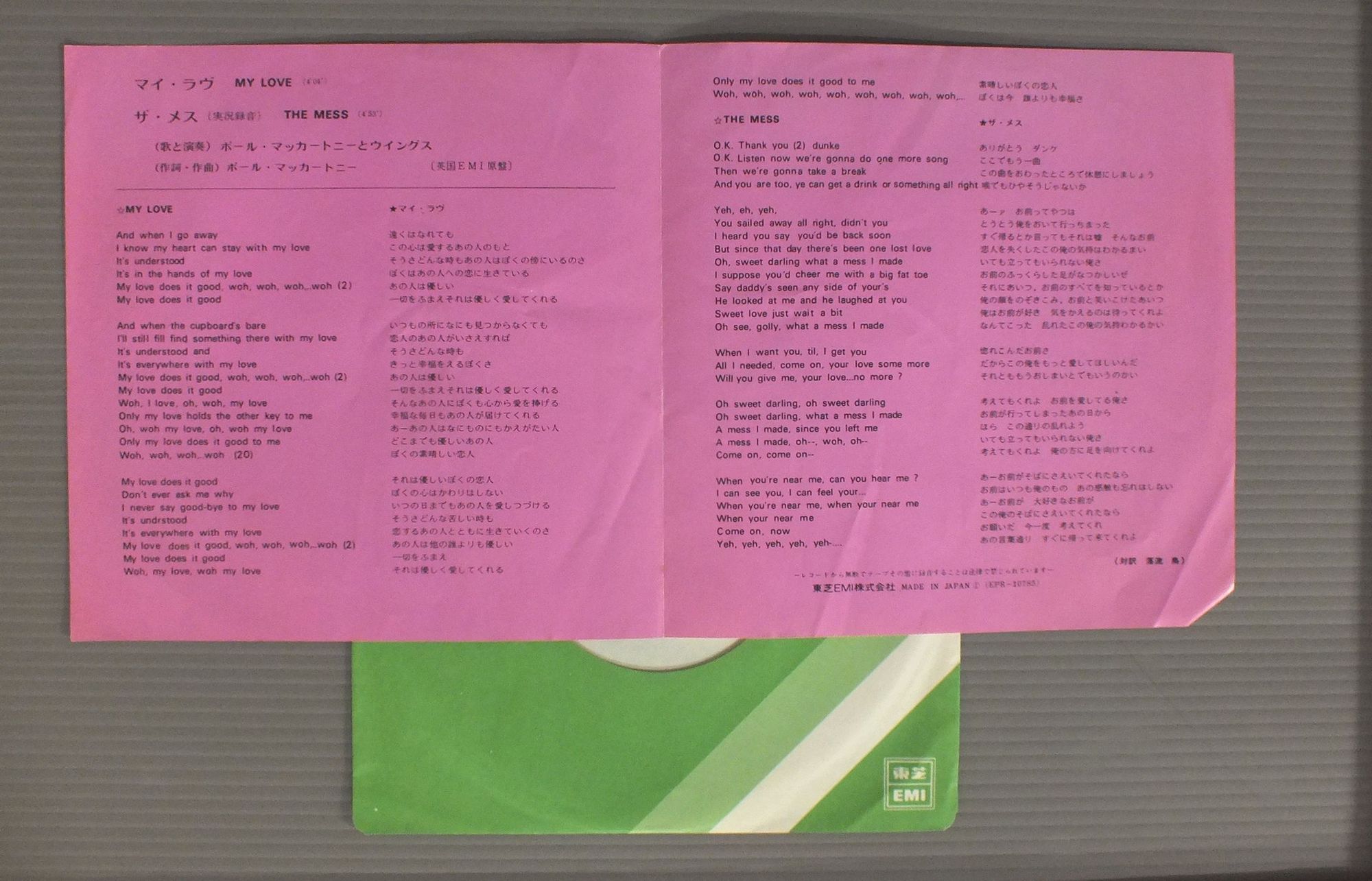 PAUL McCARTNEY & WINGSポール・マッカートニー&ウイングス/MY LOVEマイ・ラヴ EPR10785 製造国:日本盤 / Media:7inch外観:EX-盤の状態:EX 価格(税込):¥550 送料 7inch:定形外郵便 360円~LP:定形外郵便 660円~送料は、注文の最終画面で確認頂けます。 > > PAUL McCARTNEY & WINGS/MY LOVE 外観 (EX-)特記事項:ヨレやよごれ有り。外観EX-の共通説明:ダメージ軽度~多少。 中古品としては普通の状態。シミ、ヨゴレ、スレなど軽く~多少。 盤の状態 (EX)特記事項:薄いスリキズ・スレ軽くある感じ。軽微なものの様子です。盤EXの共通説明:盤面のスリキズが薄いものが少し~軽度 音に出そうなものは無いように見える(軽微なソフトティック音は除く)。 Tweet それぞれの画像をクリックすると、大きい写真が見られます こちらの商品もお勧めです 1,650円 PAUL McCARTNEYポール・マッカートニー / PIPES OF PEACEパイプス・オブ・ピース 1,540円 WINGSポール・マッカートニーとウイングス / LONDON TOWN 770円 JOHN LENNONジョン・レノン / PLASTIC ONO BANDプラスティック・オノ・バンド 1,650円 WINGSウィングス / OVER AMERICAUSAライブ 1,210円 WINGSウィングス / WINGS OVER AMERICAウィングスU.S.A ライヴ 770円 WINGSポール・マッカートニー&ウイングス / VENUS AND MARSヴィーナス・アンド・マース 1,210円 WINGSウイングス / GREATEST HITSグレイテスト・ヒット 880円 PAUL McCARTNEYポール・マッカートニー / TUG OF WARタグ・オブ・ウォー