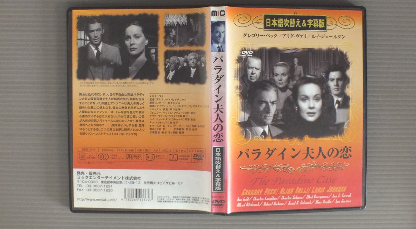 GREGDRY PECK - ALIDA VALLI - LOUIS JOURDAN etcグレゴリー・ペック - アリダ・ヴァリ - ルイ・ジュールダン 他/PARADINE CASEパラダイン夫人の恋-日本語吹替え&字幕版 DMIC072 製造国:日本盤 / Media:DVD外観:EX盤の状態:EX- 価格(税込):¥2,750 送料 7inch:定形外郵便 360円~LP:定形外郵便 660円~送料は、注文の最終画面で確認頂けます。 > > GREGDRY PECK - ALIDA VALLI - LOUIS JOURDAN etc/PARADINE CASE 外観 (EX)特記事項:ケースにスリキズやよごれ有り。外観EXの共通説明:ダメージが限定的。中古品としては保存状態がよい方。シミ、ヨゴレ、スレ 少し~軽度。 盤の状態 (EX-)特記事項:薄いスリキズ多少有り。盤EX-の共通説明:盤面のスリキズが多少有り。音に出そうなものは殆ど無いように見える~さほど気にならないぐらいの軽いプチ数カ所程度。 Tweet それぞれの画像をクリックすると、大きい写真が見られます こちらの商品もお勧めです 1,980円 OSAMU TEDUKA手塚治虫 / ORIGINAL SOUNDTRACK PHOENIX 2772オリジナルサウンドトラック 火の鳥2772 音楽集