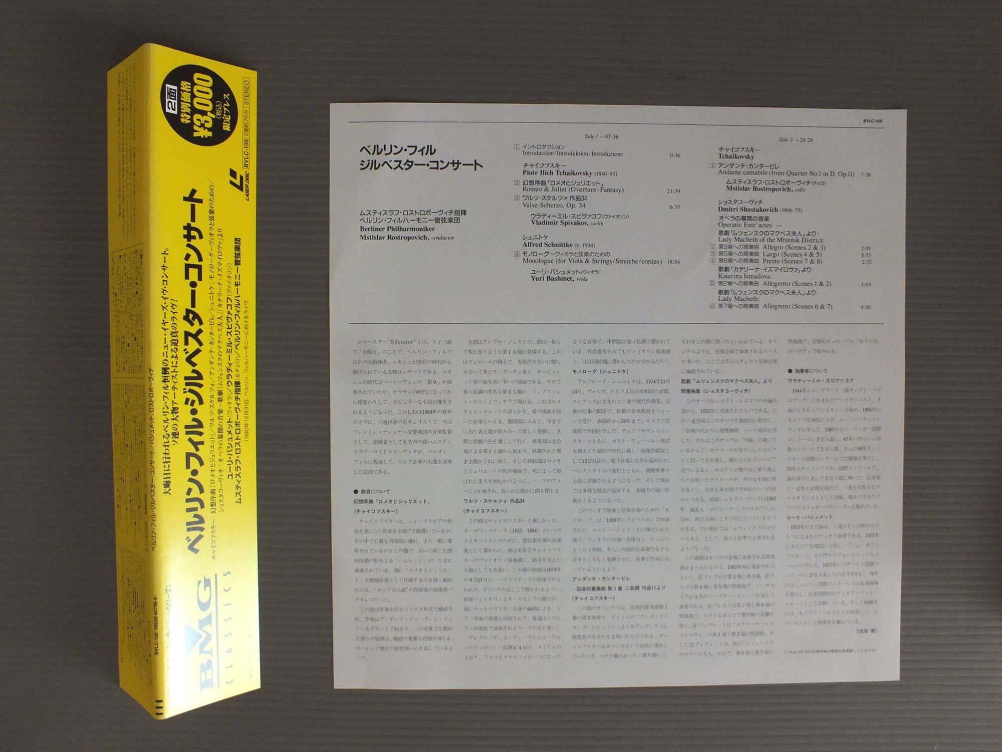 BASHMET - SPIVAKOV - ROSTROPOVICH - BPOバッシュメット - スピヴァコフ - ロストロポーヴィチ - ベルリン・フィル/BPO CONCERT IN BERLINベルリン・フィル・ジルベスター・コンサート BVLC105 製造国:日本盤 / Media:LD外観:EX+盤の状態:EX+帯:EX+ 価格(税込):¥770 送料 7inch:定形外郵便 360円~LP:定形外郵便 660円~送料は、注文の最終画面で確認頂けます。 > > BASHMET - SPIVAKOV - ROSTROPOVICH - BPO/BPO CONCERT IN BERLIN 外観 (EX+)特記事項:特記なし。外観EX+の共通説明:中古としては美品、一見してきれいでダメージが軽微。シミ、ヨゴレ、スレ有っても僅か~少し。 盤の状態 (EX+)特記事項:薄いスリキズ・スレ少し。一見してきれいな状態です。盤EX+の共通説明:盤面の極薄いスリキズ、スレ少し程度 音に出そうなものは無いように見える(極軽微なソフトティック音は除く)。 帯の状態 (EX+):特記なし。 Tweet それぞれの画像をクリックすると、大きい写真が見られます こちらの商品もお勧めです 2,420円 HIROYUKI IWAKI - THE NHK SYMPHONY ORCHESTRA岩城宏之 - NHK交響楽団 / TOSHIRO MAYUZUMI - BUGAKU黛 敏郎 - バレエ音楽`舞楽` 1,320円 RICHTER - MRAVINSKY - LENINGRAD PHILHARMONIC SYMPHONY ORCH.リヒテル - ムラヴィンスキー - レニングラード・フィル / TCHAOKOVSKY - PIANO CONCERTO NO.1チャイコフスキー - ピアノ協奏曲1番 990円 MARRINER - ACADEMY OF ST.MARTIN IN THE FIELDSマリナー - アカデミー室内管弦楽団 / SCHONBERG - VERKLARTE NACHETシェーンベルク - 浄夜 1,540円 BOHM - BERLINER PHILHARMONIKERベーム - ベルリン・フィル / R.STRAUSS - TILL EULENSPIEGELリヒャルト・シュトラウス - ティル・オイレンシュピーゲルの愉快ないたずら 990円 KENPE - BERLIN PHILHARMONIC ORCHESTRAケンペ - ベルリン・フィルハーモニー管弦楽団 / DVORAK - SYMPHONY NO.9ドヴォルザーク - 交響曲第9番 新世界より 990円 REINER - CHICAGO SYMPHONY ORCHESTRAライナー - シカゴ交響楽団 / BARTOK - MUSIC FOR STRINGS PERCUSSION AND CELESTAバルトーク - 弦楽器と打楽器とチェレスタのための音楽 1,540円 LAWRENCE FOSTER - HOUSTON SYMPHONY ORCHESTRAローレンス・フォスター - ヒューストン交響楽団 / PAUL CHIHARA - SYMPHONY IN CELEBRATIONポール・チハラ - SYMPHONY IN CELEBRATION 990円 STERN - ORMANDY - THE PHILADERPHIA ORCH.スターン - オーマンディ - フィラデルフィア管弦楽団 / BRAHMS - VIOLIN CONCERTOブラームス - ヴァイオリン協奏曲