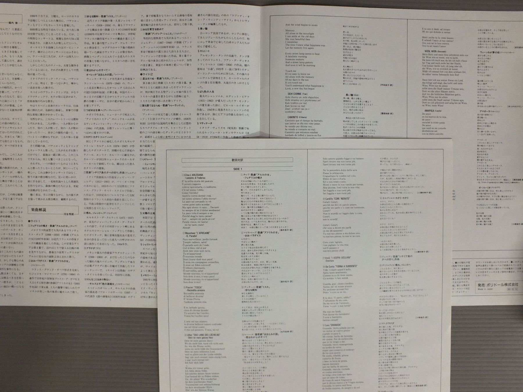 PAVAROTTI - DOMINGO - CARRERAS etcパヴァロッティ - ドミンゴ - カレーラス他/3 TENORES IN CONCERT世界3大テノール 世紀の競演 POLL1002 製造国:日本盤 / Media:LD外観:EX-盤の状態:EX 価格(税込):¥550 送料 7inch:定形外郵便 360円~LP:定形外郵便 660円~送料は、注文の最終画面で確認頂けます。 > > PAVAROTTI - DOMINGO - CARRERAS etc/3 TENORES IN CONCERT 外観 (EX-)特記事項:スレやスリキズ有り。外観EX-の共通説明:ダメージ軽度~多少。 中古品としては普通の状態。シミ、ヨゴレ、スレなど軽く~多少。 盤の状態 (EX)特記事項:薄いスリキズ・スレ軽くある感じ。軽微なものの様子です。盤EXの共通説明:盤面のスリキズが薄いものが少し~軽度 音に出そうなものは無いように見える(軽微なソフトティック音は除く)。 Tweet それぞれの画像をクリックすると、大きい写真が見られます こちらの商品もお勧めです 990円 GROSSMANN - VIENNA PRO MUSICA ORCHESTRAグロスマン - ウィーン・プロ・ムジカ・管弦楽団 / MOZART - MASS IN C MINORモーツァルト - ミサハ短調 990円 BORIS CHRISTOFF - FEODOR POTORJINSKI RUSSIAN CHOIRボリス・クリストフ - ポトルジンスキー・ロシア合唱団 / RUSSIAN FOLK SONGS AND SACRED MUSICロシア民謡集 1,540円 FISCHER DIESKAU - ESCHENBACHフィッシャーディスカウ - エッシェンバッハ / SCHUMANN - LIEDERシューマン歌曲集 990円 JANET BAKER - BARBIROLLI - NEW PHILHARMONIA ORCHESTRAジャネット・ベイカー - バルビローリ - ニュウ・フィルハーモニア / RAVEL - SHEHERAZADEラヴェル - シェヘラザード 1,540円 KARAJAN - WIENER SINGVEREIN - VERLINER PHILHARMONIKERカラヤン - ウィーン楽友協会合唱団 - ベルリンフィル / BACH - MATTEHAUS PASSIONバッハ - マタイ受難曲 1,320円 BRUNO TURNER - ENSEMBLE PRO CANTIONE ANTIQUA LONDONブルーニ・ターナー - プロ・カンツォーネ・アンティカ / ORLANDO DI LASSO - REQUIEMオルランド・ディ・ラッソ - レクイエム 1,760円 FISCHER DIESKAU - GERALD MOOREフィッシャーディスカウ - ジェラルド・ムーア / SCHUBERT - WINTERREISEシューベルト - 冬の旅 2,090円 BOHM - WIENER PHILHARMONIKERボーム - ウィーン・フィル / MOZART - COSI FAN TUTTE 3LP BOXモーツアルト - コジ・ファン・トゥッテ 3枚組