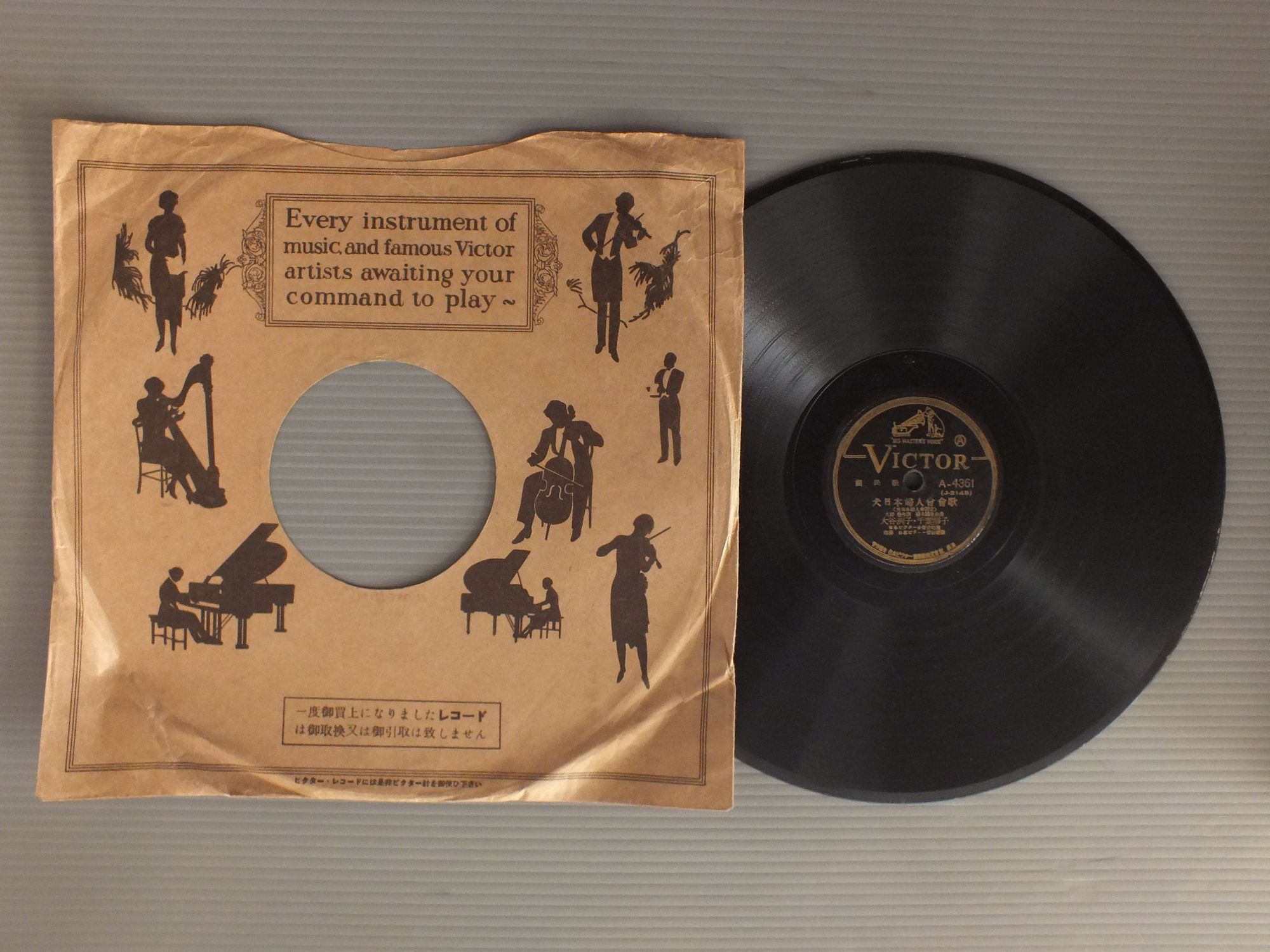 大谷冽子と千葉静子/大日本婦人会会歌 A4361 製造国:日本盤 / Media:SP 価格(税込):¥880(売約済) 送料 7inch:定形外郵便 360円~LP:定形外郵便 660円~送料は、注文の最終画面で確認頂けます。 > > / 盤の状態 ()特記事項:SP盤は扱いがほとんどなく、盤をチェックする環境も無いため、申し訳ございませんが盤質は不明という事をご了承の上ご入札下さい。クリーニングも致しておりません。よごれやスリキズ有り。盤の共通説明: Tweet それぞれの画像をクリックすると、大きい写真が見られます こちらの商品もお勧めです 1,210円 HACHIRO KASUGA春日八郎 / HACHIRO KASUGA HIT ALBUM春日八郎 -魅力のすべて- 990円 YOSHIO TABATA田端義夫 / BEST ALBUM歌道ひと筋三十年 田端義夫の傑作全集 心の唄 770円 YUJIRO ISHIHARA石原裕次郎 / YUJIRO ISHIHARA ORIGINAL BEST石原裕次郎オリジナルベスト 880円 KEN TSUMURA津村謙 / KAYO ALBUM津村謙歌謡アルバム 1,210円 KEIICHIRO AKAGI赤木圭一郎 / EIEN-NO-TONY永遠のトニー 赤木圭一郎絶唱集 660円 CHIEKO SATOH佐藤千夜子 / BEST COLLECTIONオリジナル原盤による懐しの歌声シリーズ4 東京行進曲 880円 上原敏 / 憶い出の任侠・時代歌謡-ポリドール SP原盤 シリーズ 880円 上原敏 / ポリドール(SP原盤)シリーズ -第6集- 哀愁の抒情・マドロス歌謡
