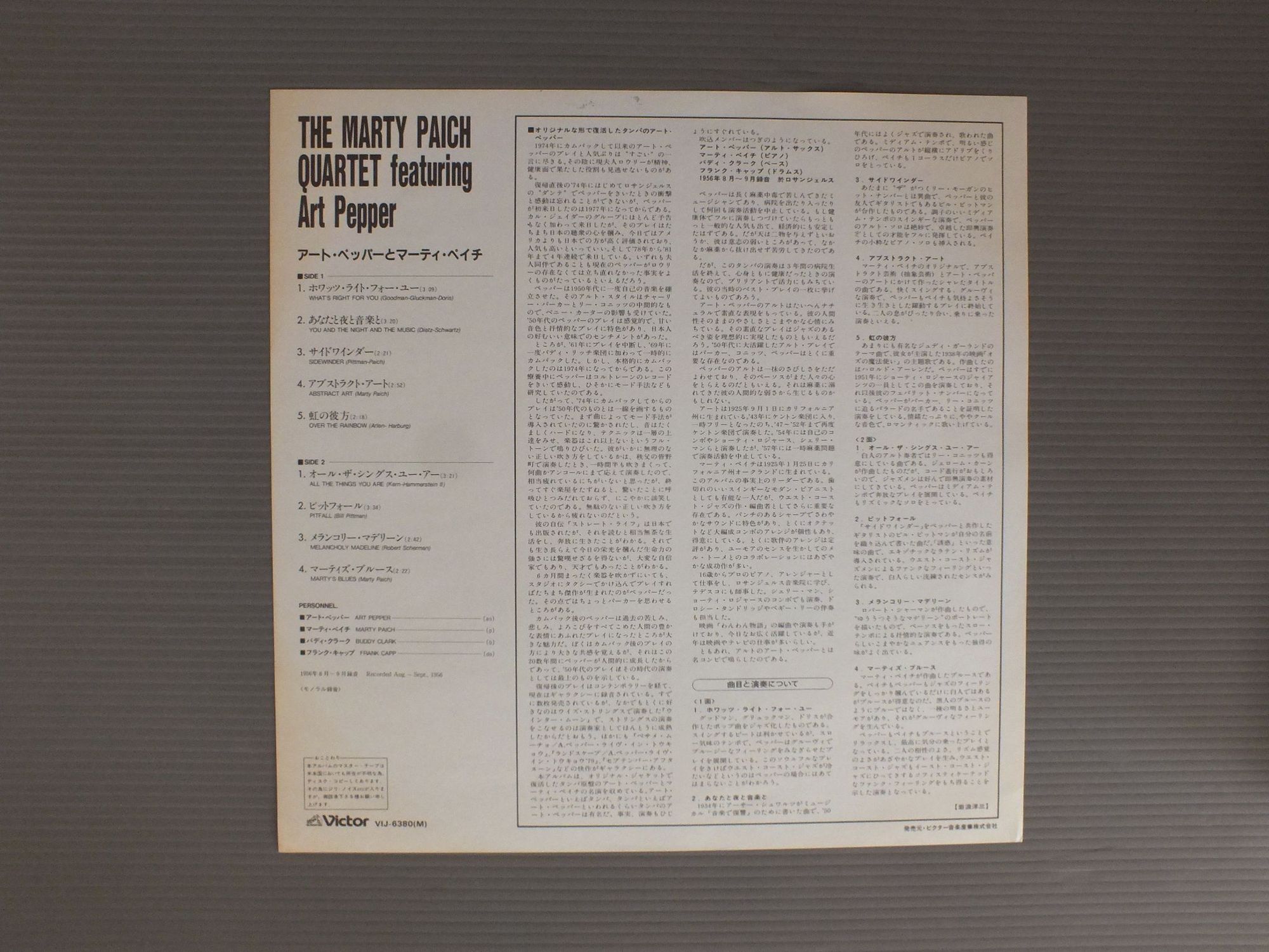 MARTY PAICH QUARTETアート・ペッパーとマーティ・ペイチ/FEATURING ART PEPERアート・ペッパーとマーティ・ペイチ VIJ6380 製造国:日本盤 / Media:LP外観:EX盤の状態:EX帯:EX 価格(税込):¥1,650(売約済) 送料 7inch:定形外郵便 360円~LP:定形外郵便 660円~送料は、注文の最終画面で確認頂けます。 > > MARTY PAICH QUARTET/FEATURING ART PEPER 外観 (EX)特記事項:ジャケ表面にシミやよごれ有り。外観EXの共通説明:ダメージが限定的。中古品としては保存状態がよい方。シミ、ヨゴレ、スレ 少し~軽度。 盤の状態 (EX)特記事項:薄いスリキズ・スレ軽くある感じ。軽微なものの様子です。盤EXの共通説明:盤面のスリキズが薄いものが少し~軽度 音に出そうなものは無いように見える(軽微なソフトティック音は除く)。 帯の状態 (EX):シミやよごれ有り。 Tweet それぞれの画像をクリックすると、大きい写真が見られます こちらの商品もお勧めです 1,320円 EDDIE COSTA TRIOエディ・コスタ・トリオ / HOUSE OF BLUE LIGHTSハウス・オブ・ブルー・ライツ 770円 DAS GUNTER NORIS TRIO - COLLUM - WALCHAギュンター・ノリス・トリオ - ヘルベルト・コルム - ヴァルヒャ / BACH - TOCCATA & FUGUEジャズとクラシックによる 2つのバッハ 1,210円 BUCK CLAYTONバック・クレイトン・オールスターズ / HUCKLE-BUCK AND ROBBINS` NEST A BUCK CLAYTON JAM SESSIONバック・クレイトン・ジャム・セッション 1,650円 DOLLAR BRANDダラー・ブランド / AFRICAN PIANOアフリカン・ピアノ 1,210円 EARL HINESアール・ハインズ / SPONT ANEOUS EXPLORATIONSアール・ハインズ・ソロ・ピアノ 660円 QUINCY JONES & BANDクインシー・ジョーンズ / I DIG DANCERSアイ・ディグ・ダンサーズ 1,320円 GATO BARBIERIガトー・バルビエリ / UNDER FIREアンダー・ファイア 1,210円 ERIC DOLPHYエリック・ドルフィー / LAST DATEラスト・レコーディング