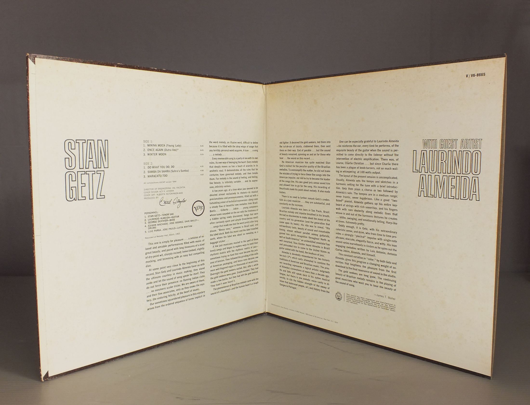 STAN GETS/WITH LAURINDO ALMEIDA V6-8665 製造国:米国盤 / Media:LP外観:EX-盤の状態:EX- 価格(税込):¥1,650(売約済) 送料 7inch:定形外郵便 360円~LP:定形外郵便 660円~送料は、注文の最終画面で確認頂けます。 > > STAN GETS/WITH LAURINDO ALMEIDA 外観 (EX-)特記事項:角スレや上ヘリにスレ。見開きにシミ有り。外観EX-の共通説明:ダメージ軽度~多少。 中古品としては普通の状態。シミ、ヨゴレ、スレなど軽く~多少。 盤の状態 (EX-)特記事項:薄いスリキズ・細かい表面スレ多少ある感じ。全体的には殆どが軽微なものの様子です。盤EX-の共通説明:盤面のスリキズが多少有り。音に出そうなものは殆ど無いように見える~さほど気にならないぐらいの軽いプチ数カ所程度。 Tweet それぞれの画像をクリックすると、大きい写真が見られます こちらの商品もお勧めです 770円 BENNY CARTER / `SKYLINE DRIVE` 1,100円 FREEMAN-WETTLING etc / COMMODORE STYLE 1938 & 44 1,980円 CHICO HAMILTON QUINTET / IRMA LA DOUCE-BYE BYE BIRDIE 990円 PERCY G.HUMPHREY / DANCING AT CONFECTIONERS HALL (AUTOGRAPHED COVER)DANCING AT CONFECTIONERS HALL サイン付 770円 WOODY HERMAN / LIVE AT MONTEREY 770円 BOBBY HACKETT / AT THE EMBERS 1,650円 LAWSON-FREEMAN-DAVERN-SUTTON / LIVE AT LOUISIANA JAZZ CLUB-1979 AUTOGRAPHEDLIVE AT LOUISIANA JAZZ CLUB-1979 サイン付 1,980円 MICHEL LEGLAND / AT SHELLY`S MANNE-HOLE
