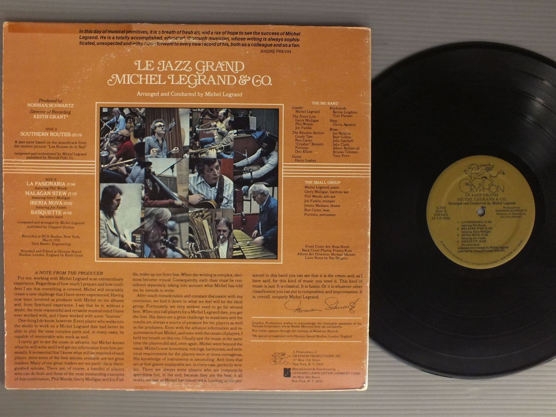 MICHEL LEGRAND & CO/JAZZ GRAND GRYPHON G786 製造国:米国盤 / Media:LP外観:VG+盤の状態:VG+ 価格(税込):¥880(売約済) 送料 7inch:定形外郵便 360円~LP:定形外郵便 660円~送料は、注文の最終画面で確認頂けます。 > > MICHEL LEGRAND & CO/JAZZ GRAND 外観 (VG+)特記事項:背スレやヘリスレ、角スレ有り。見開きも含めてジャケ表面にシミやよごれ多め。レコードリングスレ等スレ多め。外観VG+の共通説明:ダメージやや有り。シミ、ヨゴレ、スレなど多少~やや多め。 盤の状態 (VG+)特記事項:薄いスリキズ・細かいスレ多少。プチ出そうな小キズ、線キズもチラホラと盤面にありますが、全体的には軽微なものが中心です。盤VG+の共通説明:盤面にスリキズが多少~やや有り、音に出そうなものも多少ある。 Tweet それぞれの画像をクリックすると、大きい写真が見られます こちらの商品もお勧めです 770円 TEDDY WILSON / WITH CHARLIE SHAVERS SPECS POWELL RED NORVO etc 770円 GUST WILLIAM TSILIS / PALE FIRE 2,420円 RUBY BRAFF AND HIIS MEN / HI FI SALUTE TO BUNNY 1,210円 SACKVILLE ALL STAR / CHRISTMAS RECORD (RALPH SUTTON AUTOGRAPHED)CHRISTMAS RECORD (RALPH SUTTONサイン付) 1,980円 MODERN JAZZ QUARTET / LEGENDARY PROFILE 1,100円 DODGE & HIS ALL-STAR ORCHESTRA / SWINGING `34 550円 GREATEST SWING BAND IN THE WORLD / IS BRITISH 990円 PERCY G.HUMPHREY / DANCING AT CONFECTIONERS HALL (AUTOGRAPHED COVER)DANCING AT CONFECTIONERS HALL サイン付