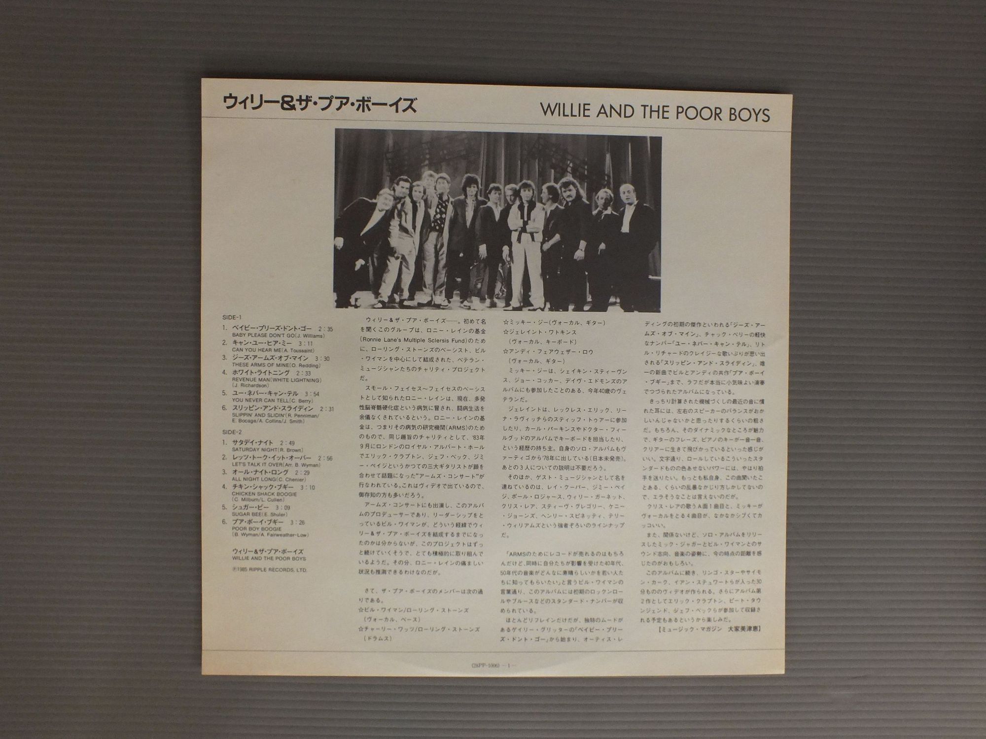 WILLIE & THE POOR BOYSウィリーとプア・ボーイズ/ACTION FOR RESEARCH INTO MULTIPLE SCLEROSISロニー・レイン救済基金 28PP1006 製造国:日本盤 / Media:LP外観:EX盤の状態:EX+帯:EX 価格(税込):¥1,650 送料 7inch:定形外郵便 360円~LP:定形外郵便 660円~送料は、注文の最終画面で確認頂けます。 > > WILLIE & THE POOR BOYS/ACTION FOR RESEARCH INTO MULTIPLE SCLEROSIS 外観 (EX)特記事項:ジャケ表面にシミやよごれ少し有り。日焼け感有り。外観EXの共通説明:ダメージが限定的。中古品としては保存状態がよい方。シミ、ヨゴレ、スレ 少し~軽度。 盤の状態 (EX+)特記事項:薄いスリキズ・スレ少し。一見してきれいな状態です。盤EX+の共通説明:盤面の極薄いスリキズ、スレ少し程度 音に出そうなものは無いように見える(極軽微なソフトティック音は除く)。 帯の状態 (EX):よごれ、スレ、スリキズ、ヨレ等少ないきれいな状態です。 その他:見本盤 Tweet それぞれの画像をクリックすると、大きい写真が見られます こちらの商品もお勧めです 1,650円 TEN YEARS AFTERテン・イヤーズ・アフター / CRICKLEWOOD GREENクリックルウッド・グリーン 1,210円 BEE GEESビー・ジーズ / SOUNDTRACK STAYING ALIVE映画 ステイン・アライヴ 770円 ABBAアバ / ARRIVALアライバル 1,210円 PAT McGLYNN`S SCOTTIESパット・マッグリンとスコッティーズ / PAT McGLYNN`S SCOTTIESパット・デビュー ! あの娘はアイドル 1,320円 WILLIE & THE POOR BOYSウィリーとプア・ボーイズ / ACTION FOR RESEARCH INTO MULTIPLE SCLEROSISロニー・レイン救済基金 1,210円 ABBAアバ / ARRIVALアライバル 1,210円 DUKESデュークス / 1st ALBUM運命の旅立ち 2,750円 SHOCKING BLUEショッキング・ブルー / LIVE IN JAPANLIVE IN JAPAN