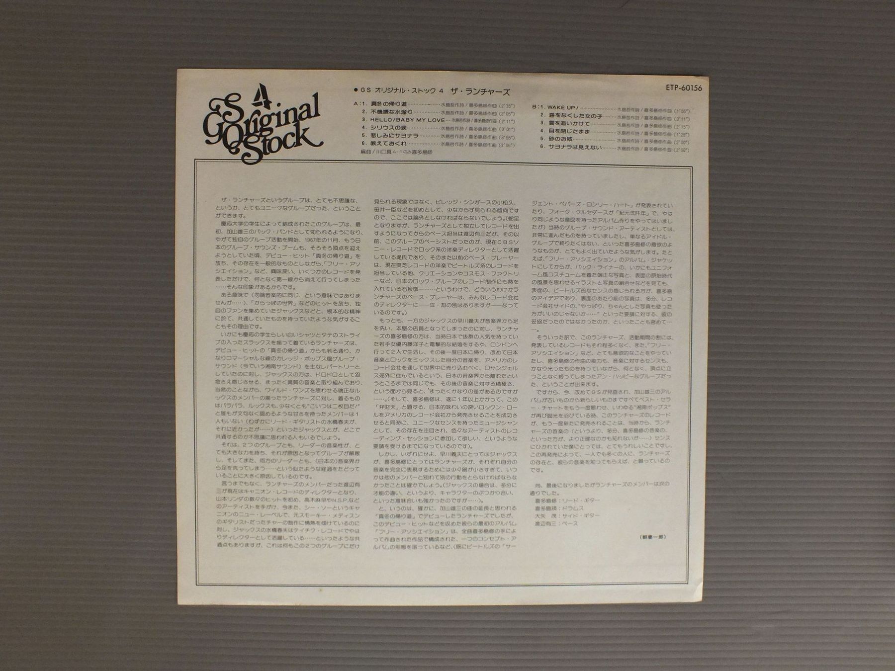 LAUNCHEERSランチャーズ/GS ORIGINAL STOCK VOL4GSオリジナル・ストック4 ETP60156 製造国:日本盤 / Media:LP外観:EX-盤の状態:EX 価格(税込):¥1,155(売約済) 送料 7inch:定形外郵便 360円~LP:定形外郵便 660円~送料は、注文の最終画面で確認頂けます。 > > LAUNCHEERS/GS ORIGINAL STOCK VOL4 外観 (EX-)特記事項:背スレやヘリスレ、角スレ多少有り。ジャケ表面にシミやよごれ多少有り。レコードリングスレ有り。外観EX-の共通説明:ダメージ軽度~多少。 中古品としては普通の状態。シミ、ヨゴレ、スレなど軽く~多少。 盤の状態 (EX)特記事項:多少薄いスリキズ・スレ軽くある感じ。殆どが軽微なものの様子です。盤EXの共通説明:盤面のスリキズが薄いものが少し~軽度 音に出そうなものは無いように見える(軽微なソフトティック音は除く)。 Tweet それぞれの画像をクリックすると、大きい写真が見られます こちらの商品もお勧めです 1,320円 YUZO KAYAMA & LAUNCHERS加山雄三とランチャーズ / 1st ALBUM ( REISSUE )青春・愛その時 (幻の1st ALBUM ) 550円 TAKESHI TERAUCHI & THE BUNNYS寺内タケシとバニーズ / LET`S GO CLASSICSレッツ・ゴー運命 1,210円 WILD ONES加瀬邦彦とワイルドワンズ / ON THE BEACH`82オン・ザ・ビーチ`82 770円 TIGERSタイガース / HUMAN RENASCENCEヒューマン・ルネッサンス 1,320円 TAKESHI TERAUCHI & THE BUNNYS寺内タケシとザ・バニーズ / LET`S GO CLASSICSレッツ・ゴー運命 660円 YUZO KAYAMA加山雄三 / 15TH ANNIVERSARY加山雄三1976 武道館ライブ 1,650円 MUNETAKA INOUE & HIS SHARP FIVE井上宗孝とシャープ・ファイヴ / SHARP FIVE SCREEN GO GOシャープ・ファイヴ・スクリーン・ゴーゴー 1,210円 TIGERSタイガース / TIGERS 1982十年ロマンス
