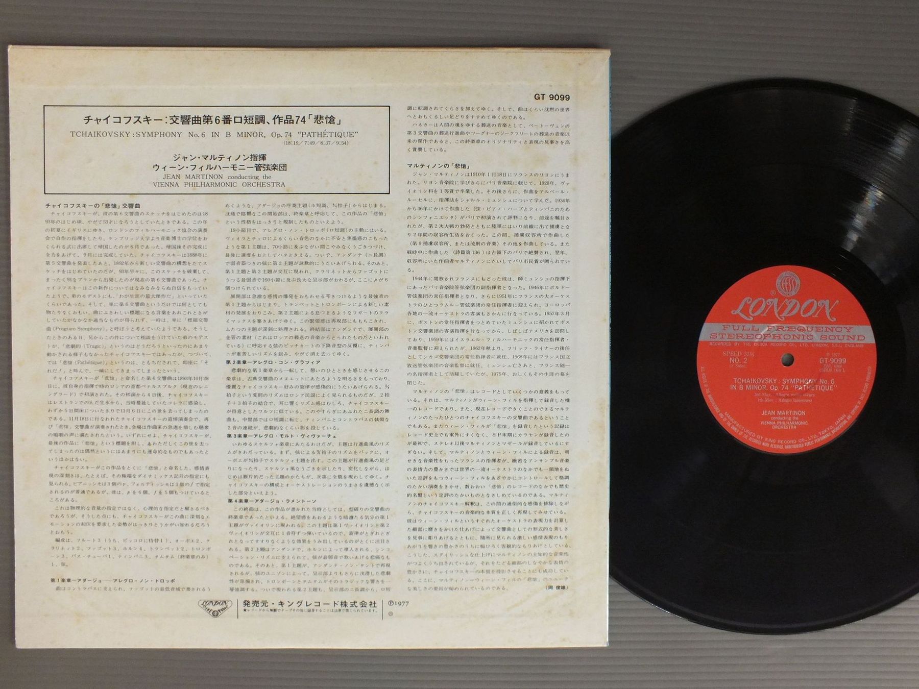 MARTINON - VIENNA PHIL.マルティノン - ウィーン・フィル/TCHAIKOVSKY - SYM. NO6 PATHETIQUEチャイコフスキー - 交響曲第6番悲愴 GT9099 製造国:日本盤 / Media:LP外観:EX-盤の状態:EX 価格(税込):¥660(売約済) 送料 7inch:定形外郵便 360円~LP:定形外郵便 660円~送料は、注文の最終画面で確認頂けます。 > > MARTINON - VIENNA PHIL./TCHAIKOVSKY - SYM. NO6 PATHETIQUE 外観 (EX-)特記事項:ジャケ表面にシミやよごれ多少有り。外観EX-の共通説明:ダメージ軽度~多少。 中古品としては普通の状態。シミ、ヨゴレ、スレなど軽く~多少。 盤の状態 (EX)特記事項:薄いスリキズ・スレ軽くある感じ。軽微なものが中心です。盤EXの共通説明:盤面のスリキズが薄いものが少し~軽度 音に出そうなものは無いように見える(軽微なソフトティック音は除く)。 Tweet それぞれの画像をクリックすると、大きい写真が見られます こちらの商品もお勧めです 990円 RUBINSTEIN - SKAROWACZEWSKY - NEW SYMPHONY ORCHESTRA OF LONDONスクロヴァチェフスキー - ロンドン新交響楽団 / CHOPIN - PIANO CONCERTOショパン - ピアノ協奏曲 1,430円 FURTWANGLERフルトヴェングラー / BRUCKNER SYM. NO4 `ROMANTIC`ブルックナー 交響曲第4番 `ロマンティック` 1,430円 FURTWANGLERフルトヴェングラー / SCHUBERT SYM. NO8 `UNFINISHED`シューベルト `未完成` 990円 CARL SCHURICHTカール・シューリヒト / STRAUSS-FESTIVAL WITH SCHURICHTウィーンの森の物語 990円 MEHTAメータ / BERLIOZ SYM. FANTASTIQUEベルリオーズ 幻想交響曲 990円 MAAZELマゼール / BEETHOVEN-SYM. NO5ベートーヴェン-交響曲第5番-シューベルト-交響曲第8番 未完成 990円 MENGELBERGウィレム・メンゲルベルク / SCHUBERT SYM. NO9シューベルト-交響曲第9番 `ザ・グレイト` 990円 WALTER - VIENNA PHILHAMONIC ORCH.ワルター - ウィーン・フィルハーモニー管弦楽団 / MOZART - CONCERTO IN D MIN K466モーツァルト - ピアノ協奏曲第20番