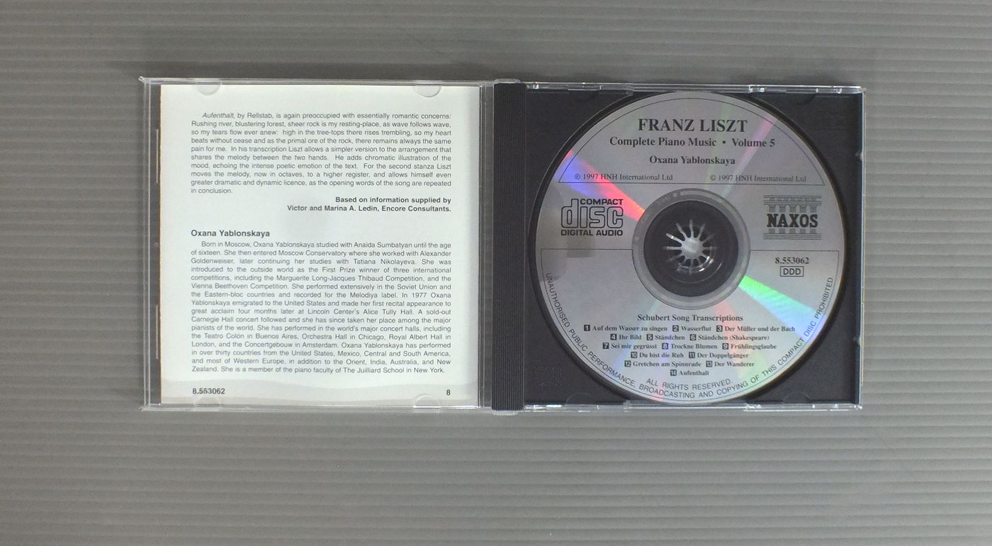 OXANA YABLONSKAYA/LISZT - SCHUBERT SONG TRANSCRIPTIONS 8.553062 製造国:輸入盤 / Media:CD外観:EX盤の状態:EX 価格(税込):¥330 送料 7inch:定形外郵便 360円~LP:定形外郵便 660円~送料は、注文の最終画面で確認頂けます。 > > OXANA YABLONSKAYA/LISZT - SCHUBERT SONG TRANSCRIPTIONS 外観 (EX)特記事項:あまりよごれのない状態。外観EXの共通説明:ダメージが限定的。中古品としては保存状態がよい方。シミ、ヨゴレ、スレ 少し~軽度。 盤の状態 (EX)特記事項:あまりスリキズはない感じ。盤EXの共通説明:盤面のスリキズが薄いものが少し~軽度 音に出そうなものは無いように見える(軽微なソフトティック音は除く)。 Tweet それぞれの画像をクリックすると、大きい写真が見られます こちらの商品もお勧めです 990円 HOROVITZホロヴィッツ / BEETHOVEN - APPASSIONATA WALDSTEINベートーベン - ピアノ・ソナタ21番23番 990円 SVIATOSLAV RICHTERスヴァトスラフ・リヒテル / RICHTER PIANO RECITALリヒテル - ピアノ・リサイタル 1,100円 ASHKENAZYアシュケナージ / CHOPIN - PIANO WORKSショパン - 夜想曲 990円 LANDOWSKA - KREISLER - RACHMANINOV etcランドフスカ - クライスラー - ラフマニノフ他 / FAMOUS INSTRUMENTALISTS OF THE EARLY 20th器楽奏者の巨匠たち 990円 MENUHIN - BATH FESTIVAL CEMBER ORCHESTRAメニューイン - バース音楽祭管弦楽団 / BACH - SUITE NO2&3バッハ - 管弦楽組曲第2番第3番 990円 WEISSENBERGワイセンベルク / BACH - PARTITAS VOL.2バッハ - パルティータ第2番5番6番 990円 BARENBOIM - ENGLISH CHAMBER ORCHESTRAバレンボイム - イギリス室内管弦楽団 / MOZART - PIANO CONCERTOS NOS.20&26モーツァルト - ピアノ協奏曲第20番26番 990円 CZIFFRAシフラ / LISZT RECITALリスト リサイタル