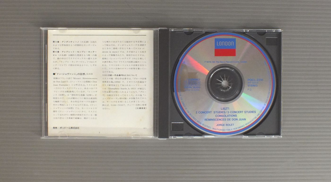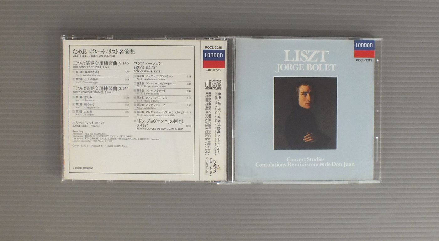 JORGE BOLETボレット/LISZT - CONCERT STUDIESリスト名演集 POCL2215 製造国:日本盤 / Media:CD外観:VG+盤の状態:EX 価格(税込):¥330 送料 7inch:定形外郵便 360円~LP:定形外郵便 660円~送料は、注文の最終画面で確認頂けます。 > > JORGE BOLET/LISZT - CONCERT STUDIES 外観 (VG+)特記事項:表側のカードにシミ有り。外観VG+の共通説明:ダメージやや有り。シミ、ヨゴレ、スレなど多少~やや多め。 盤の状態 (EX)特記事項:あまりスリキズはない感じ。盤EXの共通説明:盤面のスリキズが薄いものが少し~軽度 音に出そうなものは無いように見える(軽微なソフトティック音は除く)。 Tweet それぞれの画像をクリックすると、大きい写真が見られます こちらの商品もお勧めです 1,100円 ASHKENAZYアシュケナージ / CHOPIN - PIANO WORKSショパン - 夜想曲 990円 LANDOWSKA - KREISLER - RACHMANINOV etcランドフスカ - クライスラー - ラフマニノフ他 / FAMOUS INSTRUMENTALISTS OF THE EARLY 20th器楽奏者の巨匠たち 990円 ASHKENAZYアシュケナージ / BEETHOVEN - PIANO SONATA NO.1ベートーヴェン - ピアノソナタ第1番 990円 WEISSENBERGワイセンベルク / BACH - PARTITAS VOL.2バッハ - パルティータ第2番5番6番 990円 GARRICK OHLSSONギャリック・オールソン / CHOPIN - POLONAISESショパン - ポロネーズ 990円 KARL RICHTERカール・リヒター / BACH - TOCCATA AND FUGUEバッハ - トッカータとフーガ 990円 HOROVITZホロヴィッツ / BEETHOVEN - APPASSIONATA WALDSTEINベートーベン - ピアノ・ソナタ21番23番 990円 CZIFFRAシフラ / LISZT RECITALリスト リサイタル