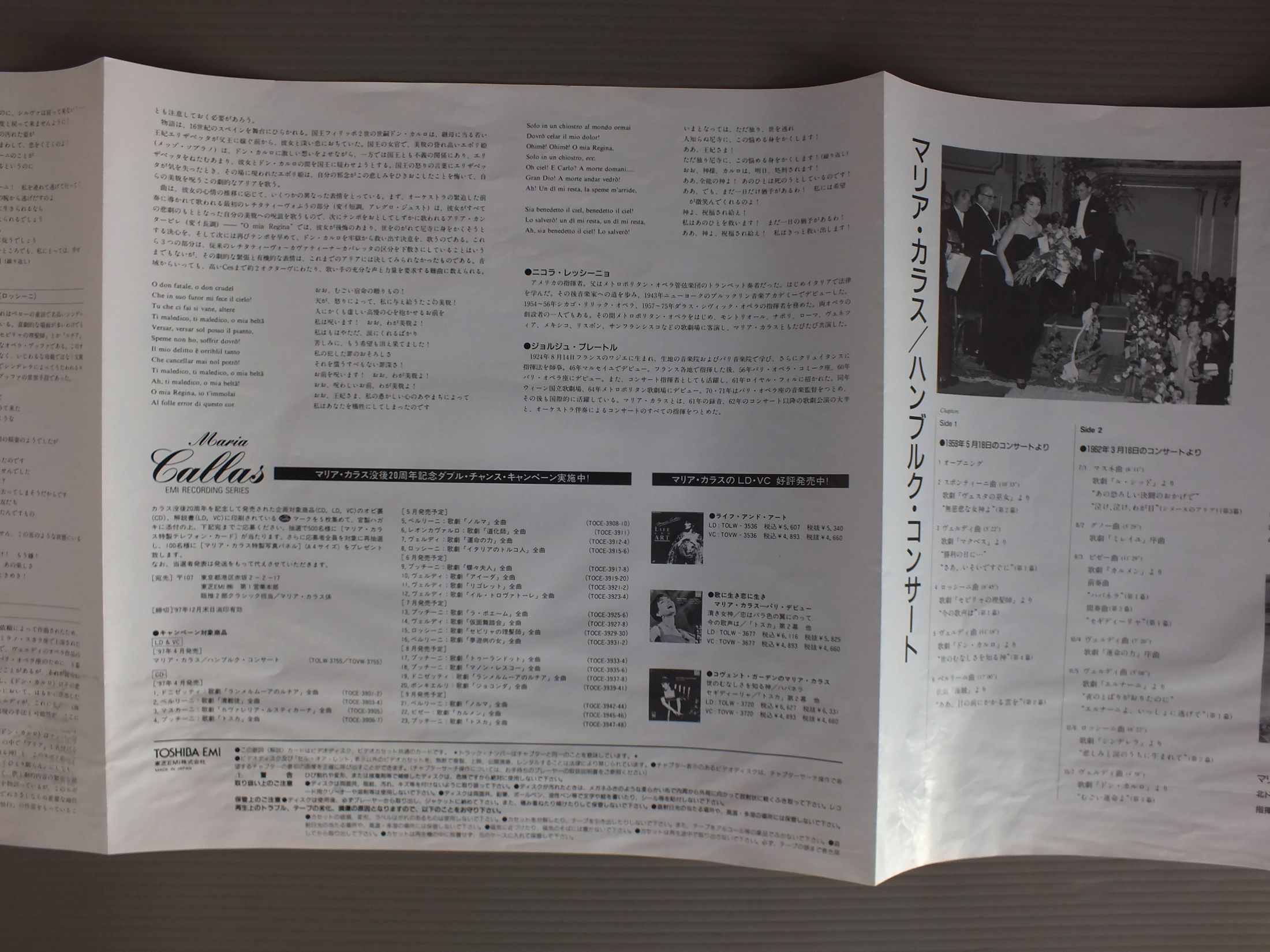 CALLASマリア・カラス/IN CONCERT HAMBURG 1952 & 62ハンブルグ・コンサート TOLW3755 製造国:日本盤 / Media:LD外観:EX盤の状態:EX- 価格(税込):¥770 送料 7inch:定形外郵便 360円~LP:定形外郵便 660円~送料は、注文の最終画面で確認頂けます。 > > CALLAS/IN CONCERT HAMBURG 1952 & 62 外観 (EX)特記事項:よごれ、スレ等少ないきれいな状態です。ジャケ表面にスレやスリキズ有り。カードにしみやヨレやはがれ等有り。外観EXの共通説明:ダメージが限定的。中古品としては保存状態がよい方。シミ、ヨゴレ、スレ 少し~軽度。 盤の状態 (EX-)特記事項:薄いスリキズ・スレ軽くある感じ。軽微なものが中心です。外周のゴムに劣化有り。盤EX-の共通説明:盤面のスリキズが多少有り。音に出そうなものは殆ど無いように見える~さほど気にならないぐらいの軽いプチ数カ所程度。 Tweet それぞれの画像をクリックすると、大きい写真が見られます こちらの商品もお勧めです 1,540円 PETER SCHREIER (TENOR) - WALTER OLBERTZ (PIANO) / SCHUBERT - SWAN SONGシューベルト - 白鳥の歌 1,320円 SCHWARZKOPF - LUDWIG - SYMPHONY ORCH. OF RADIO BERLINシュワルツコフ - ベルリン放送交響楽団 / WEBER - ABU HASSANウェーバー歌劇アブ・ハッサン 1,540円 HERMANN PREY - BERNHARD KLEEヘルマン・プレイ&ベルナルト・クレー / MOZART - LIEDERモーツアルト歌曲集 990円 MARIA CALLASマリア・カラス / BIZET - CARMEN HIGHLIGHTSビゼー - 歌劇カルメン ハイライト 990円 YELENA OBRAZTSOVA - KHAIKIN - BOLISHOI THEATRE ORCH.エレーナ・オブラスツォワ - ハイキン - ボリショイ歌劇場管弦楽団 / OPERA ARIASオペラ・アリア集 1,540円 KARAJAN - WIENER SINGVEREIN - VERLINER PHILHARMONIKERカラヤン - ウィーン楽友協会合唱団 - ベルリンフィル / BACH - MATTEHAUS PASSIONバッハ - マタイ受難曲 1,760円 FISCHER DIESKAU - GERALD MOOREフィッシャーディスカウ - ジェラルド・ムーア / SCHUBERT - WINTERREISEシューベルト - 冬の旅 1,540円 CHIHIRO BAMBA - MARCELLE DEDIEU VIDAL番場ちひろ - マルセル・ドデュー=ヴィダル / LE BEL CANTO EN ITALIE AU TEMPS DE STENDHAL