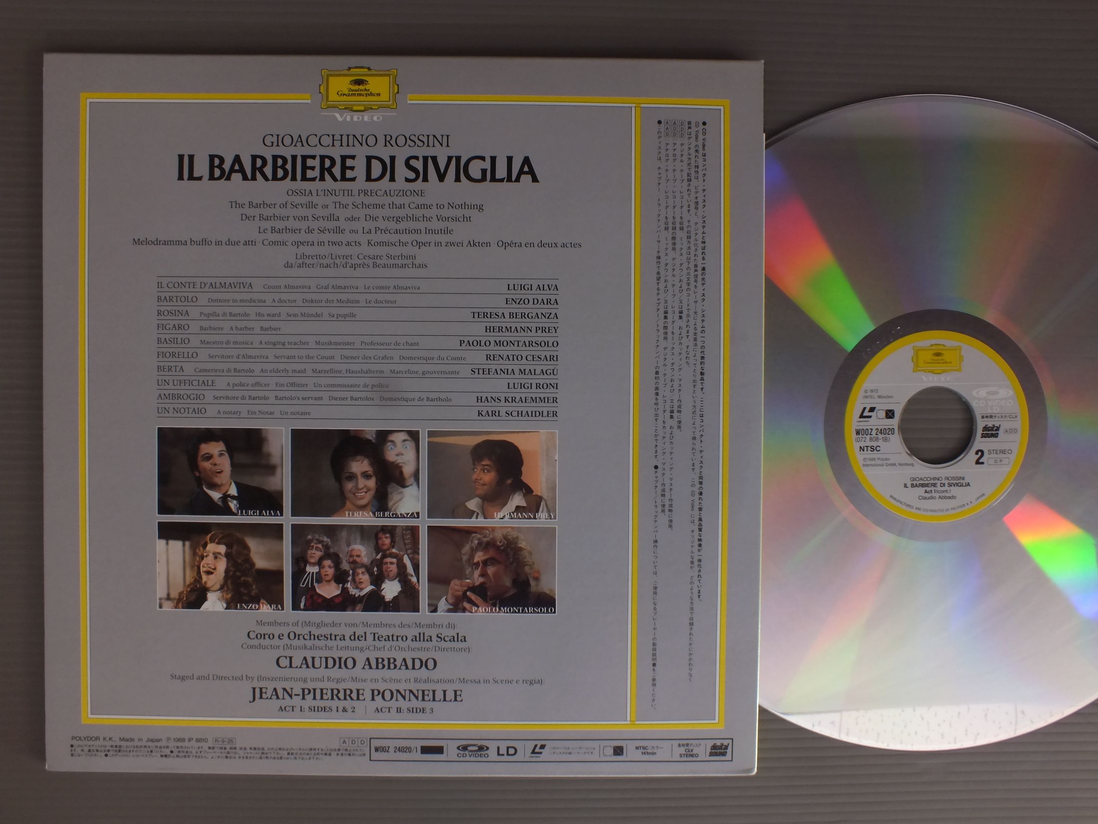 ABBADO - CORO ORCHESTRA DEL TEATRO ALLA SCALAアバド - スカラ座管弦楽団/ROSSINI - BARBIERE DI SIVIGILIAロッシーニ歌劇セビリァの理髪師 WOOZ24020-1 製造国:日本盤 / Media:LD外観:EX盤の状態:EX+ 価格(税込):¥1,320 送料 7inch:定形外郵便 360円~LP:定形外郵便 660円~送料は、注文の最終画面で確認頂けます。 > > ABBADO - CORO ORCHESTRA DEL TEATRO ALLA SCALA/ROSSINI - BARBIERE DI SIVIGILIA 外観 (EX)特記事項:よごれ、スレ等少ないきれいな状態です。外観EXの共通説明:ダメージが限定的。中古品としては保存状態がよい方。シミ、ヨゴレ、スレ 少し~軽度。 盤の状態 (EX+)特記事項:薄いスリキズ・スレ少し。一見してきれいな状態です。盤EX+の共通説明:盤面の極薄いスリキズ、スレ少し程度 音に出そうなものは無いように見える(極軽微なソフトティック音は除く)。 Tweet それぞれの画像をクリックすると、大きい写真が見られます こちらの商品もお勧めです 1,540円 JANET BATER - MENUHIN - BACH FESTIVAL ORCHESTRAジャネット・ベイカー - メニューイン - バッハ祝祭管弦楽団 / BACH - CANTATA NO.82バッハ・カンタータ第82番169番 1,320円 KUNZ - PAULIK - WIENNA STATE OPERA ORCHESTRA & CHORUSクンツ - パウリク - ウィーン国立歌劇場管弦楽団・合唱団 / ERICH KUNZ SINGS GERMAN UNIVERSITY SONGSドイツ学生の歌 990円 YELENA OBRAZTSOVA - KHAIKIN - BOLISHOI THEATRE ORCH.エレーナ・オブラスツォワ - ハイキン - ボリショイ歌劇場管弦楽団 / OPERA ARIASオペラ・アリア集 1,540円 DOMINGO ドミンゴ / VERDI ARIASヴィルディ オペラアリア集 1,540円 KARAJAN - WIENER SINGVEREIN - VERLINER PHILHARMONIKERカラヤン - ウィーン楽友協会合唱団 - ベルリンフィル / BACH - MATTEHAUS PASSIONバッハ - マタイ受難曲 1,540円 VISHNEVSKAYA - ROSTROPOVICHガリーナ・ヴィシネフスカヤ - ロストロポーヴィチ / LIEDER SONGS CHANTS 1,320円 BRUNO TURNER - ENSEMBLE PRO CANTIONE ANTIQUA LONDONブルーニ・ターナー - プロ・カンツォーネ・アンティカ / ORLANDO DI LASSO - REQUIEMオルランド・ディ・ラッソ - レクイエム 1,540円 FISCHER DIESKAU - ESCHENBACHフィッシャーディスカウ - エッシェンバッハ / SCHUMANN - LIEDERシューマン歌曲集