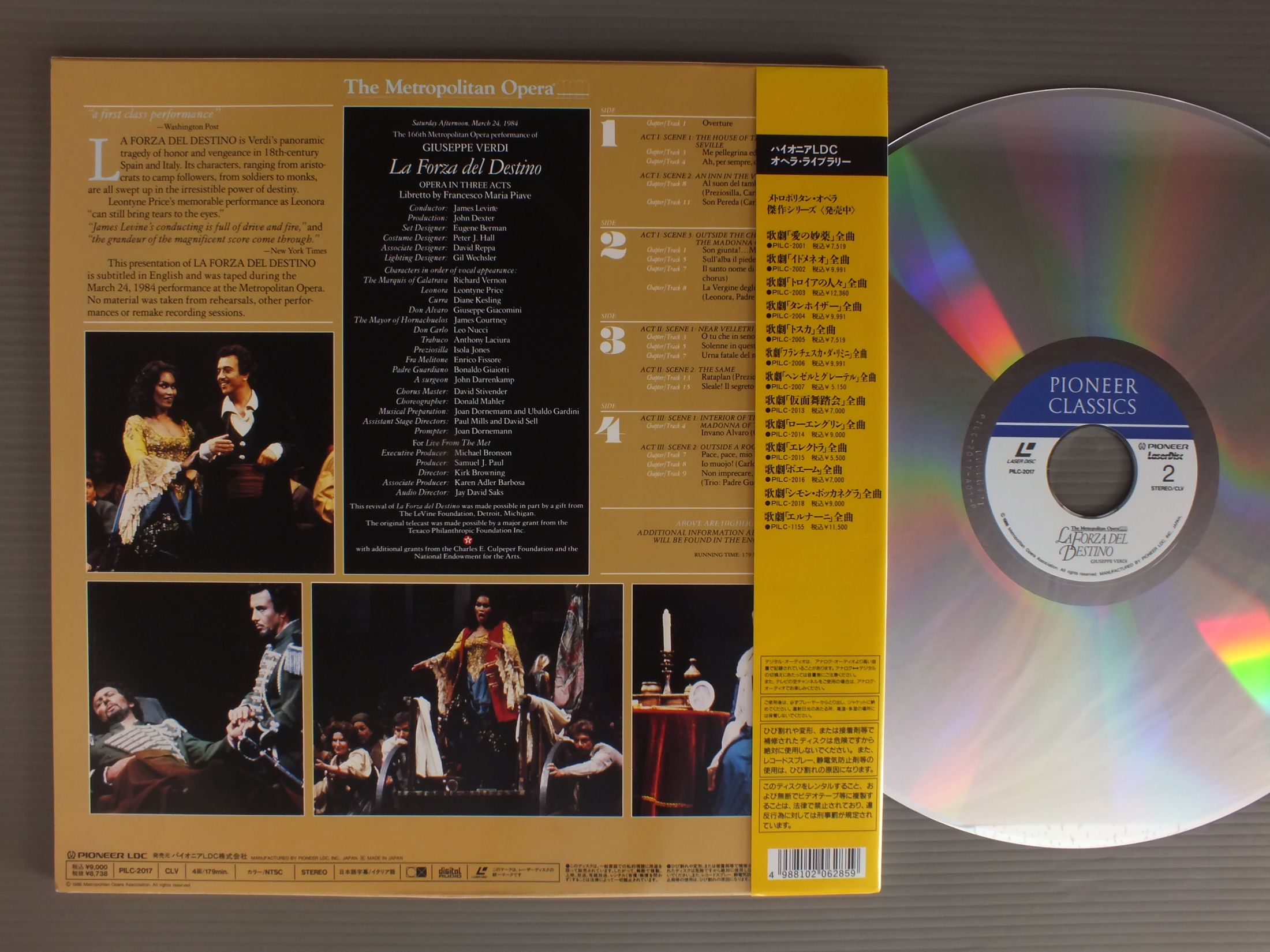 LEVINE - METROPOLOTAN CHORUS & ORCHESTRAレヴァイン - プライス - メトロポリタン歌劇場管弦楽団/VERDI - LA FORZA DEL DESTINOヴェルディ歌劇運命の力 (84年) PILC2017 製造国:日本盤 / Media:LD外観:EX+盤の状態:EX+帯:EX+ 価格(税込):¥1,320 送料 7inch:定形外郵便 360円~LP:定形外郵便 660円~送料は、注文の最終画面で確認頂けます。 > > LEVINE - METROPOLOTAN CHORUS & ORCHESTRA/VERDI - LA FORZA DEL DESTINO 外観 (EX+)特記事項:よごれ等あまり無いきれいな状態です。外観EX+の共通説明:中古としては美品、一見してきれいでダメージが軽微。シミ、ヨゴレ、スレ有っても僅か~少し。 盤の状態 (EX+)特記事項:薄いスリキズ・スレ少し。一見してきれいな状態です。盤EX+の共通説明:盤面の極薄いスリキズ、スレ少し程度 音に出そうなものは無いように見える(極軽微なソフトティック音は除く)。 帯の状態 (EX+):よごれ等あまり無いきれいな状態です。 Tweet それぞれの画像をクリックすると、大きい写真が見られます こちらの商品もお勧めです 1,540円 PETER SCHREIER (TENOR) - WALTER OLBERTZ (PIANO) / SCHUBERT - SWAN SONGシューベルト - 白鳥の歌 1,320円 SCHWARZKOPF - LUDWIG - SYMPHONY ORCH. OF RADIO BERLINシュワルツコフ - ベルリン放送交響楽団 / WEBER - ABU HASSANウェーバー歌劇アブ・ハッサン 1,540円 CHIHIRO BAMBA - MARCELLE DEDIEU VIDAL番場ちひろ - マルセル・ドデュー=ヴィダル / LE BEL CANTO EN ITALIE AU TEMPS DE STENDHAL 1,540円 DOMINGO ドミンゴ / VERDI ARIASヴィルディ オペラアリア集 1,320円 BRUNO TURNER - ENSEMBLE PRO CANTIONE ANTIQUA LONDONブルーニ・ターナー - プロ・カンツォーネ・アンティカ / ORLANDO DI LASSO - REQUIEMオルランド・ディ・ラッソ - レクイエム 1,650円 KARAJAN + CALLAS / LUCIA LAMMERMOOR SEPT22 1955 3LP BOX 2,090円 BOHM - WIENER PHILHARMONIKERボーム - ウィーン・フィル / MOZART - COSI FAN TUTTE 3LP BOXモーツアルト - コジ・ファン・トゥッテ 3枚組 990円 GERSHWINガーシュイン / PORGY & BESSS HISTORIC RECORDINGSポギーとベス 歴史的録音