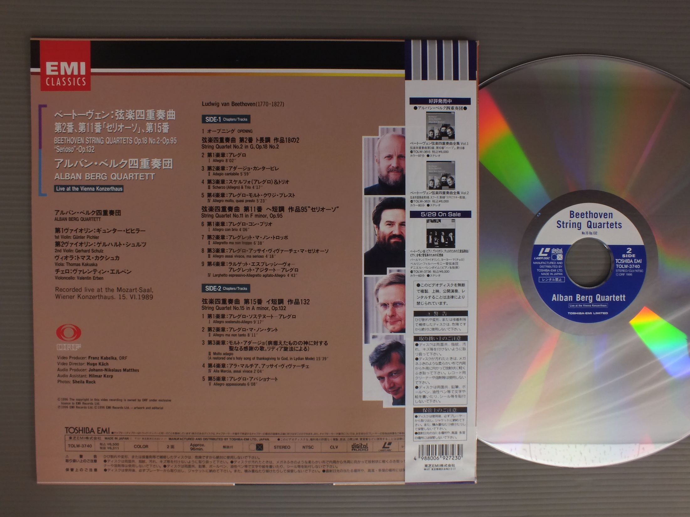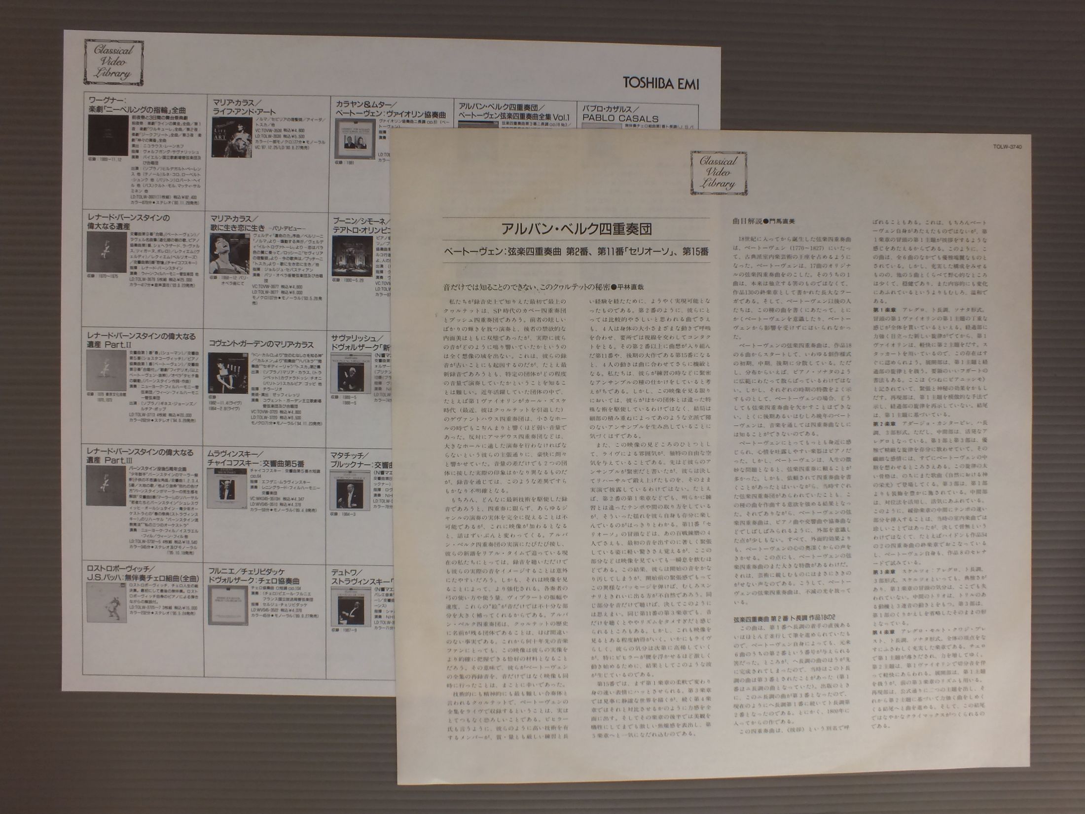 ALBAN BERG QUINTETTアルバン・ベルク四重奏団/BEETHOVEN - SQ NO2 & 11 & 15ベートーヴェン - 弦楽四重奏曲第2番11番15番 TOLW3740 製造国:日本盤 / Media:LD外観:EX+盤の状態:EX帯:EX+ 価格(税込):¥1,100 送料 7inch:定形外郵便 360円~LP:定形外郵便 660円~送料は、注文の最終画面で確認頂けます。 > > ALBAN BERG QUINTETT/BEETHOVEN - SQ NO2 & 11 & 15 外観 (EX+)特記事項:よごれ等あまり無いきれいな状態です。外観EX+の共通説明:中古としては美品、一見してきれいでダメージが軽微。シミ、ヨゴレ、スレ有っても僅か~少し。 盤の状態 (EX)特記事項:薄いスリキズ・スレ少しある感じ。外周部分のゴムに劣化有り。盤EXの共通説明:盤面のスリキズが薄いものが少し~軽度 音に出そうなものは無いように見える(軽微なソフトティック音は除く)。 帯の状態 (EX+):よごれ等あまり無いきれいな状態です。 Tweet それぞれの画像をクリックすると、大きい写真が見られます こちらの商品もお勧めです 990円 I MUSIEIイ・ムジチ合奏団 / MOZART - DIVERTOMENTO モーツァルト - ディヴェルティメント 1,540円 OTTO BUCHNER - EDGAR SHANN - RICHITER - MUNCHENER BACH ORKESTオットー・ブフナー - エドガー・シャン - カール・リヒター - ミュンヘン・バッハ管弦楽団 / BACH - DUBBELCONCERT VOOR VIOOL EN HOBOバッハ - ヴァイオリンとオーボのための二重協奏曲 1,540円 HELMUTH RILLING - BACH ENSEMBLEヘルムート・リリング - バッハ・アンサンブル / BACH KANTATE BWV174 & 117バッハ・カンタータ BWV174 & 117 990円 BARENBOIM - ENGLISH CHAMBER ORCHESTRAバレンボエム - イギリス室内管弦楽団 / SCHONBERG - VERKLARTE NACHETシェーンベルク - 浄夜 1,540円 VICTOR DESARZENS - LAUSANNE CHEMBER ORCHESTRAデザルツェンス - ローザンヌ室内管弦楽団 / WEBER - SYMPHONY NO1ウエーバー交響曲第1番 1,540円 IRWIN GAGE - THOMAS RIEBLアーウィン・ゲージ - トーマス・リープル / BRAHMS - BRIGITTE FASSBAENDERブラームス - ブリギッテ・ファスベンダー 990円 VIENER STREICHQUARTETTウィーン弦楽四重奏 / HAYDN - STRING QUARTET NO.77 `EMPEROR`ハイドン - 弦楽四重奏曲第77番 皇帝 2,420円 AMADEUS QUARTETアマデウス四重奏団 / HAYDN - KAISERQUARTETTハイドン弦楽四重奏曲第77番
