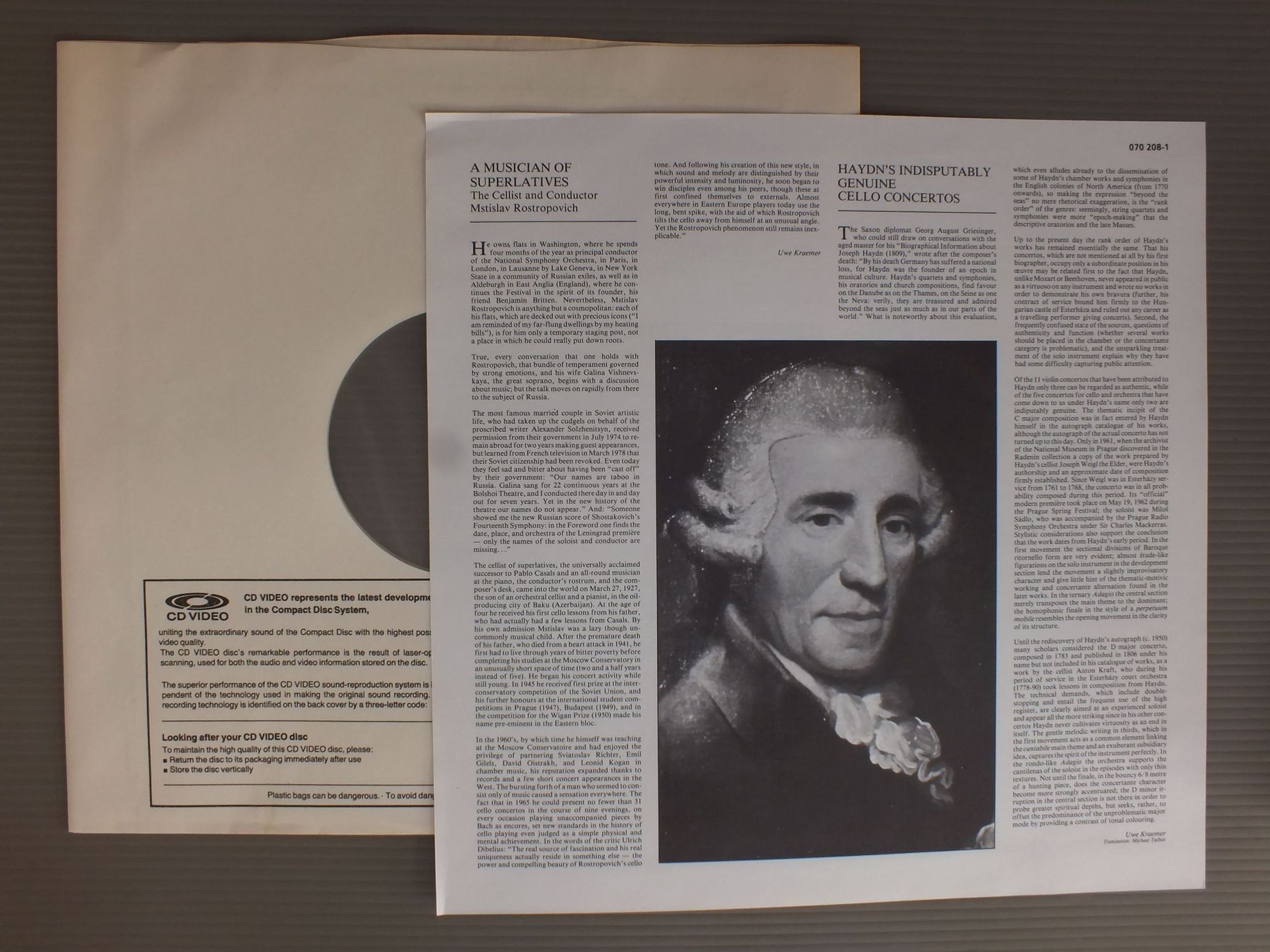 ROSTROPOVICHロストロポーヴィチ/HAYDN - CELLO CONC. NO1 & 2 070 208-1 製造国:米国盤 / Media:LD外観:EX+盤の状態:EX 価格(税込):¥1,155 送料 7inch:定形外郵便 360円~LP:定形外郵便 660円~送料は、注文の最終画面で確認頂けます。 > > ROSTROPOVICH/HAYDN - CELLO CONC. NO1 & 2 外観 (EX+)特記事項:よごれ等あまり無いきれいな状態です。外観EX+の共通説明:中古としては美品、一見してきれいでダメージが軽微。シミ、ヨゴレ、スレ有っても僅か~少し。 盤の状態 (EX)特記事項:薄いスリキズ・スレ軽くある感じ。軽微なものが中心です。盤EXの共通説明:盤面のスリキズが薄いものが少し~軽度 音に出そうなものは無いように見える(軽微なソフトティック音は除く)。 Tweet それぞれの画像をクリックすると、大きい写真が見られます こちらの商品もお勧めです 1,650円 KRAJAN + PHILHARMONIA ORCHESTRA / STEREO SHOWPIECIES FOR ORCHESTRA 3 LP BOX SET 1,540円 ENTREMONT - ORMANDY - PHILADELPHIA ORCHESTRAアントルモン - オーマンディ - フィラデルフィア交響楽団 / LISZT - CONCERTO NO1リスト - ピアノ協奏曲第1番 990円 REINER - CHICAGO SYMPHONY ORCHESTRAライナー - シカゴ交響楽団 / BARTOK - MUSIC FOR STRINGS PERCUSSION AND CELESTAバルトーク - 弦楽器と打楽器とチェレスタのための音楽 990円 PREVIN - LONDON SYMPHONY ORCHESTRAプレヴィン - ロンドン交響楽団 / BEETHOVEN - SYMPHONY NO5ベートーヴェン - 交響曲第5番 1,540円 BOHM - BERLINER PHILHARMONIKERベーム - ベルリン・フィル / R.STRAUSS - TILL EULENSPIEGELリヒャルト・シュトラウス - ティル・オイレンシュピーゲルの愉快ないたずら 2,750円 FURTWANGLER / WARGNER 5枚組 990円 TALICH - CZECH PHILHARMONIC ORCH.ターリッヒ - チェコ・フィルハーモニー管弦楽団 / DVORAK - STABAT MATERドヴォルザーク - スターバト・マーテル 1,540円 ABBADO - VIENER PHILHARMONIKERアバド - ウィーン・フィル / BRAHMS - HANGARIAN DANCESブラームス - ハンガリア舞曲