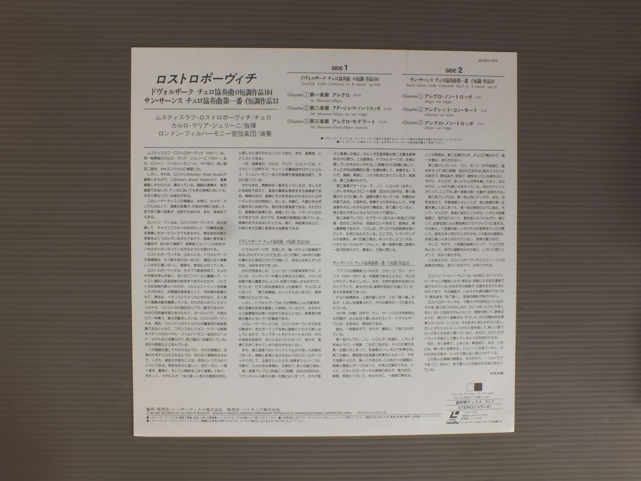 ROSTROPOVICHロストロポーヴィチ/DVORAK - CELLO CONCERTTOドヴォルザーク - チェロ協奏曲 MC085-25PA 製造国:日本盤 / Media:LD外観:EX+盤の状態:EX 価格(税込):¥1,155 送料 7inch:定形外郵便 360円~LP:定形外郵便 660円~送料は、注文の最終画面で確認頂けます。 > > ROSTROPOVICH/DVORAK - CELLO CONCERTTO 外観 (EX+)特記事項:よごれ等あまり無いきれいな状態です。外観EX+の共通説明:中古としては美品、一見してきれいでダメージが軽微。シミ、ヨゴレ、スレ有っても僅か~少し。 盤の状態 (EX)特記事項:多少薄いスリキズ・スレ軽くある感じ。殆どが軽微なものの様子です。盤EXの共通説明:盤面のスリキズが薄いものが少し~軽度 音に出そうなものは無いように見える(軽微なソフトティック音は除く)。 Tweet それぞれの画像をクリックすると、大きい写真が見られます こちらの商品もお勧めです 990円 TALICH - CZECH PHILHARMONIC ORCH.ターリッヒ - チェコ・フィルハーモニー管弦楽団 / DVORAK - STABAT MATERドヴォルザーク - スターバト・マーテル 990円 REINER - CHICAGO SYMPHONY ORCHESTRAライナー - シカゴ交響楽団 / BARTOK - MUSIC FOR STRINGS PERCUSSION AND CELESTAバルトーク - 弦楽器と打楽器とチェレスタのための音楽 990円 BRENDEL - MARRTNER - ACADEMY OF ST.MARTIN IN THE FIELDSブレンデル - マリナー - アカデミー室内管弦楽団 / MOZRT - PIANO CONCERTOS NO19 NO23モーツァルト - ピアノ協奏曲第19番23番 1,540円 BOHM - BERLINER PHILHARMONIKERベーム - ベルリン・フィル / SCHUBERT - SYMPHONIEN NR.5シューベルト交響曲第5番 1,760円 RICHTER - KARAJAN - WIENNA PHILHARMONICリヒター - カラヤン - ウィーン・フィル / TCHAIKOVSKY - CONCERT NO1 FOR PIANO AND ORCHESTRAチャイコフスキー - ピアノとオーケストラのための協奏曲第1番 990円 SCHURICHT - VIENNA PHILHARMONIC ORCHESTRAシューリヒト - ウィーン・フィルハーモニー管弦楽団 / BRUCKNER - SYMPHONY NO9ブルックナー - 交響曲第9番 1,540円 ABBADO - VIENER PHILHARMONIKERアバド - ウィーン・フィル / BRAHMS - HANGARIAN DANCESブラームス - ハンガリア舞曲 1,760円 FLAMIG - DRESDNER PHILHARMONIEフレーミッヒ - ドレスデン・フィルハーモニー / BACH - MESSEN バッハ - ミサ曲