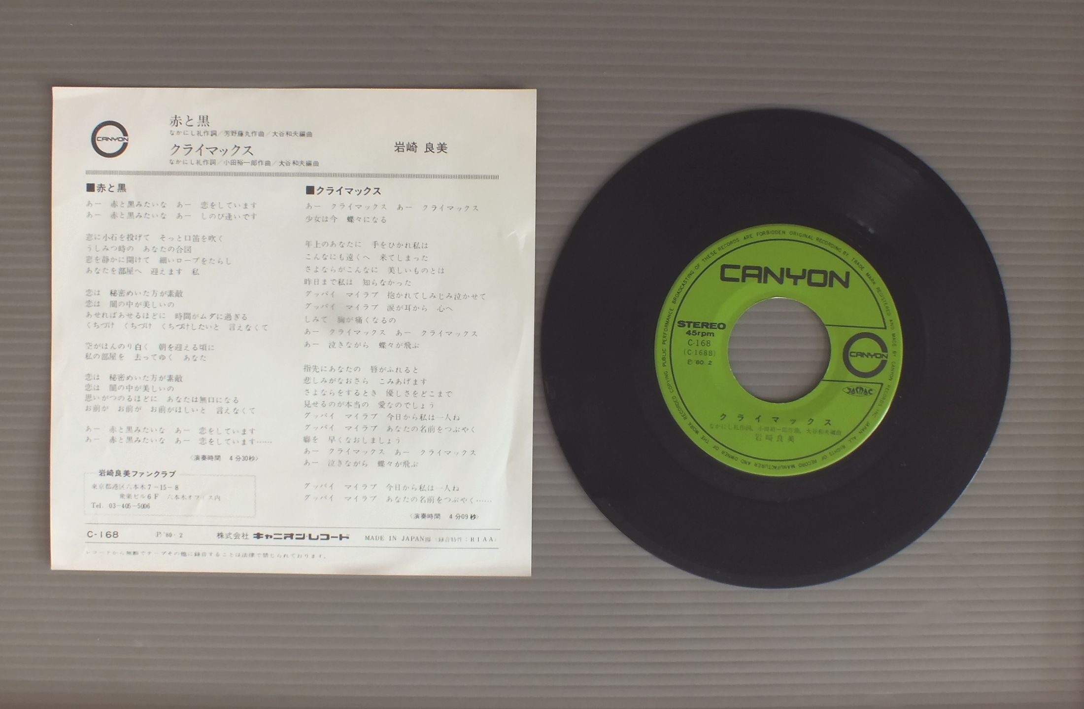 YOSHIMI IWASAKI岩崎良美/RED AND BLACK赤と黒 C168 製造国:日本盤 / Media:7inch外観:EX盤の状態:EX 価格(税込):¥440 送料 7inch:定形外郵便 360円~LP:定形外郵便 660円~送料は、注文の最終画面で確認頂けます。 > > YOSHIMI IWASAKI/RED AND BLACK 外観 (EX)特記事項:よごれ、スレ等少ないきれいな状態です。ヨレ有り。外観EXの共通説明:ダメージが限定的。中古品としては保存状態がよい方。シミ、ヨゴレ、スレ 少し~軽度。 盤の状態 (EX)特記事項:多少薄いスリキズ・スレ軽くある感じ。殆どが軽微なものの様子です。盤EXの共通説明:盤面のスリキズが薄いものが少し~軽度 音に出そうなものは無いように見える(軽微なソフトティック音は除く)。 Tweet それぞれの画像をクリックすると、大きい写真が見られます こちらの商品もお勧めです 770円 ERI NITTA新田恵利 / ERI 1,210円 USHIRO-YUBI SASAREGUMIうしろゆびさされ組 / 1st LP ( FUWAFURA )ふ・わ・ふ・ら 770円 SHOKO SAWADA沢田聖子 / YUMENO KATACHI夢のかたち 770円 NAOKO KAWAI河合奈保子 / STARDUST GARDEN千年庭園 770円 YUKO ISHIKAWA石川優子 / REN`AI KODOKU-JIN恋愛孤独人 1,320円 YOU HAYAMI早見優 / COLORFUL BOX 990円 YOU HAYAMI早見優 / RECESSリーセス 550円 SONOKO KAWAI河合その子 / SONOKOその子