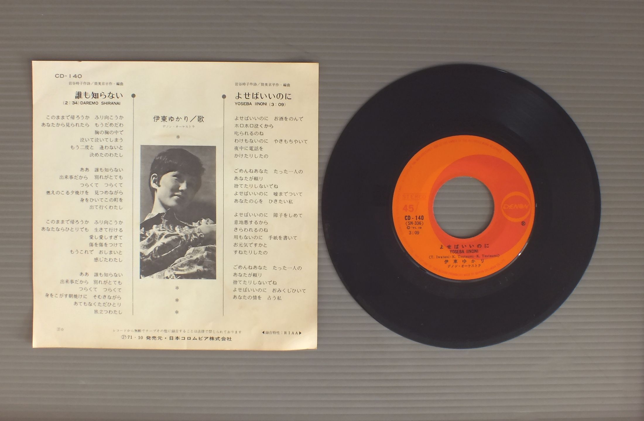 YUKARI ITOH伊東ゆかり/DAREMO SHIRANAI誰も知らない CD140 製造国:日本盤 / Media:7inch外観:EX盤の状態:EX 価格(税込):¥550 送料 7inch:定形外郵便 360円~LP:定形外郵便 660円~送料は、注文の最終画面で確認頂けます。 > > YUKARI ITOH/DAREMO SHIRANAI 外観 (EX)特記事項:裏ジャケにシミ有り。ヨレ有り。外観EXの共通説明:ダメージが限定的。中古品としては保存状態がよい方。シミ、ヨゴレ、スレ 少し~軽度。 盤の状態 (EX)特記事項:薄いスリキズ・スレ軽くある感じ。長めのスレキズもありますが、音には影響ない感じの薄いスレです。盤EXの共通説明:盤面のスリキズが薄いものが少し~軽度 音に出そうなものは無いように見える(軽微なソフトティック音は除く)。 Tweet それぞれの画像をクリックすると、大きい写真が見られます こちらの商品もお勧めです 770円 YUMING松任谷由実 / RINCARNATIONリ・インカーネイション 1,210円 YUKO OTOMO大友裕子 / KIZUNA絆(きずな) 1,320円 SHOGO HAMADA & THE FUSE浜田省吾 / CLUB SURFBOUND 990円 YUKO TOMITAとみたゆう子 / DEUXDEUX (2nd ALBUM) 1,210円 EIKICHI YAZAWA矢沢永吉 / RISING SUNライジング・サン 880円 TAKAKO SHIRAI白井貴子 / HEART ATTACKER 770円 TAKURO YOSHIDA吉田拓郎 / ASUNI MUKATTE HASHIRE明日に向って走れ 770円 KAKIZAKI OPEN THE ROAD神埼・オン・ザ・ロード / OPEN MY ROAD