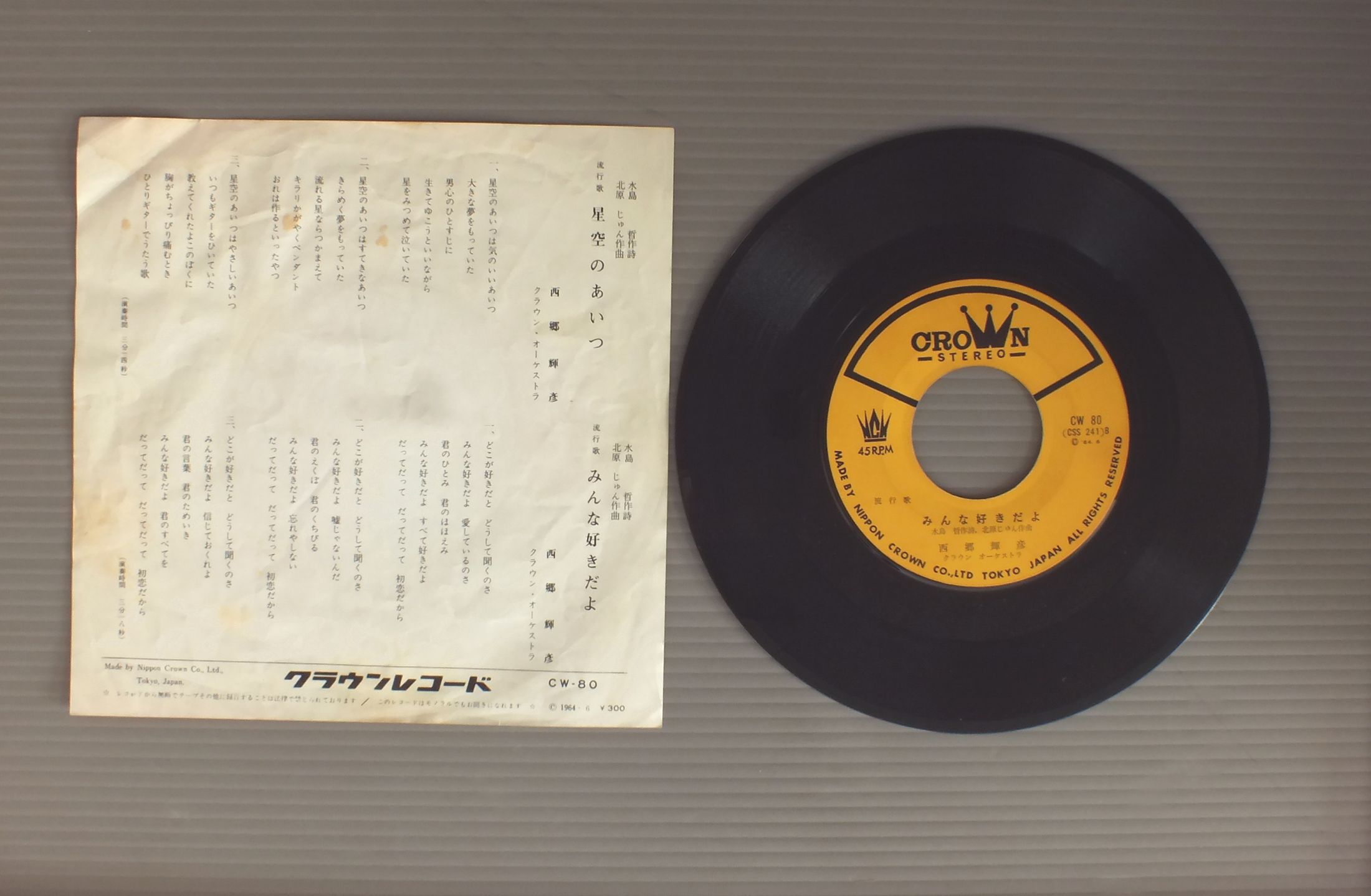 TERUHIKO SAIGO西郷輝彦/HOSHIZORA NO AITSU星空のあいつ CW80 製造国:日本盤 / Media:7inch外観:VG+盤の状態:VG+ 価格(税込):¥550 送料 7inch:定形外郵便 360円~LP:定形外郵便 660円~送料は、注文の最終画面で確認頂けます。 > > TERUHIKO SAIGO/HOSHIZORA NO AITSU 外観 (VG+)特記事項:裏ジャケにシミ有り。ヨレ有り。外観VG+の共通説明:ダメージやや有り。シミ、ヨゴレ、スレなど多少~やや多め。 盤の状態 (VG+)特記事項:薄いスリキズ・細かいスレやや有り。周期的にプチ出そうな小キズ、線キズも有ります。少し聴いてみましたが、音自体はしっかりクリアーに鳴っているようでした。盤VG+の共通説明:盤面にスリキズが多少~やや有り、音に出そうなものも多少ある。 Tweet それぞれの画像をクリックすると、大きい写真が見られます こちらの商品もお勧めです 770円 CANDIESキャンディーズ / CANDIESキャンディーズ 990円 GO NAGABUCHI長渕剛 / GYAKURYU逆流 770円 GO OHGAMI大神剛 / SLEEPING THE TOWN 990円 YOSHIMI HAMADA浜田良美 / SHUNJYU-NO SHOW春秋の章 1,320円 TAKASHI SATO佐藤隆 / NUIT DU SAMEDI ET MATIN DU DIMANCHE土曜の夜と日曜の朝 1,540円 AKIO DOBASHI土橋安騎夫 / CHRONICLESクロニクルズ 1,210円 SNAKEMAN SHOWスネークマン・ショー / 急いで口で吸え! 1,210円 EIKICHI YAZAWA矢沢永吉 / RISING SUNライジング・サン