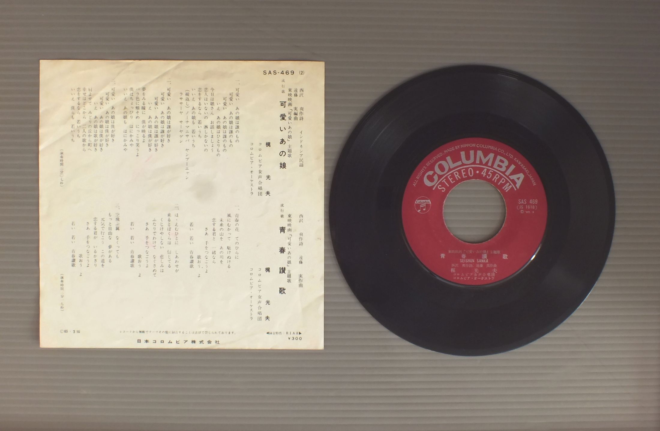 MITUO KAJI梶光夫/KAWAII ANOKO可愛いあの娘 SAS469 製造国:日本盤 / Media:7inch外観:EX-盤の状態:VG+ 価格(税込):¥770 送料 7inch:定形外郵便 360円~LP:定形外郵便 660円~送料は、注文の最終画面で確認頂けます。 > > MITUO KAJI/KAWAII ANOKO 外観 (EX-)特記事項:ジャケ表面にシミやよごれ少し有り。ヨレ有り。外観EX-の共通説明:ダメージ軽度~多少。 中古品としては普通の状態。シミ、ヨゴレ、スレなど軽く~多少。 盤の状態 (VG+)特記事項:薄いスリキズ・細かいスレやや有り。周期的にプチ出そうな小キズ、線キズも有ります。少し聴いてみましたが、音自体はしっかりクリアーに鳴っているようでした。盤VG+の共通説明:盤面にスリキズが多少~やや有り、音に出そうなものも多少ある。 Tweet それぞれの画像をクリックすると、大きい写真が見られます こちらの商品もお勧めです 550円 MIKI ASAKURA麻倉未稀 / ROMANCEロマンス 770円 TAKURO YOSHIDA吉田拓郎 / ASUNI MUKATTE HASHIRE明日に向って走れ 1,320円 TULIPチューリップ / LIVE THE 1000thライブ THE 1000th 770円 YUMI MATSUTOYA松任谷由実 / DA・DI・DA 1,320円 SHOGO HAMADA浜田省吾 / SAND CASTLE 770円 CANDIESキャンディーズ / CANDY LABELキャンディ・レーベル 770円 GO OHGAMI大神剛 / SLEEPING THE TOWN 660円 MASAMICHI SUGI杉真理 / SYMPHONY #10シンフォニー10