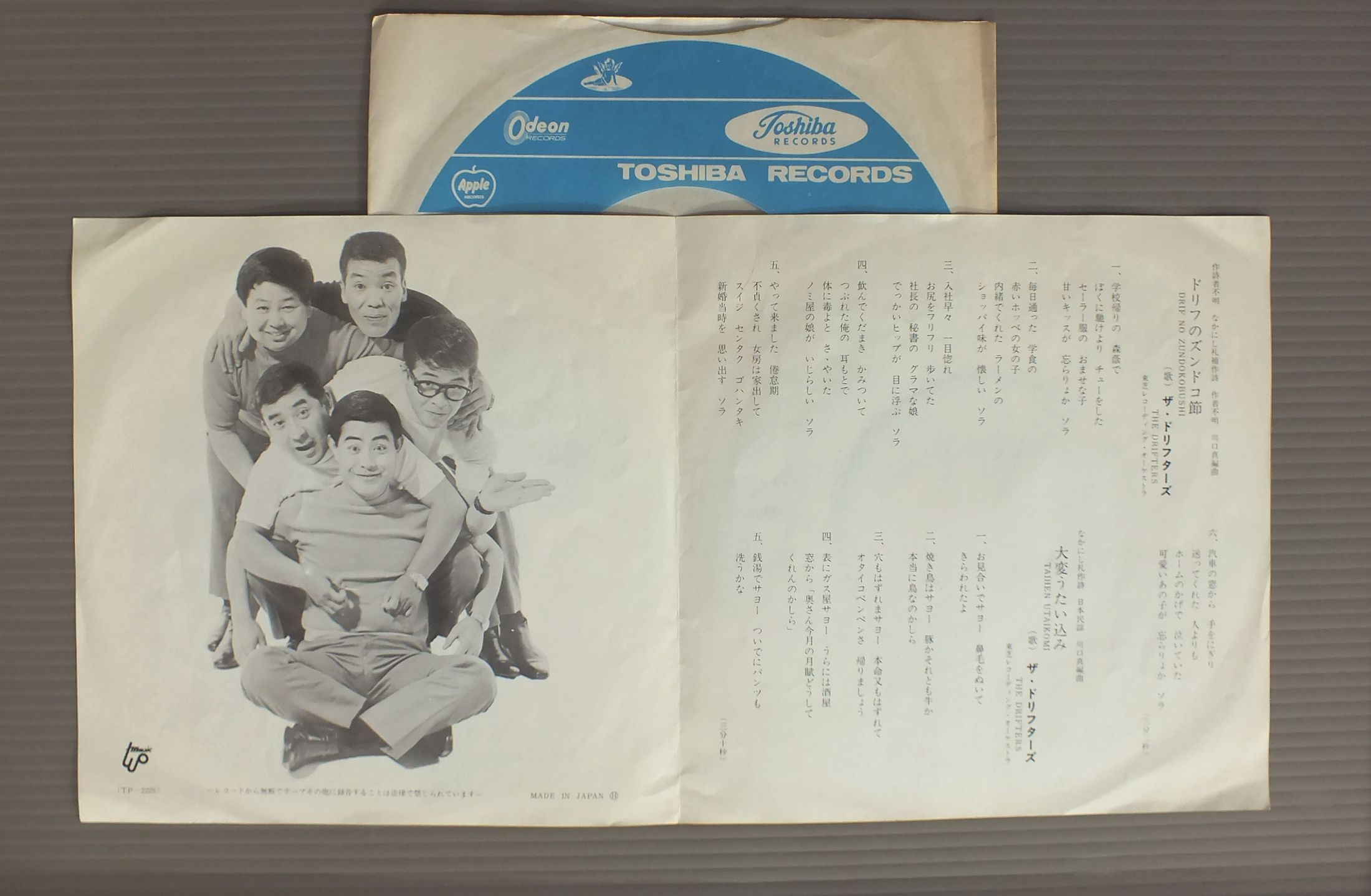 DRIFFTERSドリフターズ/ZUNDOKO BUSHIドリフのドンドコ節 TP2226 製造国:日本盤 / Media:7inch外観:EX盤の状態:EX- 価格(税込):¥440 送料 7inch:定形外郵便 360円~LP:定形外郵便 660円~送料は、注文の最終画面で確認頂けます。 > > DRIFFTERS/ZUNDOKO BUSHI 外観 (EX)特記事項:ジャケ表面にシミやよごれ少し有り。ヨレ有り。外観EXの共通説明:ダメージが限定的。中古品としては保存状態がよい方。シミ、ヨゴレ、スレ 少し~軽度。 盤の状態 (EX-)特記事項:薄いスリキズ・細かい表面スレ多少ある感じ。全体的には殆どが軽微なものの様子です。盤EX-の共通説明:盤面のスリキズが多少有り。音に出そうなものは殆ど無いように見える~さほど気にならないぐらいの軽いプチ数カ所程度。 Tweet それぞれの画像をクリックすると、大きい写真が見られます こちらの商品もお勧めです 1,320円 TULIPチューリップ / LIVE THE 1000thライブ THE 1000th 770円 IZUMI YUKIMURA雪村いづみ / I`M GETTING MY ACT TOGETHER & TAKING IT ON ROADミュージカル`旅立て女たち` 990円 HISAO KUROSAWA-COLLEGE POPS SINGERS etc黒沢久雄 フォーククルセダーズ ザリガニーズ 他 / JAPANESE FOLK SONG ENCYCLOPEDIA日本フォーク大百科事典 770円 LAYLAレイラ / SEISHUN NO KISEKI青春の奇跡 770円 ALL NIGHTERSオールナイターズ / 2nd ALBUMKIRAっとジェネレーション 990円 TAOタオ / FAR EAST 1,980円 SALON MUSICサロン・ミュージック / MY GIRL FRIDAY 1,320円 SHOGO HAMADA & THE FUSE浜田省吾 / CLUB SURFBOUND
