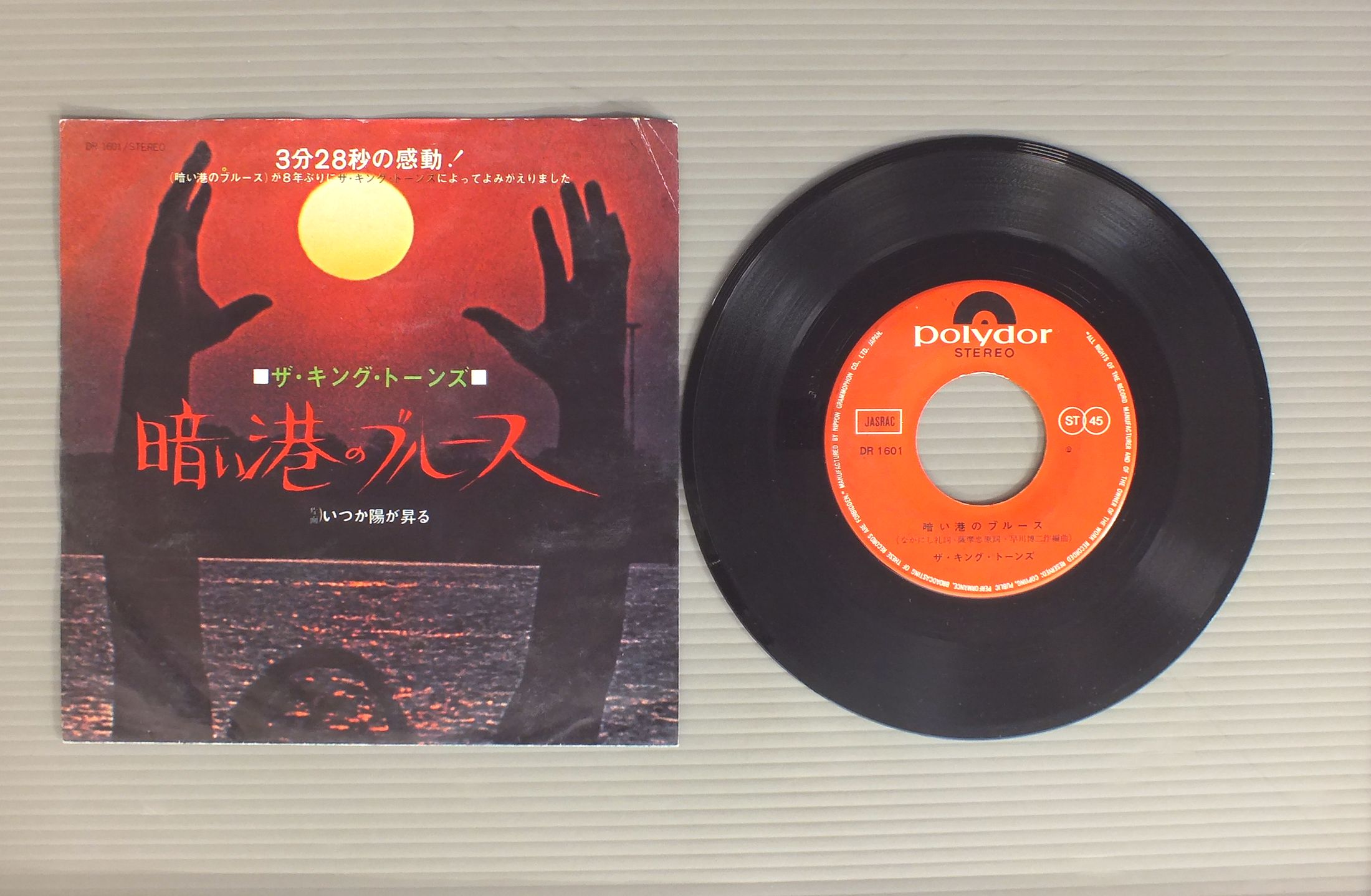 KING TONESキングトーンズ/KURAI MINATO NO BLUES暗い港のブルース DR1601 製造国:日本盤 / Media:7inch外観:VG+盤の状態:EX- 価格(税込):¥330 送料 7inch:定形外郵便 360円~LP:定形外郵便 660円~送料は、注文の最終画面で確認頂けます。 > > KING TONES/KURAI MINATO NO BLUES 外観 (VG+)特記事項:見開きも含めてジャケ表面にシミやよごれ多め。ヨレ有り。外観VG+の共通説明:ダメージやや有り。シミ、ヨゴレ、スレなど多少~やや多め。 盤の状態 (EX-)特記事項:薄いスリキズ・細かい表面スレ多少ある感じ。全体的には殆どが軽微なものの様子です。盤EX-の共通説明:盤面のスリキズが多少有り。音に出そうなものは殆ど無いように見える~さほど気にならないぐらいの軽いプチ数カ所程度。 Tweet それぞれの画像をクリックすると、大きい写真が見られます こちらの商品もお勧めです 1,320円 YUMI ARAI荒井由実 / YUMING BRAND PART3ユーミン・ブラインド・パート3 880円 TAKAKO SHIRAI白井貴子 / HEART ATTACKER 770円 YOSUI INOUE井上陽水 / 9.5CARATS9.5カラット 550円 MIKI ASAKURA麻倉未稀 / HERO & HEROINEHERO & HEROINE 770円 MANABU MIYAHARA宮原学 / READY STEADY GO 770円 YASUHIRO ABE安部恭弘 / TUNE BOX THE SUMMER 1968チューン・ボックス 770円 KENJI SAWADA沢田研二 / OMOIKKIRI KIZA NA JINSEI思いきり気障な人生 990円 YOSHIMI IWASAKI岩崎良美 / KOKORO NO ATELIER心のアトリエ