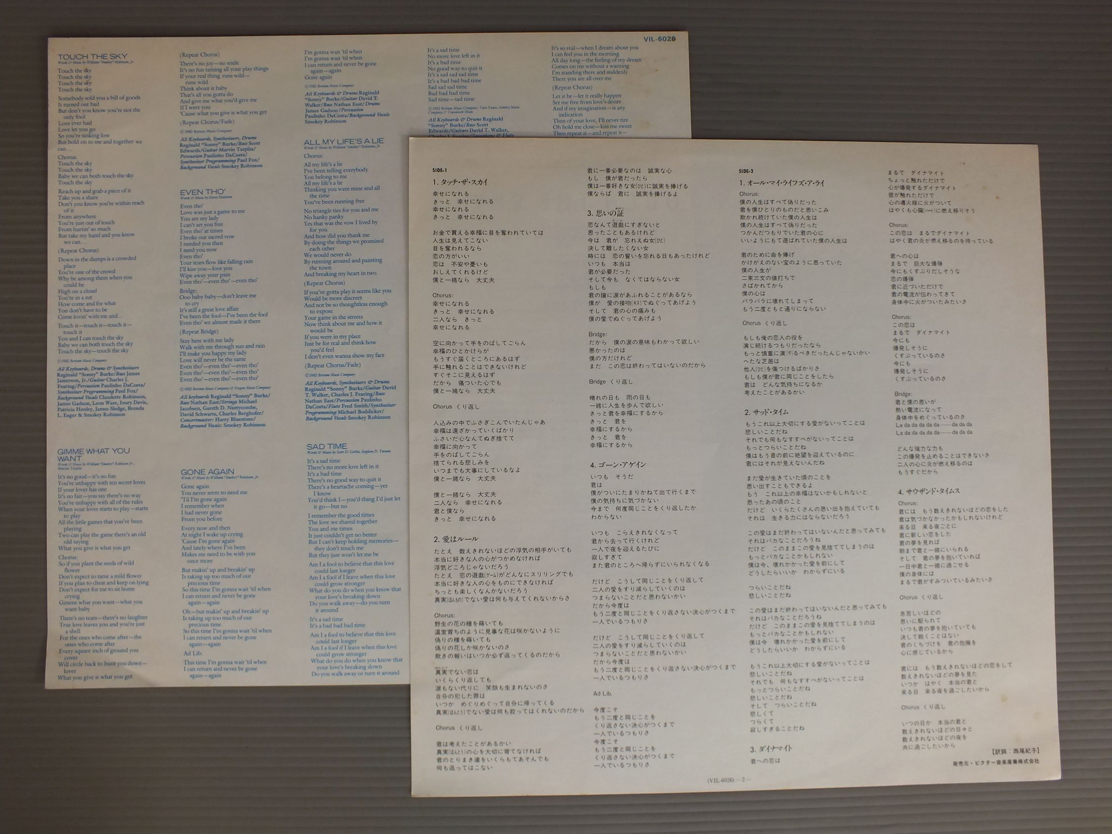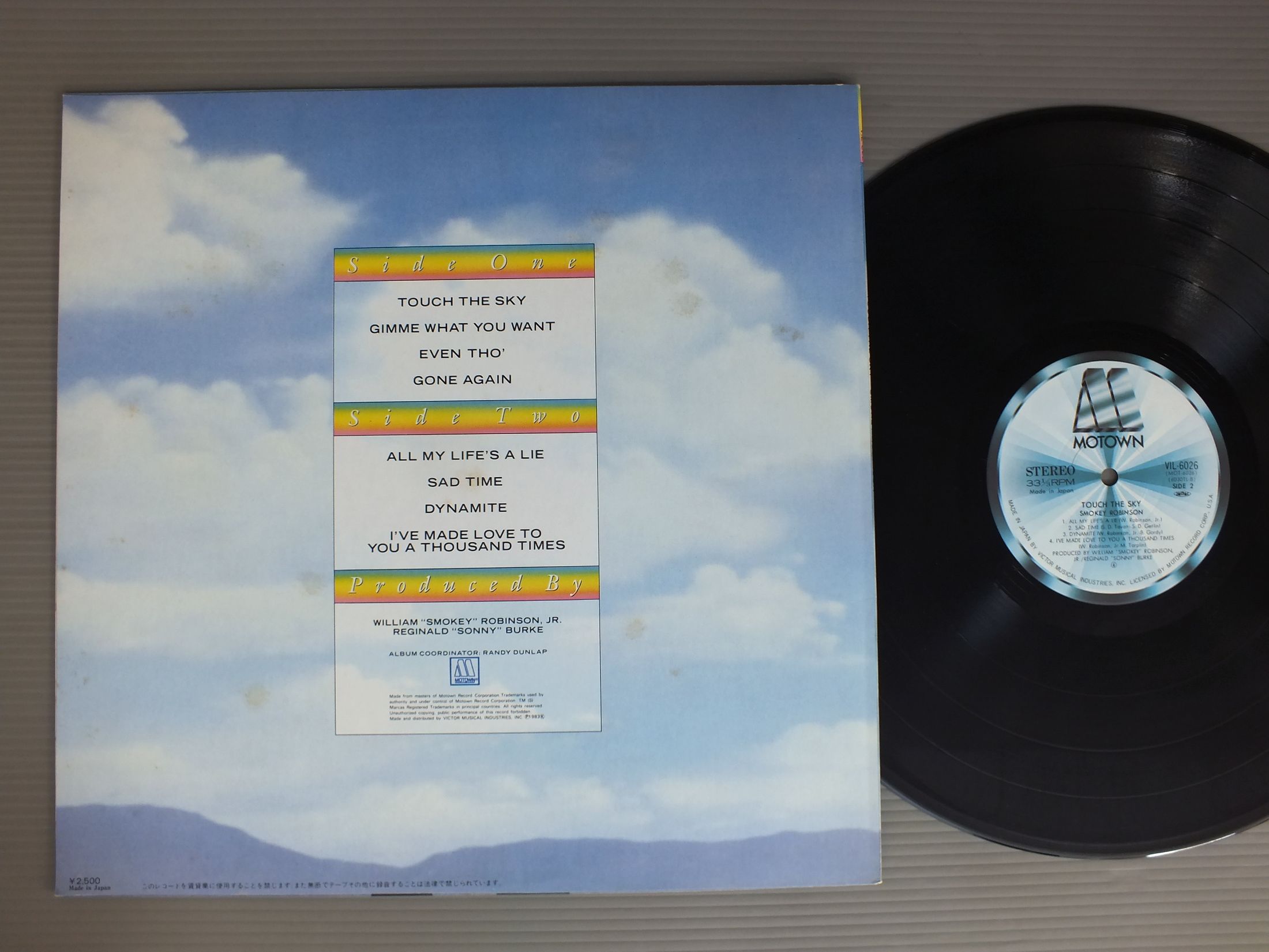 SMOKEY ROBINSONスモーキー・ロビンソン/TOUCH THE SKYタッチ・ザ・スカイ VIL6026 製造国:日本盤 / Media:LP外観:EX-盤の状態:EX 価格(税込):¥880 送料 7inch:定形外郵便 360円~LP:定形外郵便 660円~送料は、注文の最終画面で確認頂けます。 > > SMOKEY ROBINSON/TOUCH THE SKY 外観 (EX-)特記事項:ジャケ表面にシミやよごれ多少有り。外観EX-の共通説明:ダメージ軽度~多少。 中古品としては普通の状態。シミ、ヨゴレ、スレなど軽く~多少。 盤の状態 (EX)特記事項:多少薄いスリキズ・スレ軽くある感じ。殆どが軽微なものの様子です。盤EXの共通説明:盤面のスリキズが薄いものが少し~軽度 音に出そうなものは無いように見える(軽微なソフトティック音は除く)。 Tweet それぞれの画像をクリックすると、大きい写真が見られます こちらの商品もお勧めです 1,210円 VAN MCCOYヴァン・マッコイ / RHYTHMS OF WORLDリズム・オブ・ザ・ワールド 880円 DIANA ROSSダイアナ・ロス / WHY DO FOOLS FALL IN LOVEファースト・レディ 恋はくせもの 1,650円 OHIO PLAYERS / BACK 770円 MIRACLESミラクルズ / LOVE CRAZYラブ・クレイジー 660円 WHISPERSウィスパーズ / SO GOODソー・グッド 1,210円 STEVIE WONDERスティービー・ワンダー / IN SQUARE CIRCLEイン・スクエアー・サークル 1,210円 SMOKEY ROBINSONスモーキー・ロビンソン / SMOKE SIGNALSスモーク・シグナルズ 1,210円 TEMPTATIONSテンプテーションズ / BACK TO BASICSバック・トゥー・ベイシックス