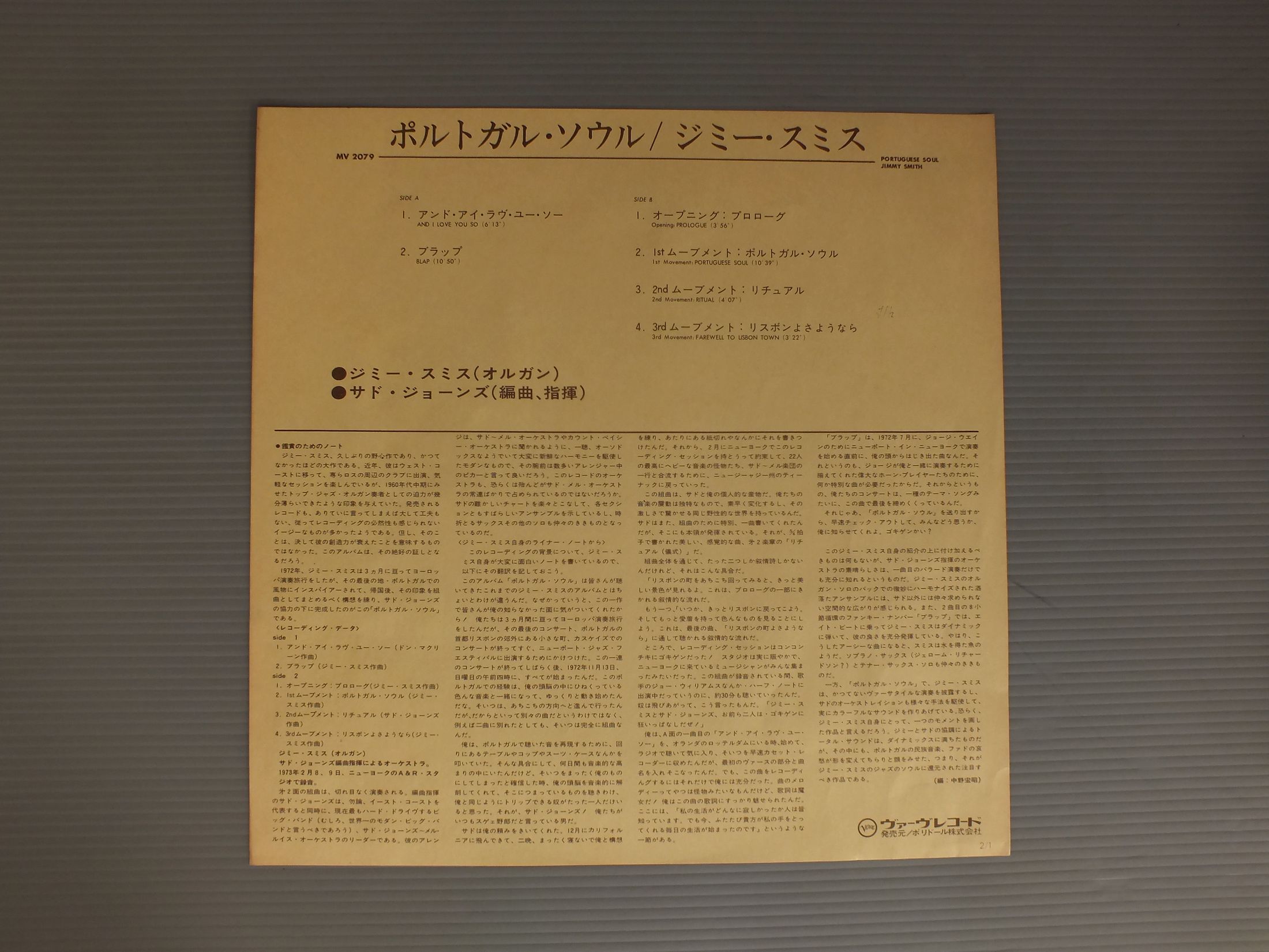 JIMMY SMITHジミー・スミス/PORTUGUESE SOULポルトガル・ソウル MV2079 製造国:日本盤 / Media:LP外観:EX-盤の状態:EX 価格(税込):¥1,210 送料 7inch:定形外郵便 360円~LP:定形外郵便 660円~送料は、注文の最終画面で確認頂けます。 > > JIMMY SMITH/PORTUGUESE SOUL 外観 (EX-)特記事項:背スレやヘリスレ、角スレ多少有り。見開きも含めてジャケ表面にシミやよごれ多少有り。外観EX-の共通説明:ダメージ軽度~多少。 中古品としては普通の状態。シミ、ヨゴレ、スレなど軽く~多少。 盤の状態 (EX)特記事項:多少薄いスリキズ・スレ軽くある感じ。殆どが軽微なものの様子です。盤EXの共通説明:盤面のスリキズが薄いものが少し~軽度 音に出そうなものは無いように見える(軽微なソフトティック音は除く)。 Tweet それぞれの画像をクリックすると、大きい写真が見られます こちらの商品もお勧めです 1,320円 THE JOHN BUNCH QUINTETジョン・バンチ / JONE`S OTHER BUNCHジョンズ・アザー・バンチ 1,210円 BUD FREEMAN`S SUMMA CUM LAUDE ORCH.バド・フリーマンズ・スマ・カム・ロード・オーケストラ / CHICAGO AUSTIN HIGH SCHOOL JAZZ IN HI-FIシカゴ・オースチン・ハイスクール・ジャズ 880円 HERBIE MANNハービー・マン / EVOLUTION OF MANNハービー・マン・ストーリー 770円 MATT DENNIS & RED NORVOマット・デニス & レッド・ノーヴォ / SOME OF MY FAVORITESサム・オブ・マイ・フェイバリッツ 1,210円 JACK SHELDON & HIS WEST COAST FRIENDSジャック・シェルドンとヒズ・ウェスト・コースト・フレンズ / ANGEL WINGSエンジェル・ウィングス 1,210円 MODERN JAZZ QUARTETMJQ / ART OF THE MODERN JAZZ QUARTETアート・オブ・MJQ 990円 MILT JACKSON/RAY BROWN JAMミルト・ジャクソン&レイ・ブラウン / MONTREUX`77ミルト・ジャクソン&レイ・ブラウン・ジャム・アット・モントゥルー`77 770円 COZY COLE - RED NORVO etcコジー・コール - レッド・ノーヴォ他 / ALL STAR SESSIONSオール・スター・セッション