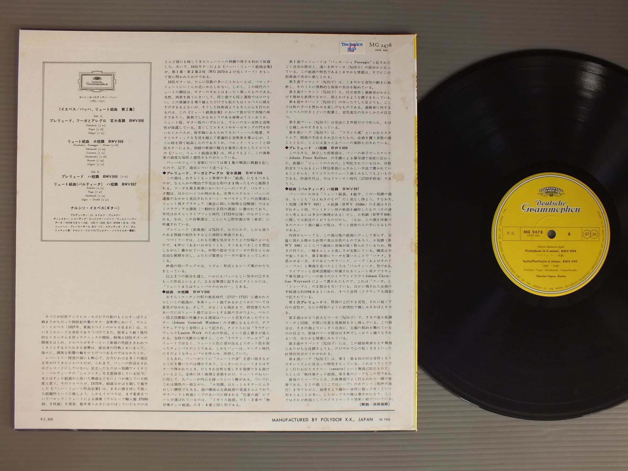 YEPESイエペス/BACH - WORKS FORE LUTE 2バッハ - リュート組曲第2集 MG2478 製造国:日本盤 / Media:LP外観:EX-盤の状態:EX 価格(税込):¥990 送料 7inch:定形外郵便 360円~LP:定形外郵便 660円~送料は、注文の最終画面で確認頂けます。 > > YEPES/BACH - WORKS FORE LUTE 2 外観 (EX-)特記事項:裏ジャケにシミ有り。外観EX-の共通説明:ダメージ軽度~多少。 中古品としては普通の状態。シミ、ヨゴレ、スレなど軽く~多少。 盤の状態 (EX)特記事項:薄いスリキズ・スレ軽くある感じ。軽微なものが中心です。盤EXの共通説明:盤面のスリキズが薄いものが少し~軽度 音に出そうなものは無いように見える(軽微なソフトティック音は除く)。 Tweet それぞれの画像をクリックすると、大きい写真が見られます こちらの商品もお勧めです 1,430円 YEPES イエペス / SPANISH GUITAR MUSIC入江のざわめき/スペイン近代ギター傑作集 990円 HANS HEINTZEハンス・ハインツェ / BACH - 5 KNOZERT FUR ORGEL NACHVERSCHIEDENEN MEISTERNバッハ - 五つのオルガン協奏曲 990円 HIROKO NAKAMURA中村紘子 / PLAYS MOZARTモーツァルト・アルバム 1,320円 INGRID HAEBLERイングリット・ヘブラー / SCHUBERT - IMPROMPTUシューベルト - 即興曲全集 990円 INGRID HAEBLERイングリット・ヘブラー / MOZART-4 PIANO SONATASモーツァルト-ピアノ・ソナタ・第11番 1,650円 RECHITER竹宮恵子 / EDOARD SOLTIE変奏曲 2,090円 ANTONIO IGLESIASアントニオ・イグレシアス / MUSICA ESPANOLA PARA PIANO OSCAR ESPLA JOAQUIN RODRIGOロドリーゴ・エスプラ ピアノ曲集 990円 RICHTERカール・リヒター / BACH-WERKE FUR CEMBALO BWV971-903-915-590 UND 906バッハ-チェンバロ・リサイタル